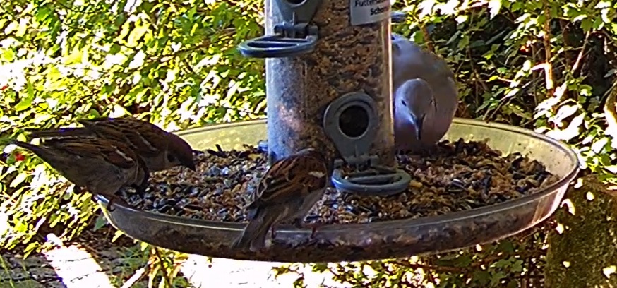 Das Spatzen-Quintett ist echt super, wie sie alle gleichzeitig die Köpfchen in die Öffnungen stecken ![]()