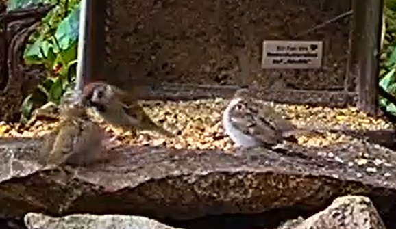 Bei den Spatzen geht es derzeit noch um die Kinderversorgung, die kleinen runden Bällchen halten die Eltern auf Trab.