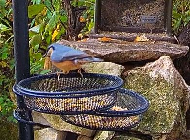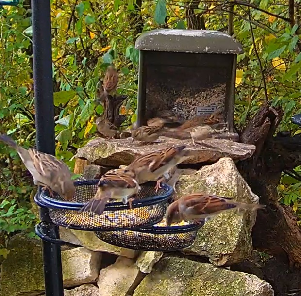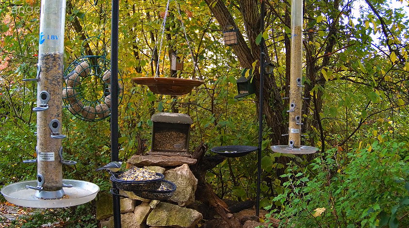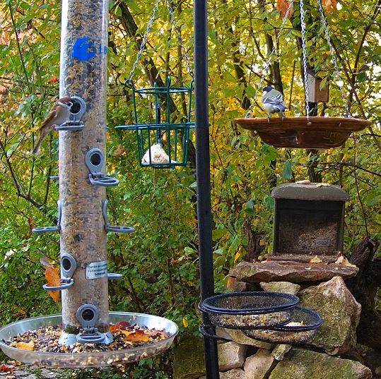 Viele unterschiedliche Besucher, seit es Herbst geworden ist. Der Star hat sich an der Vogeltränke aufgehalten, die Spatzen natürlich im Verband anwesend und beide Kleiber, wobei einer vorwiegend bei „Petra“ zu finden ist.