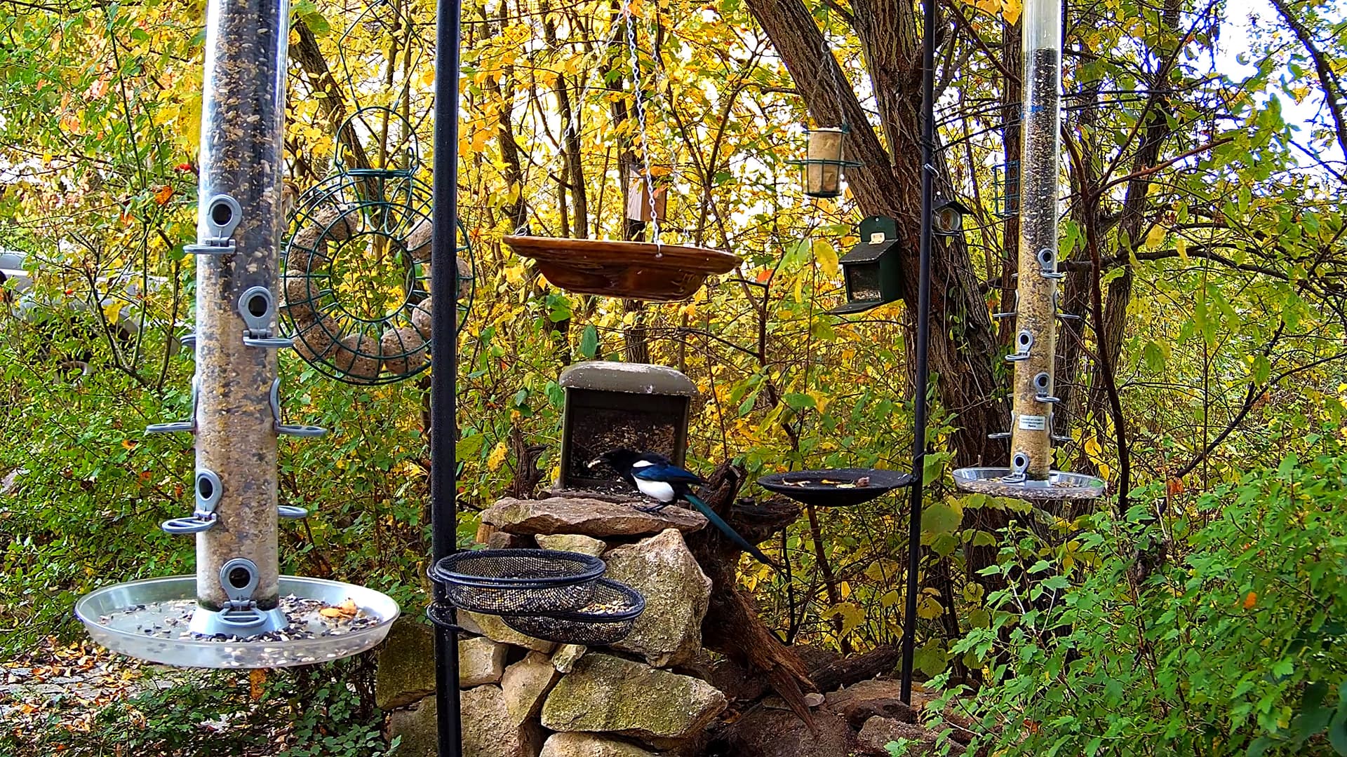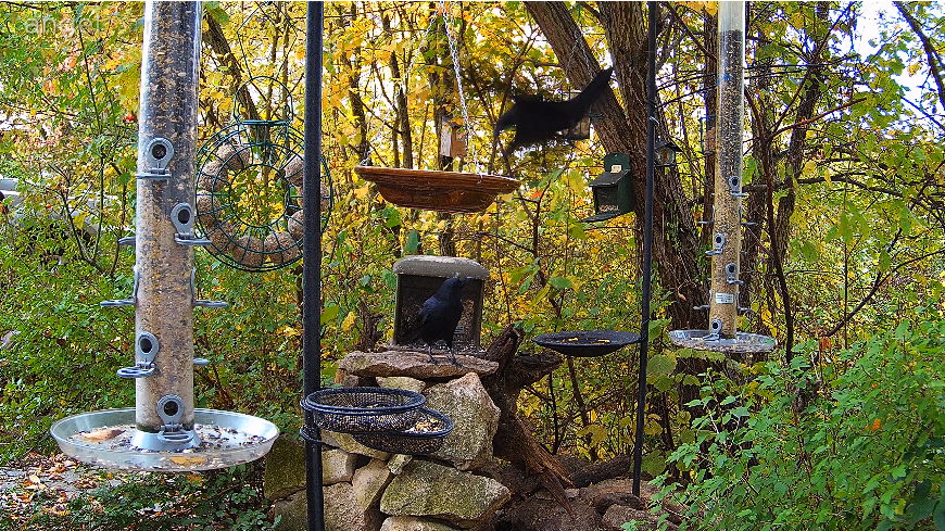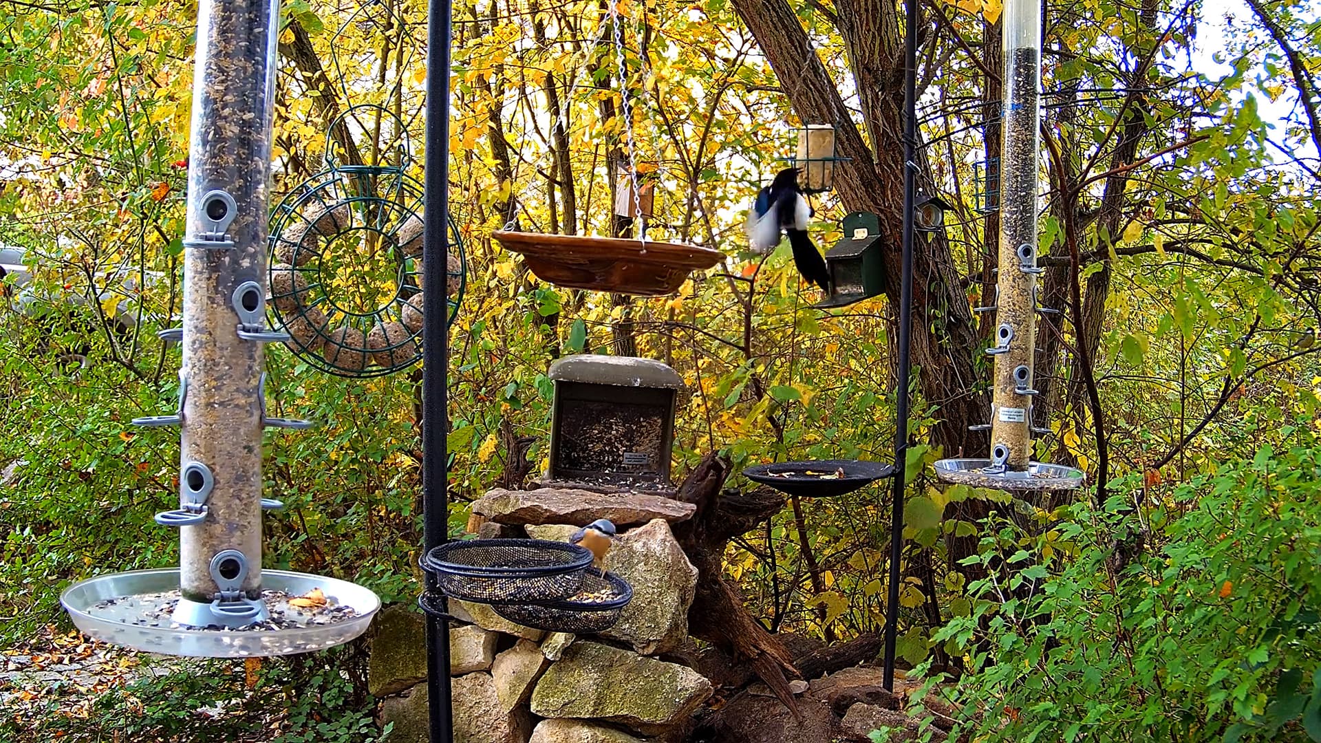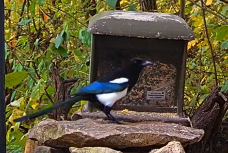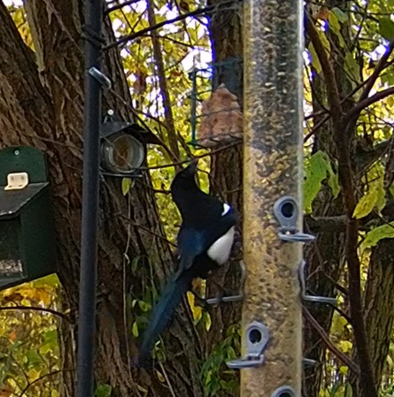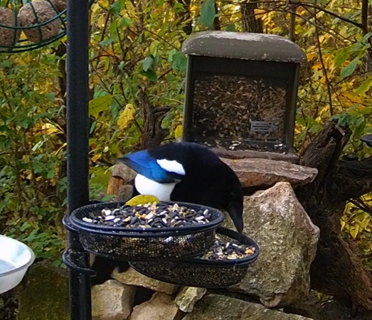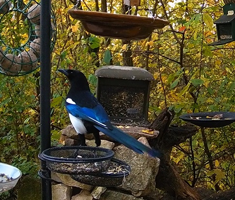 Hilpoltsteiner Futterplatz sehr beliebt heute morgen. Die Elstern lieben das Fettfutter, Buchfinkdame und Robin sind aktiv, ebenso ein wohlgenährtes Eichhörnchen.