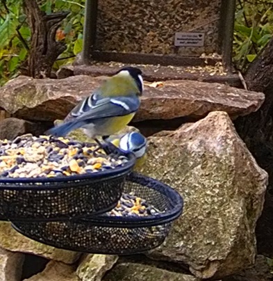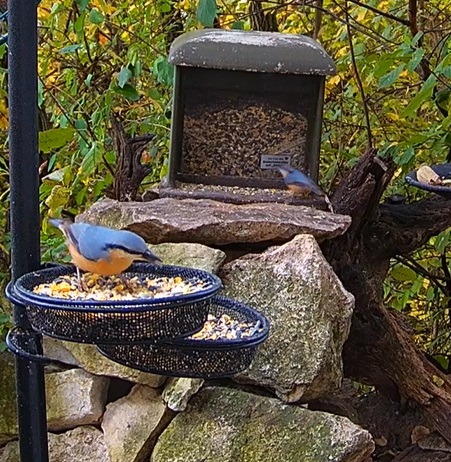 Mittagszeit, Besuch vom Kleiber. Blaue und Kohli gehen schnell wieder getrennte Wege.