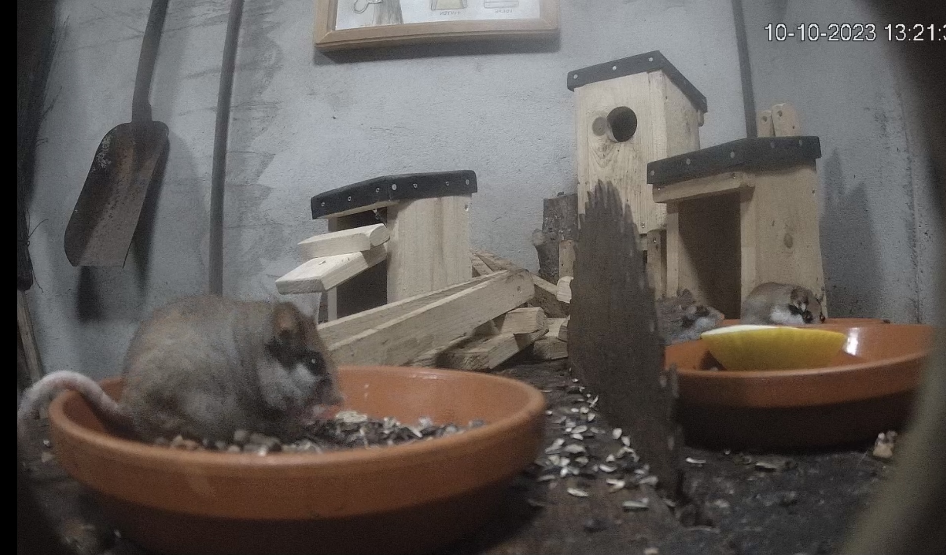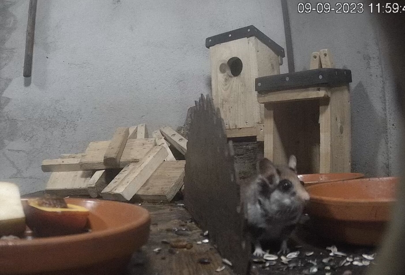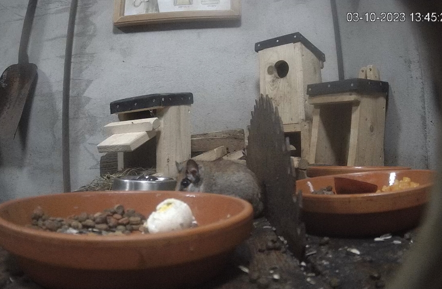 Vorhin war ein ganz vorsichtiger Kobold am Fressen und war danach wieder hinter dem Holz verschwunden.