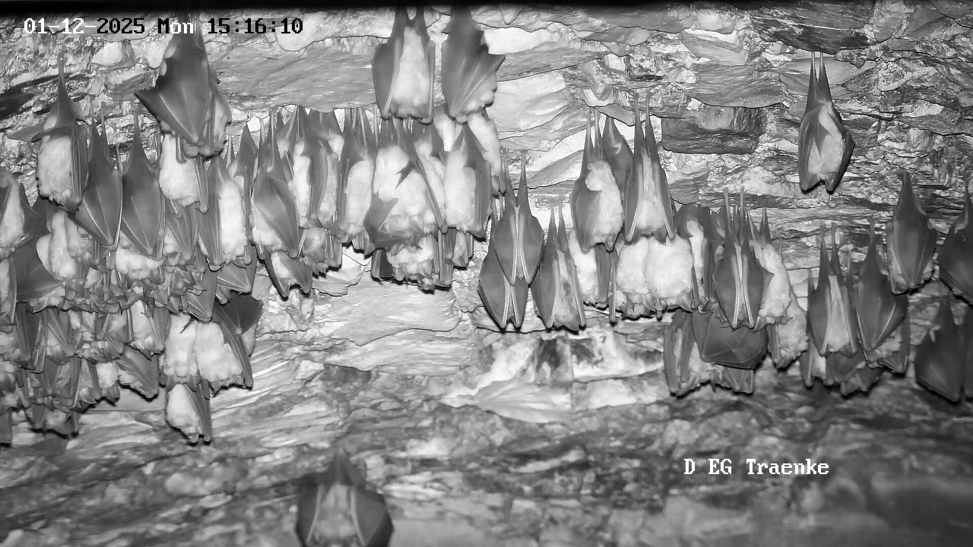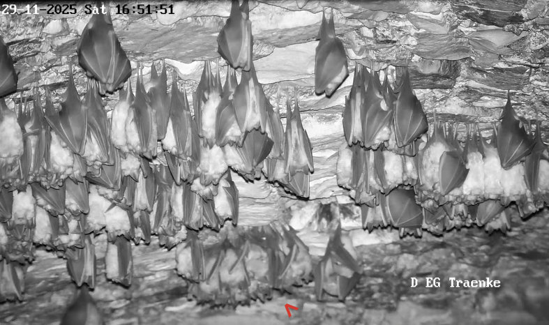 Hallo @Fledermaus-Rudi und alle Mitleser, ja, heute ist wieder ordentlich was los! Ich sehe das ähnlich wie am 28.11. Jedenfalls wird auch wieder viel geflogen, wenn auch hauptsächlich nur im Keller. Kaum eine Bewegung in die Erdhalle und nur vereinzelt und sehr kurz in die Wärmeglocke (ist die Heizung dort noch an?)…. und wenn man so drauf schaut, dann gibt es sehr wuselige Phasen. Ob es daran liegt, dass es heute wärmer und vorallem sonnig war?