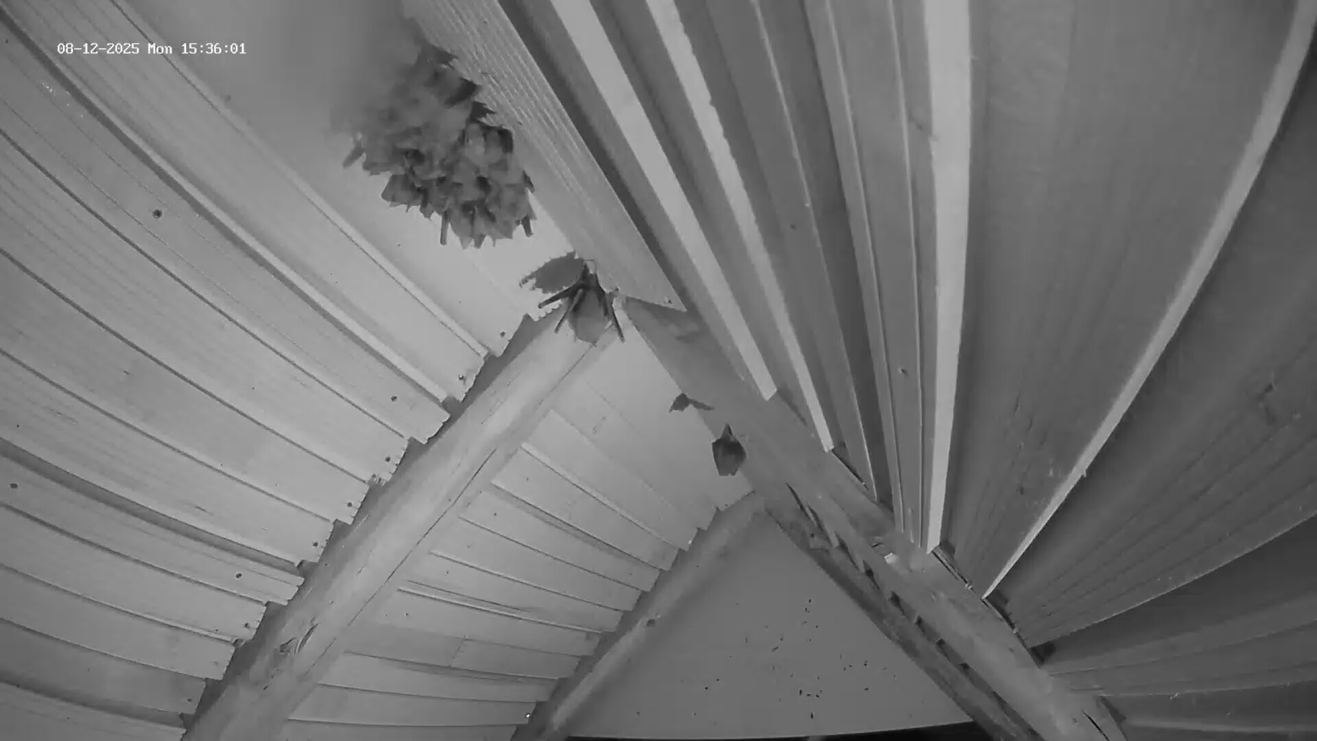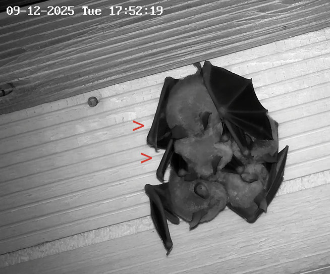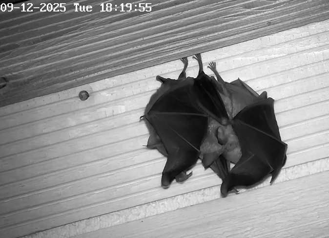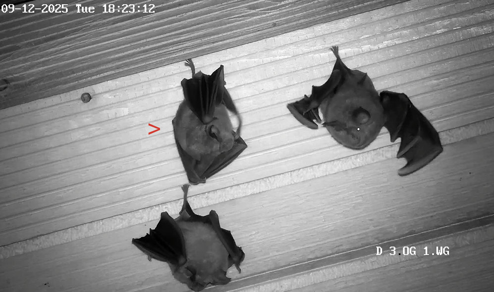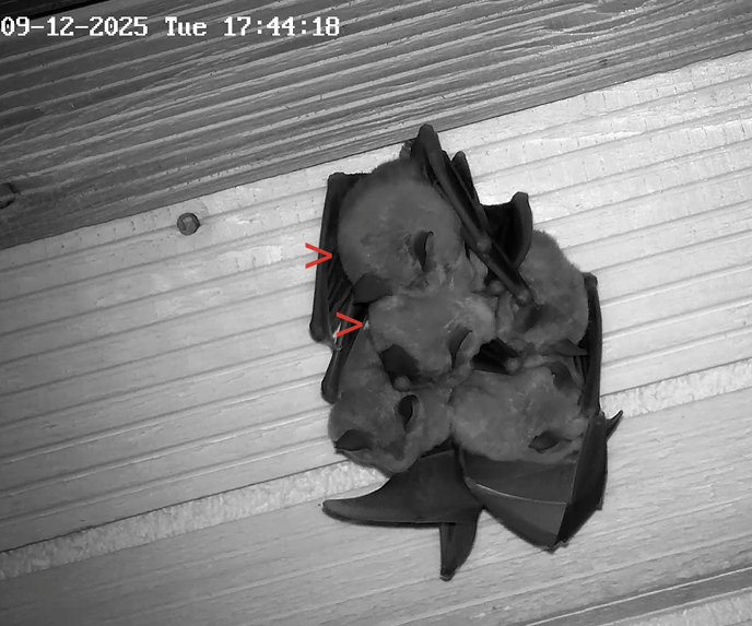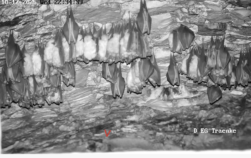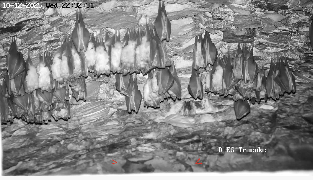 Die Heizplatte ist übrigens seit 19.11.2025 aus, hat mir Alex mitgeteilt. Und die hohe Aktivität am 1. Dezember war nicht durch eine Störung bedingt. Es war niemand im Stadel und es war Zufall, dass Alex im Fledermaushaus war und die Kamera gezoomt hatte. Wie wir nun wissen, zeigen die Hufis bei höheren Temperaturen regelmäßig so eine hohe Aktivität. Ich hoffe, dass ihnen dann auch die Fettreserven für den Winter reichen. Servus derweil, Rudi