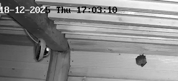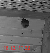 Damit ergibt sich auch die Antwort für die Beobachtung von Funkelkrähe. Der Kellereinflug wurde mit einer Holzweichfaserplatte verschlossen, um die Geräusche und das Licht bei der Überprüfung der Bandmeldeanlage von den Hufis abzuhalten. Leider hatte sich dadurch aber auch die Schärfe der Kamera verstellt. Erst wenn man mit der Kamera wieder fokussiert, stellt sich wieder richtig scharf.