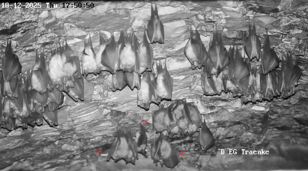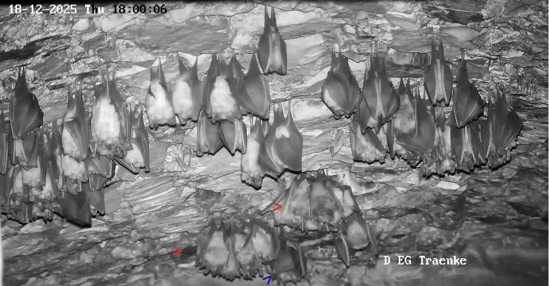 Hallo Tabea, nachdem ich Deine Nachricht gelesen habe, habe ich gleich mal wieder scharf gestellt und bei Alex nachgefragt. Heute war um 9 Uhr eine Überprüfung der Brandmeldeanlage. Dazu hatte Alex den Einflug in den Keller für etwa eine halbe Stunde verschlossen, damit die Hufis nicht gestört werden. Wenn diese Öffnung verschlossen wird, kann die Temperatur im Keller etwas ansteigen. Dies könnte induziert haben, dass nun einige Hufis aufgewacht sind.