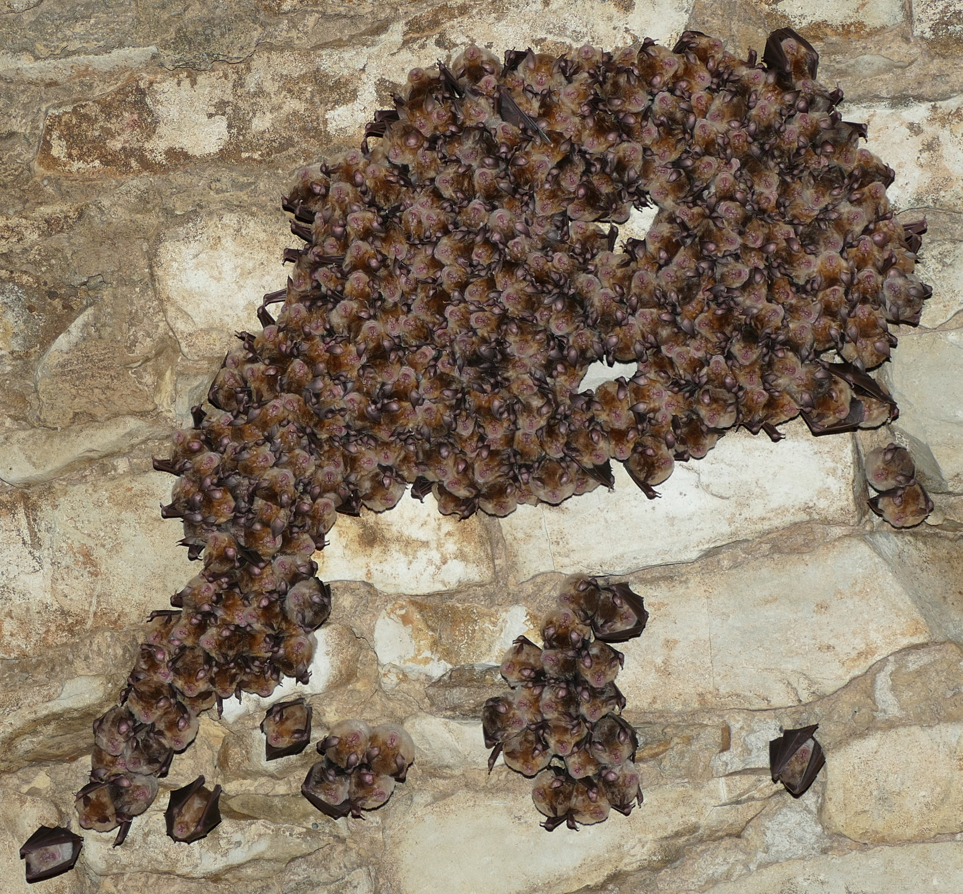 An dem wärmsten Platz im Keller clustern die warmen Hufis und sie hüllen sich dabei auffallend mit den Flügeln ein, wie mit einer Decke. Diese Hufis bleiben in Normaltemperatur und wärmen sich eine Zeit lang gegenseitig, bis sich der Kugelcluster wieder auflöst und die Hufis sich wieder in kalte Cluster zurück begeben, wo sie neben, bzw. an den kalten Nachbarn wieder schneller abkühlen. So meine Gedankenspiele, die nicht stimmen müssen.