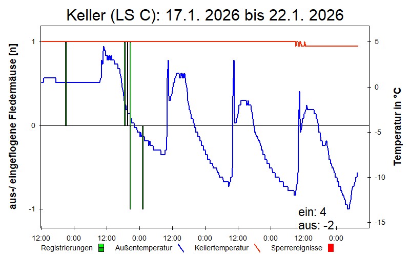 Dass die letzten 5 Tage ziemlich Ruhe war im Keller zeigt aus der Statusbericht der Lichtschranke (siehe Anhang). Aber die zeichnet nicht alle Durchflüge auf, weil einige Dioden der Lichtschranke nicht mehr richtig funktionieren. Da müssen wir die Lichtschranke mal austauschen.