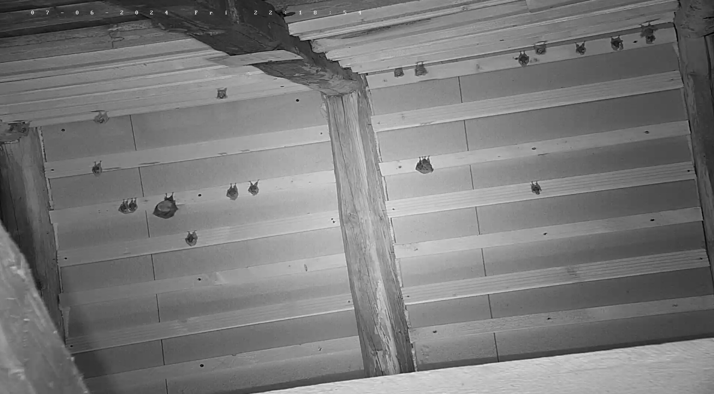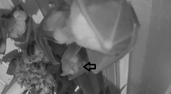 Richtig gezählt, Aurelie! Alle 21 Jungen hingen in der mittleren Wärmeglocke und konnten also auch über die untere Webcam gesehen werden. Leider hat Alex heute Vormittag ein totes Junges mit der Kamera am Boden liegen sehen. Warum es gestorben ist, wissen wir nicht. Christl, die heute Abend die Führung gemacht hat, hat es geholt und nun erstmal eingefroren. Es gab bis heute also 22 Geburten und heute waren es somit 9 Geburten. Das ist immer noch etwas zögerlich im Vergleich mit den letzten Jahren. 2020 waren es am 5. Tag nach Geburtenbeginn schon 60 Junge da. Aber die kommen schon noch. Wenn der Zuwachs wie bisher bei 16 % liegen würde, sollten es dieses Jahr sogar 222 Geburten werden. Bei zu wenig Nahrung gehen aber viele Weibchen nicht in Trächtigkeit. Dann können es sogar weniger sein als im Vorjahr. Dies hatten wir erst einmal, im Sommer 2015. Da gab es 2014 einen starken Anstieg der Geburten. Worauf im Folgejahr dann einige Weibchen mit einer Trächtigkeit aussetzten. Theoretisch könnte das auch dieses Jahr der Fall sein. In spätestens 3-4 Wochen wissen wir es. Aber jetzt ist erstmal morgen dran. Servus derweil, Rudi