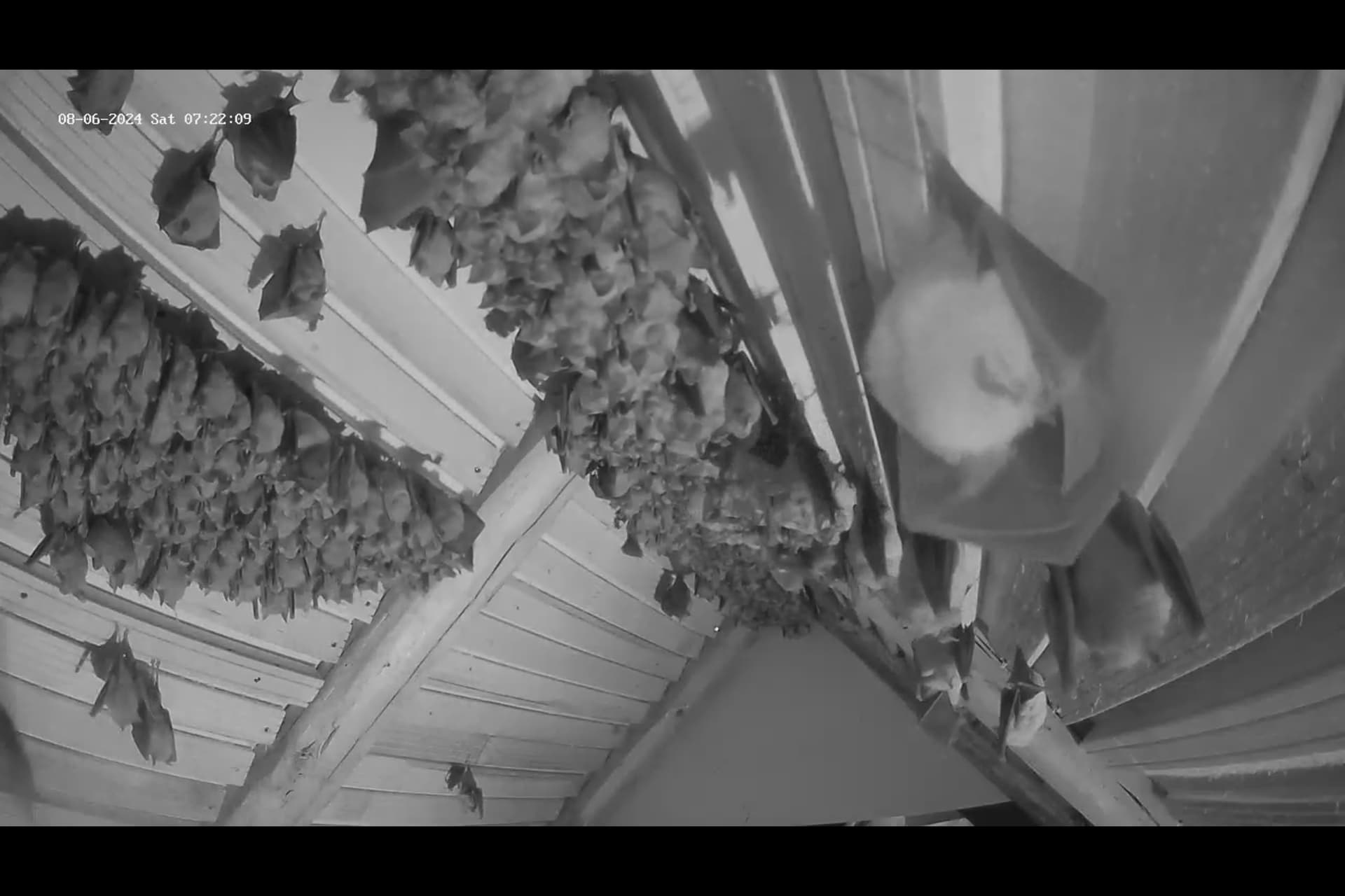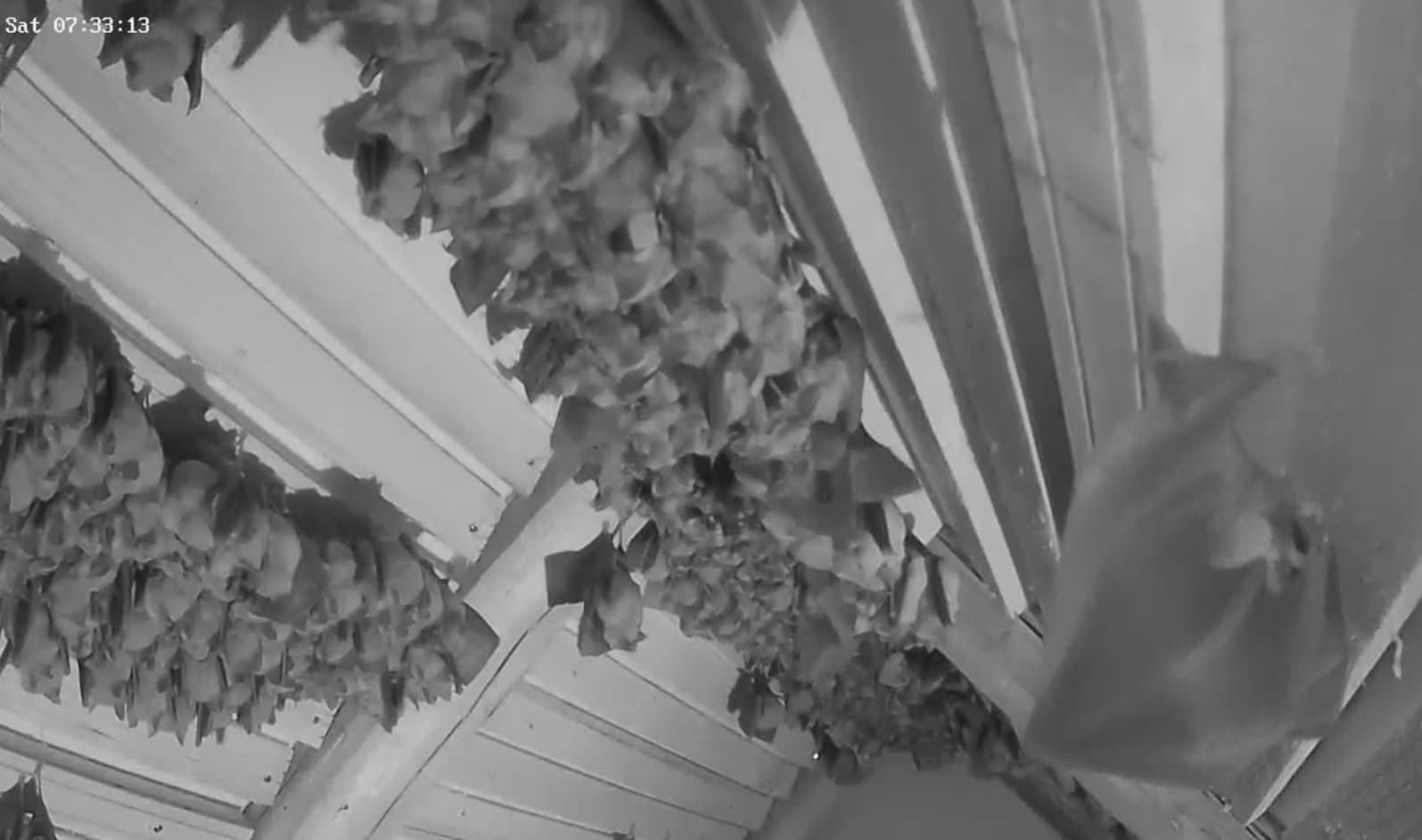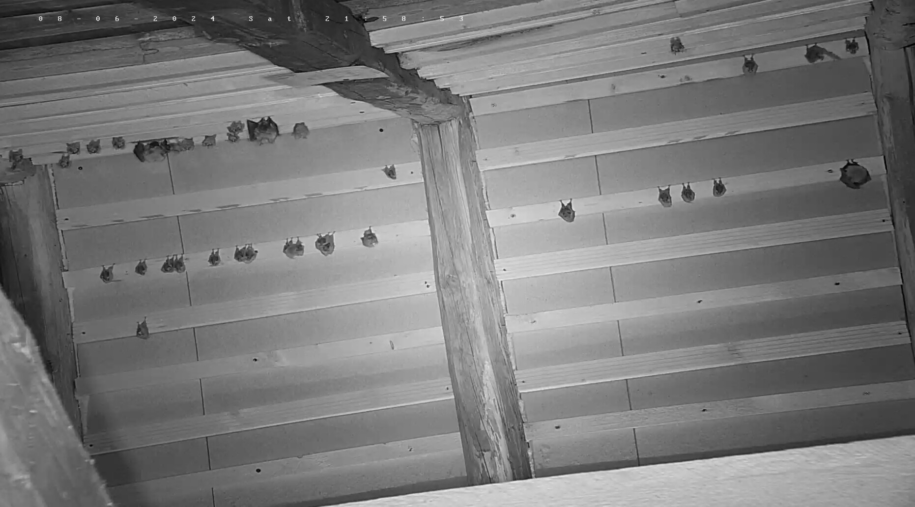 Ja, mit den Webcams ist die Zählung nicht immer möglich. Im Fledermaushaus sind aber noch weitere Kameras mit anderer Position und Perspektiven. Darum konnte Alex die Jungen auch gut zählen. 55 hingen in der mittleren Wärmeglocke drin, und keines wo anders. Es gab heute also 19 Geburten. Bisherige Höchstzahl heuer. Aber es könnten schon noch Tage gekommen, mit noch mehr Geburten. Servus und Gute Nacht derweil, Rudi