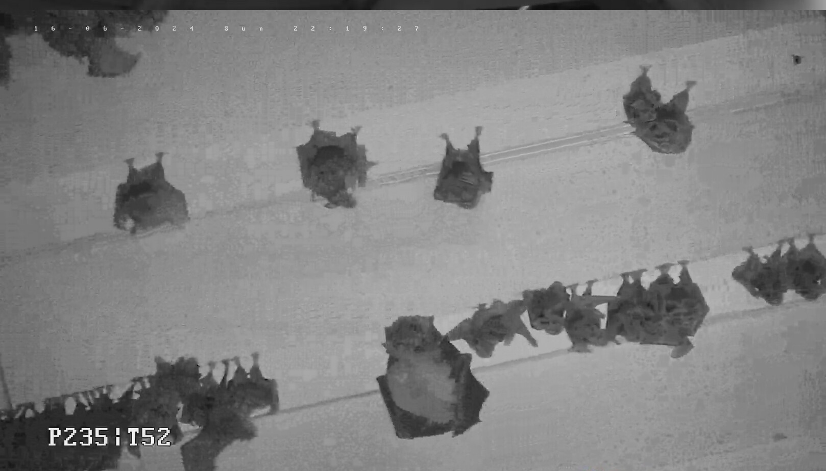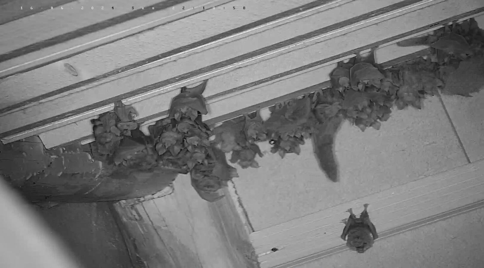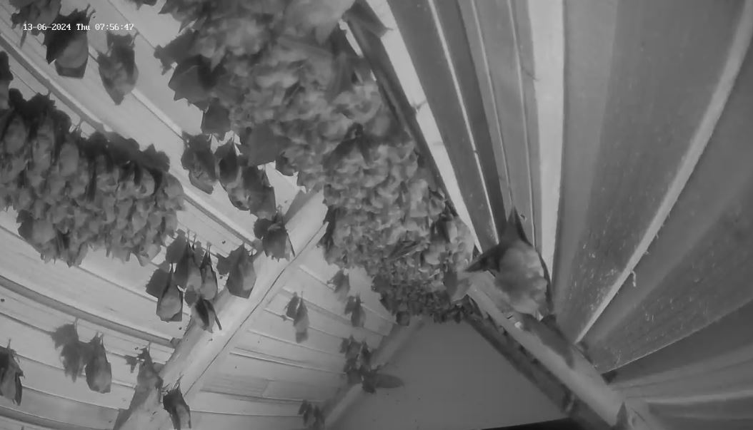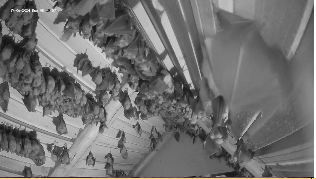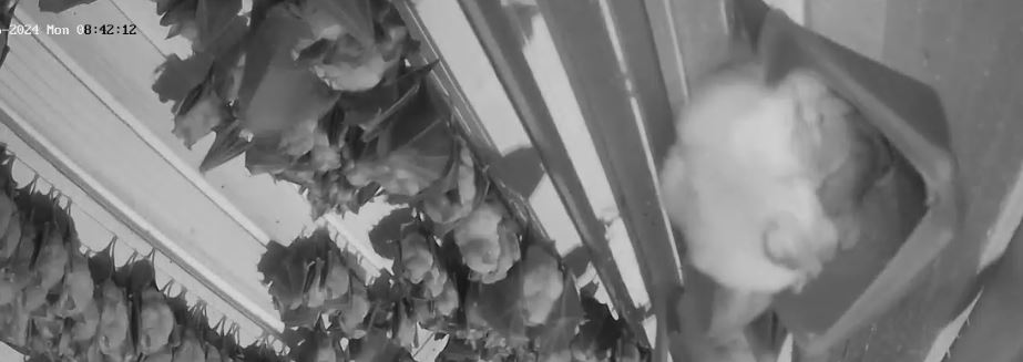 Und wieder gab es gerade eine Geburt direkt vor der Kamera zu sehen. Und erfreulicherweise gab es gestern auch wieder mehr Geburten. Es sollten mindestens 15 gewesen sein, nachdem Alex gestern Abend 154 Junge zählen konnte. Gestern Abend hatten zwei Mütter große Schwierigkeiten, ihre Jungen abzuhängen. Erst gegen 23 Uhr, als schon wieder einige vom Jagdflug zurück kamen, schafften sie es. Wer jetzt grad reinschaut: es sind gerade noch zwei weitere Gebärende zu sehen und auch Trächtige mit sehr dickem Bauch sind noch zu sehen. Es werden also auch morgen wieder neugeborene Hufis dazu kommen. Servus derweil, Rudi