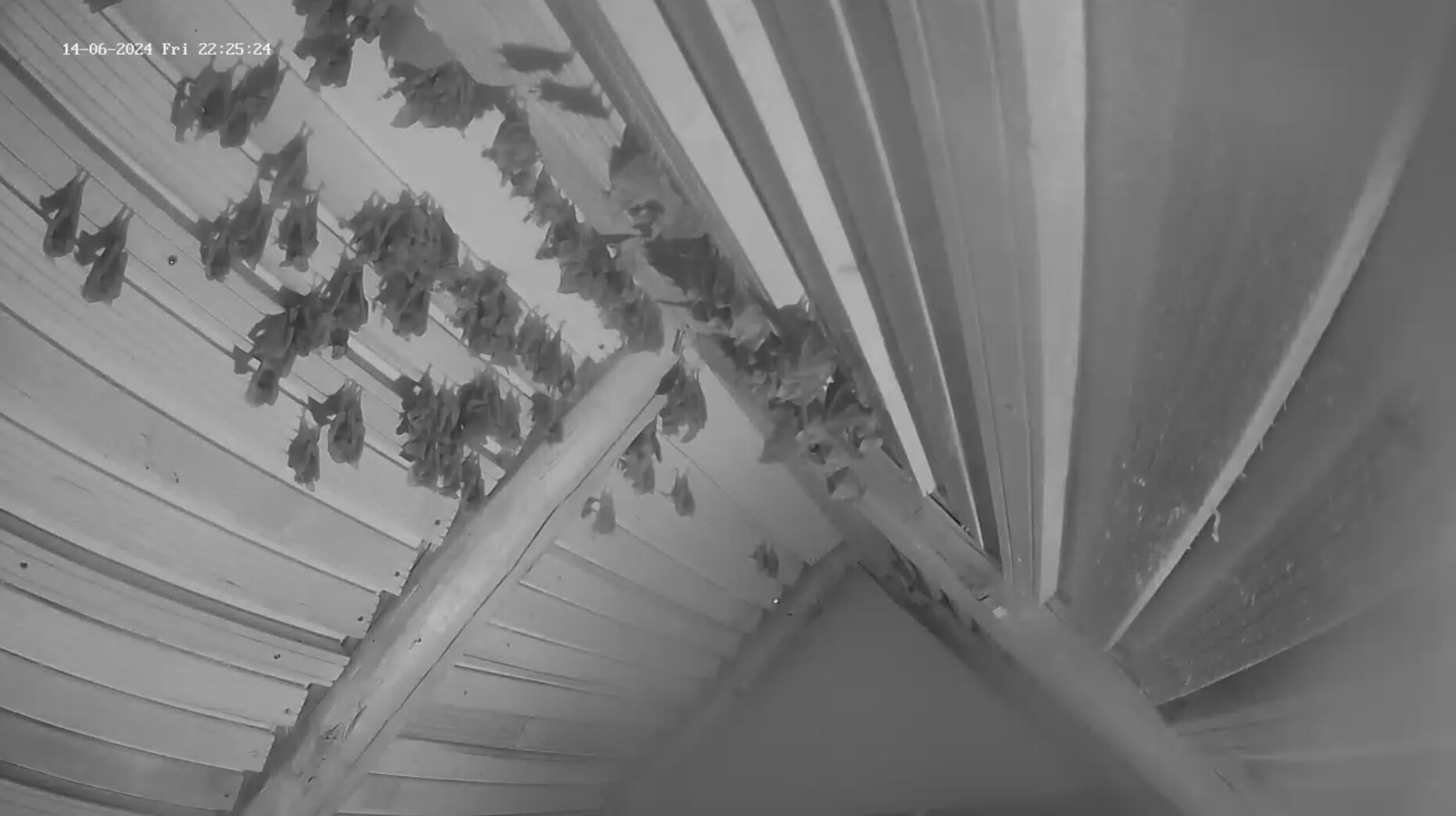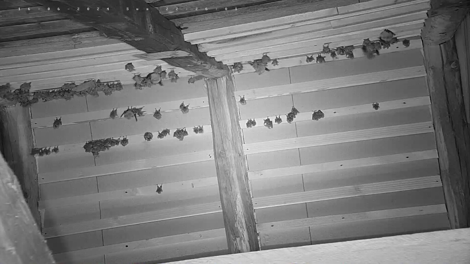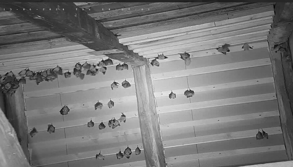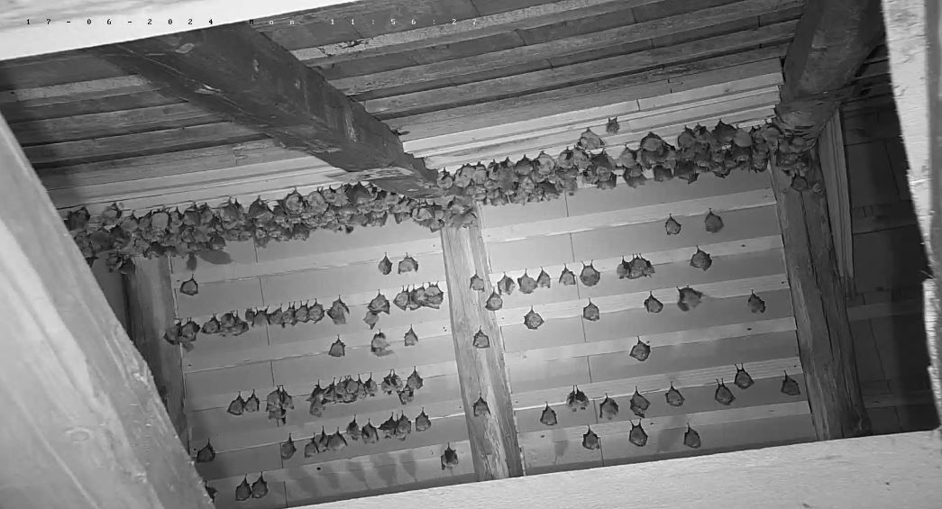 Gestern konnte Alex 139 Junge zählen. Es gab gestern also nur 6 Geburten. Ich hoffe, das ist nur eine zwischenzeitliche „Schwäche“ und es gibt nochmal geburtenstärkere Tage. Nachdem es letztes Jahr 191 Geburten hab und dieses Jahr sicher mehr Erwachsene in der Wochenstube sind, sollten es also eher mehr als 191 werden. Beim Zuwachs der letzten Jahre sollten es sogar 222 werden. Mal sehen, wie sich das noch entwickelt. - Gerade hängt eine werdende Mutter mit Wehen optimal vorne rechts vor der oberen Webcam. Wenn sie da hängen bleibt, sollte man die Geburt gut beobachten können. Und gleich links oberhalb daneben ist noch eine weitere in den Wehen. Und direkt drüber sah ich eine Trächtige. Und auf der anderen Seite sehe ich gerade eine Mutter, die ihr frisch Geborenes ableckt und wo die Plazenta noch dran ist. Es tut sich geburtenmäßig also schon noch was. Schönen Sonntag Euch Allen! Servus, Rudi