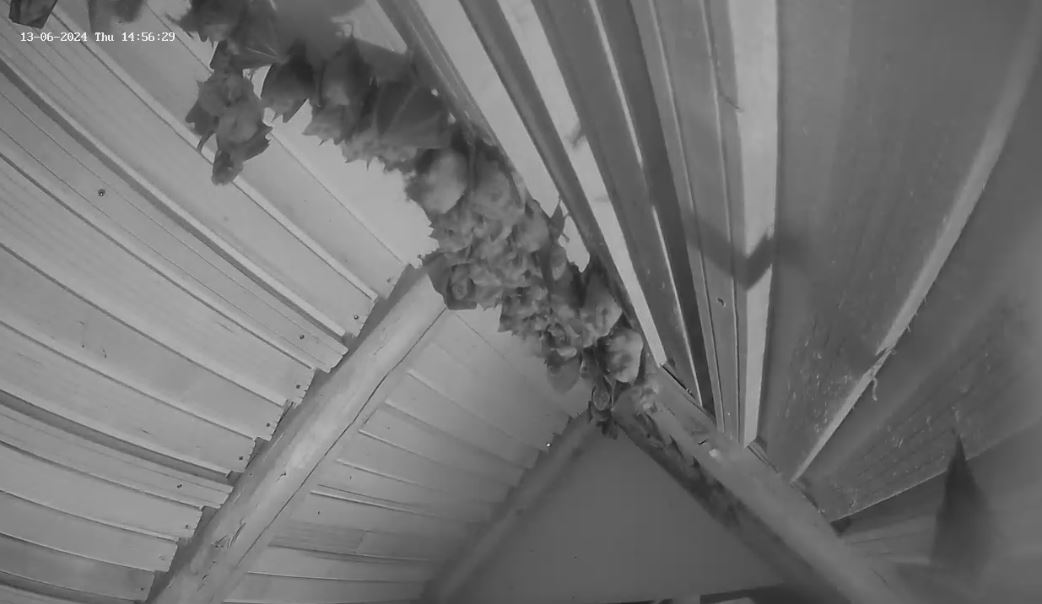 An Maria: es wäre äußerst unwahrscheinlich, dass eine Hufi-Mama ihr Junges im Keller zur Welt bringt. Hier ist es einfach zu kalt. Auch wenn es in nächster Zeit mal zu hohen Temperaturen kommt, ist es in den Morgenstunden, in denen die Geburten ablaufen (meist zwischen 6 und 8 Uhr) immer noch so kühl, dass es im Dachboden am angenehmsten ist. Und wenn es tatsächlich mal morgens um 8 Uhr schon über 35 Grad im Spitzboden hätte, dann könnte sich die Hufi-Mama eine Etage in den unteren Dachboden oder noch eine Etage tiefer in den ersten Stock der Scheune hängen. Zum Glück mangelt es unseren Hufis nicht an entsprechend temperierten Plätzen. Andere Fledermäuse, die ihr Quartier z.B. hinter dunklen Blechverschalungen haben, sind da stärkeren Temperaturschwankungen ausgesetzt, die sie aushalten müssen, weil sie nicht einfach den Hangplatz wechseln können.