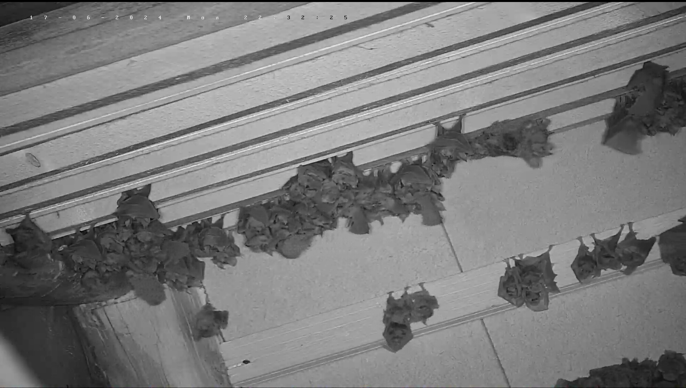 Guten Morgen Miteinander! Ein Dank auch noch an Alexander, dass er die Kameras auch gleich wieder sauber gemacht hat! Heute morgen kann man wieder ein paar Hufi-Mamas sehen, die ihre Neugeborenen ablecken und jetzt hat sich gerade ganz rechts außen eine hingehängt, die noch ein Junges zur Welt bringen möchte. Was man jetzt häufig beobachten kann, ist, wie die älteren Jungen schon kräftig mit ihren Flügeln schlagen. Sie trainieren damit ihre Flugmuskulatur und bekommen eine Gefühl dafür, wenn sie dann jetzt bald ihre ersten Flüge im Dachboden absolvieren. Meist machen sie ihre ersten Flüge so mit 16 Tagen. Die drei ältesten Jungen sind heute 12 Tage alt. In 4 Tagen könnten also die ersten schon Flugversuche machen. Servus derweil, Rudi