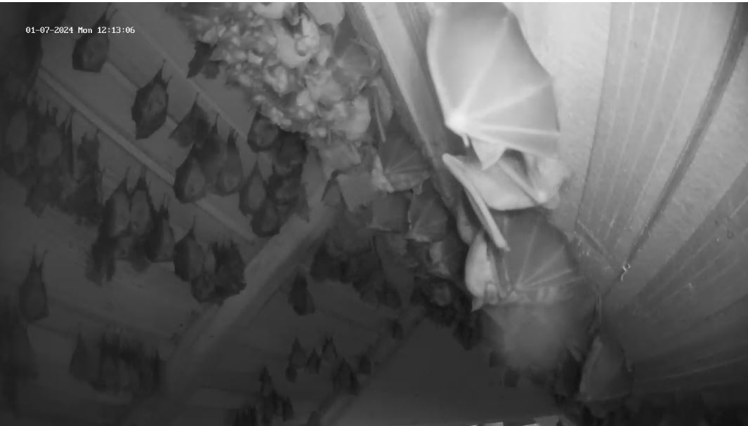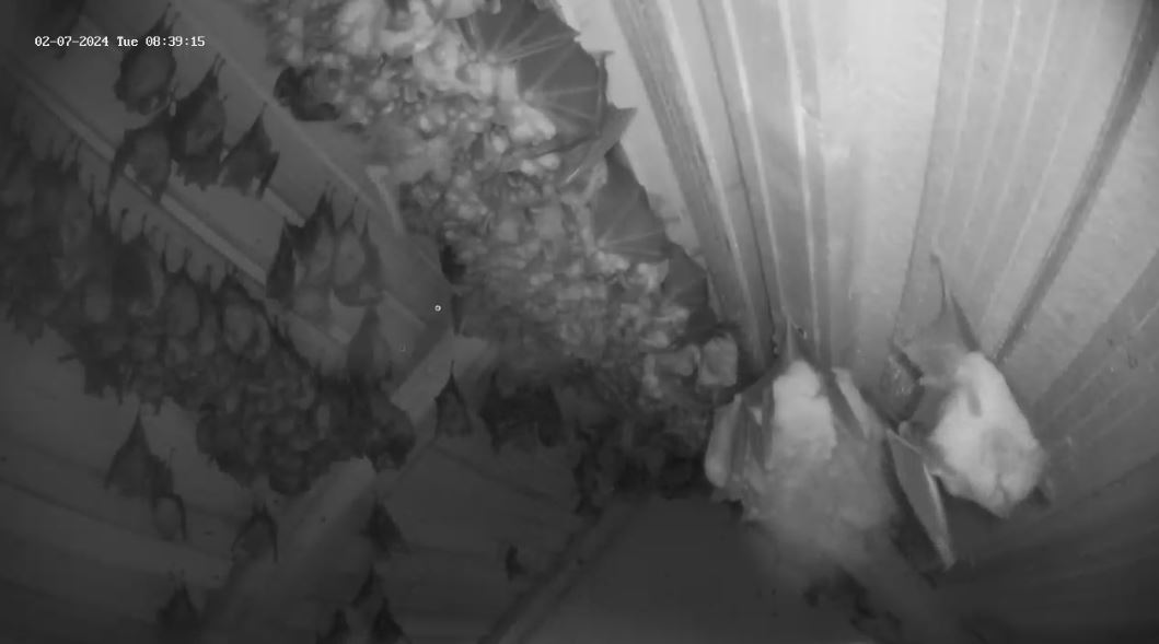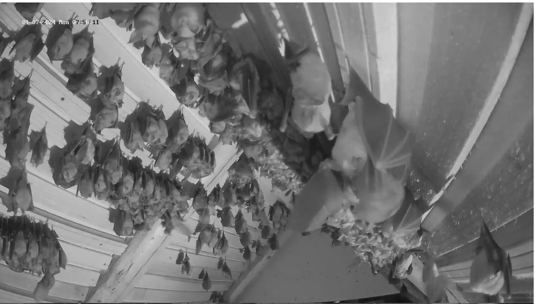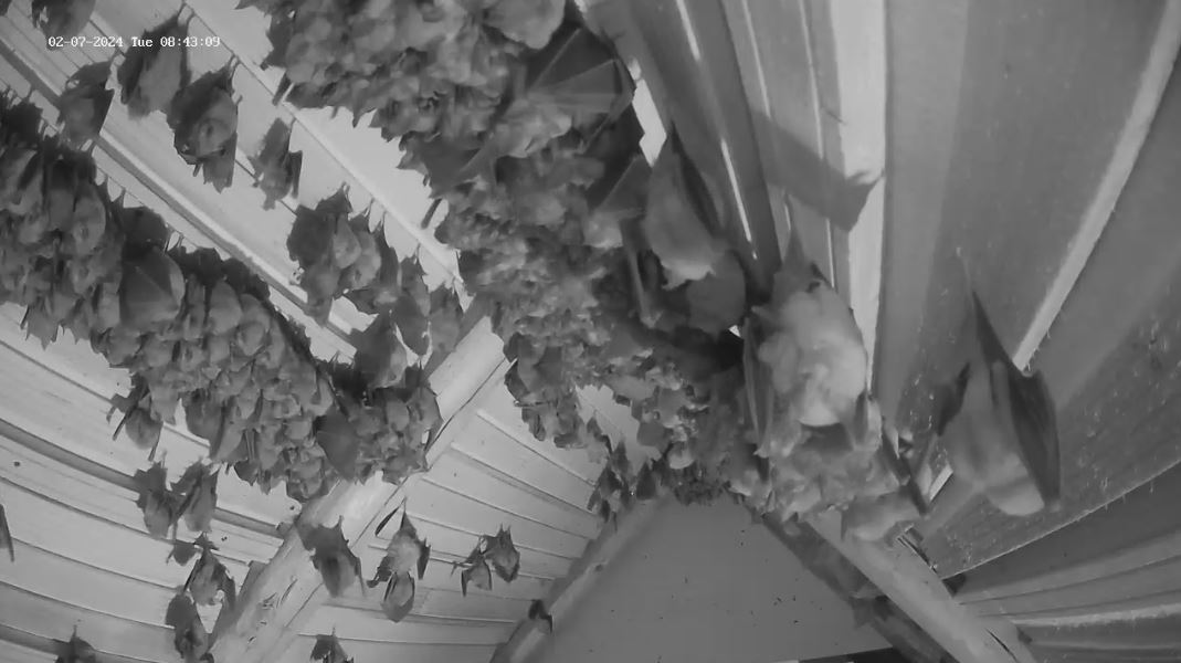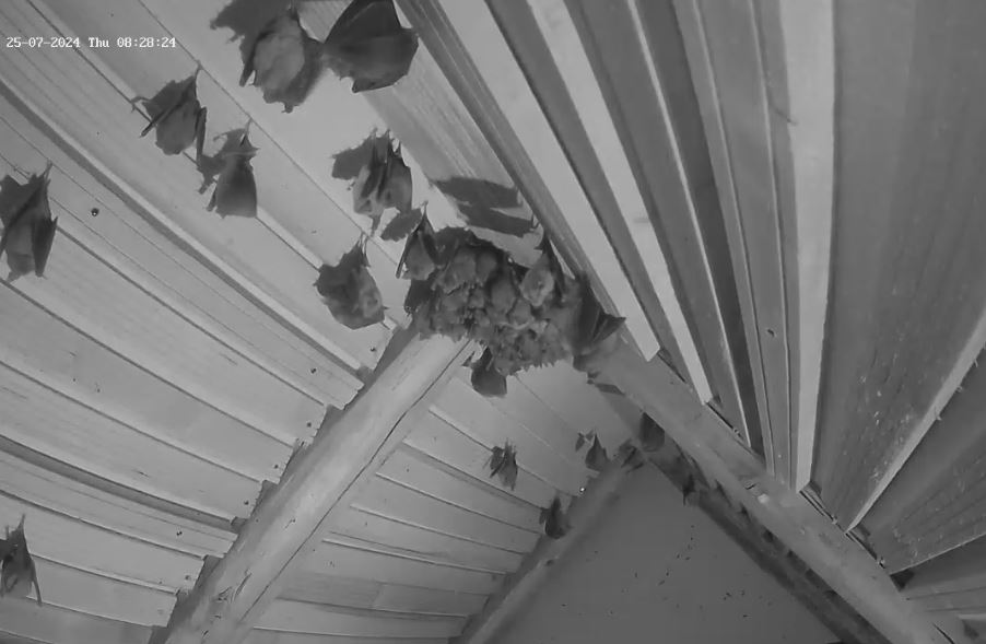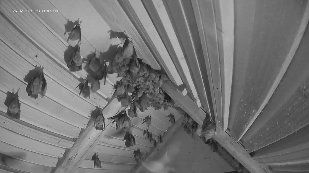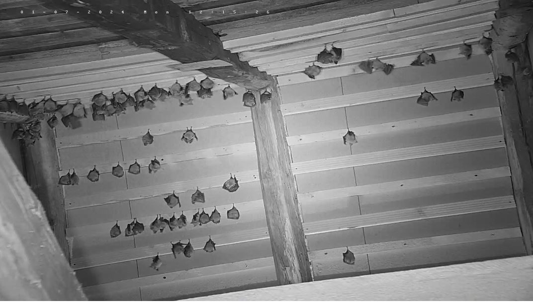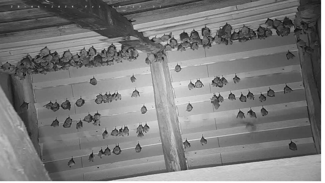 Hallo Peggy, es ist sogar genau anders herum. Die Jungtiere brauchen tendenziell noch eher die höheren Temperaturen oben im Dach, da sie noch stark wachsen müssen, weil sie wenn es in den Winterschlaf geht die Größe und das Gewicht ihrer Mutter erreicht haben müssen. Das fällt ihnen leichter, wenn sie nicht auch noch Energie aufwenden müssen um die Körpertemperatur oben zu halten. Die Mütter sind jetzt an den warmen Tagen weitestgehend eine Etage tiefer. Weil du es jetzt angesprochen hast: ich werde heute die untere Webcam mal auf den unteren Raum einstellen, damit wir mal wieder einen Blick auf die Große Menge an Fledermäusen haben.