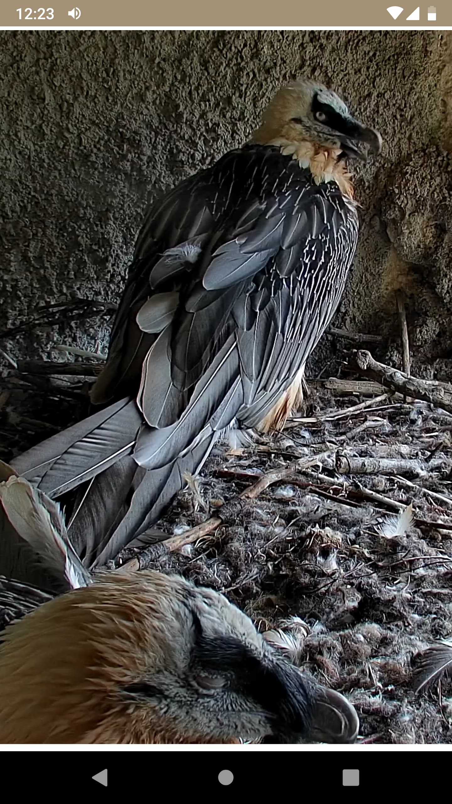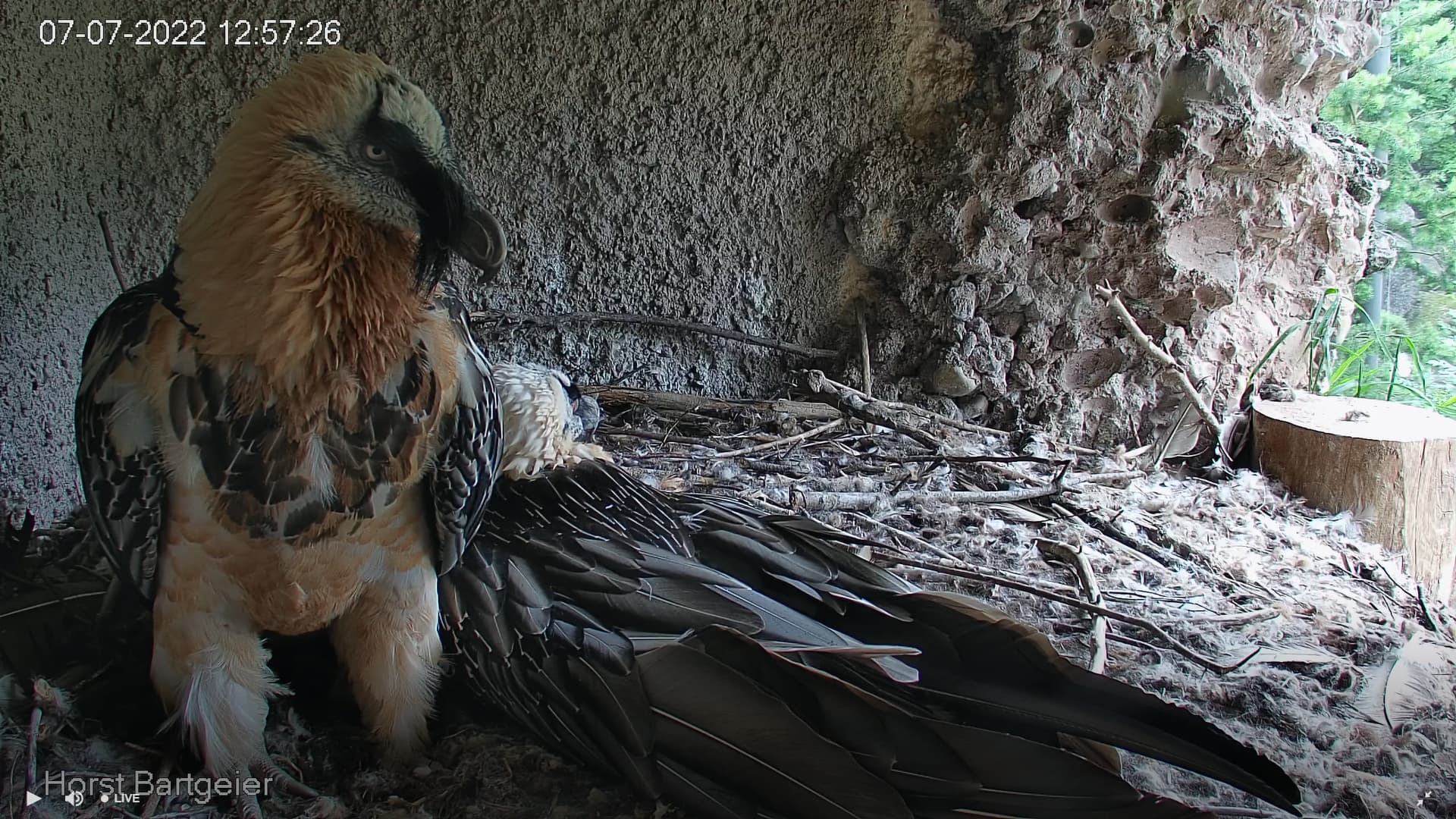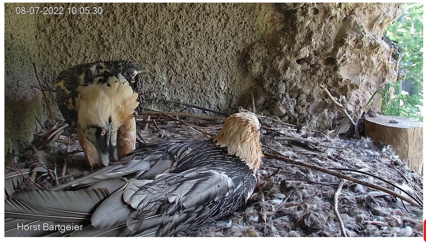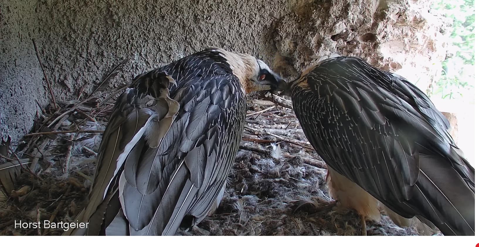 - als ich mich zugeschaltet habe, standen beide im Horst. Mascha hatte wohl Lust auf Wellness, legte sich hin und Hansemann fing sofort mit der Gefiederpflege an. Dauerte allerdings nicht lange, er ist wohl wieder an ihre empfindlichen Rückenfederchen gekommen.