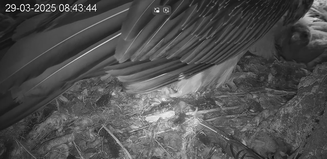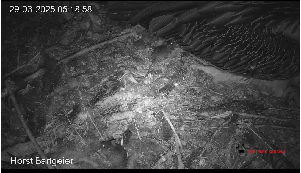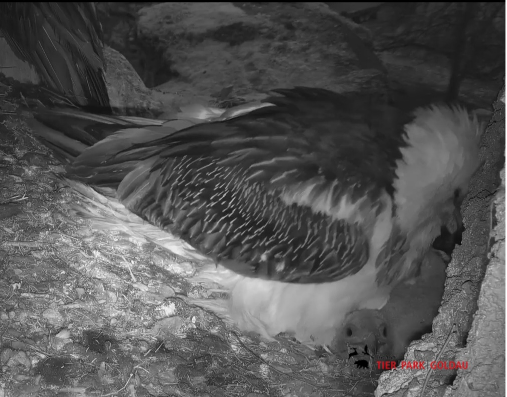 Na sowas, jetzt liegt das Kleine wieder an der unteren Stelle, wie vorher schon und wird gerade von Hans gefüttert. Anscheinend gefällt es ihm da besser als weiter oben.