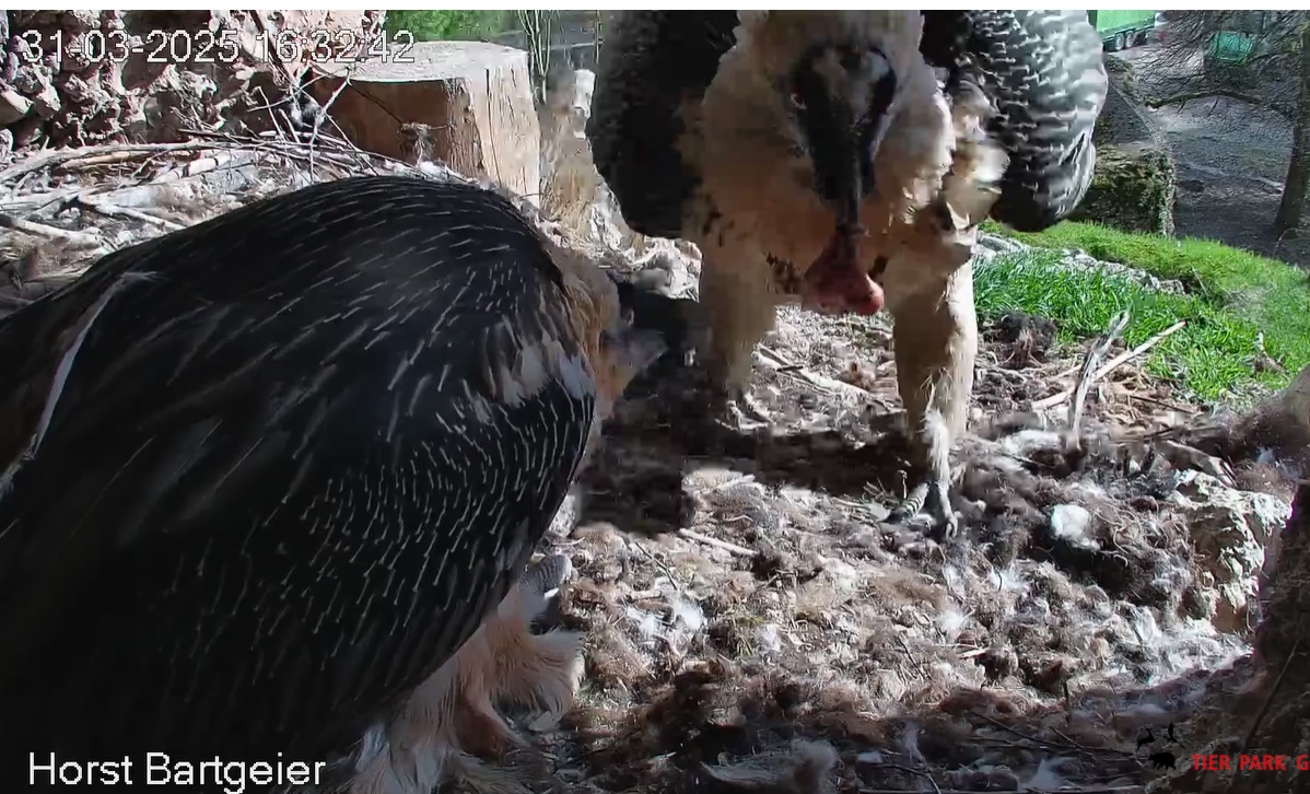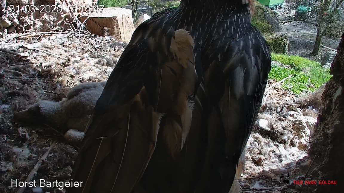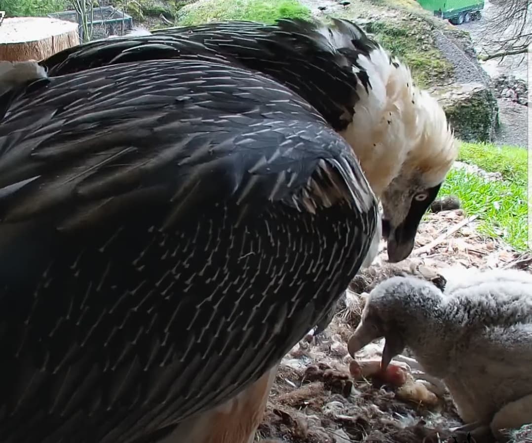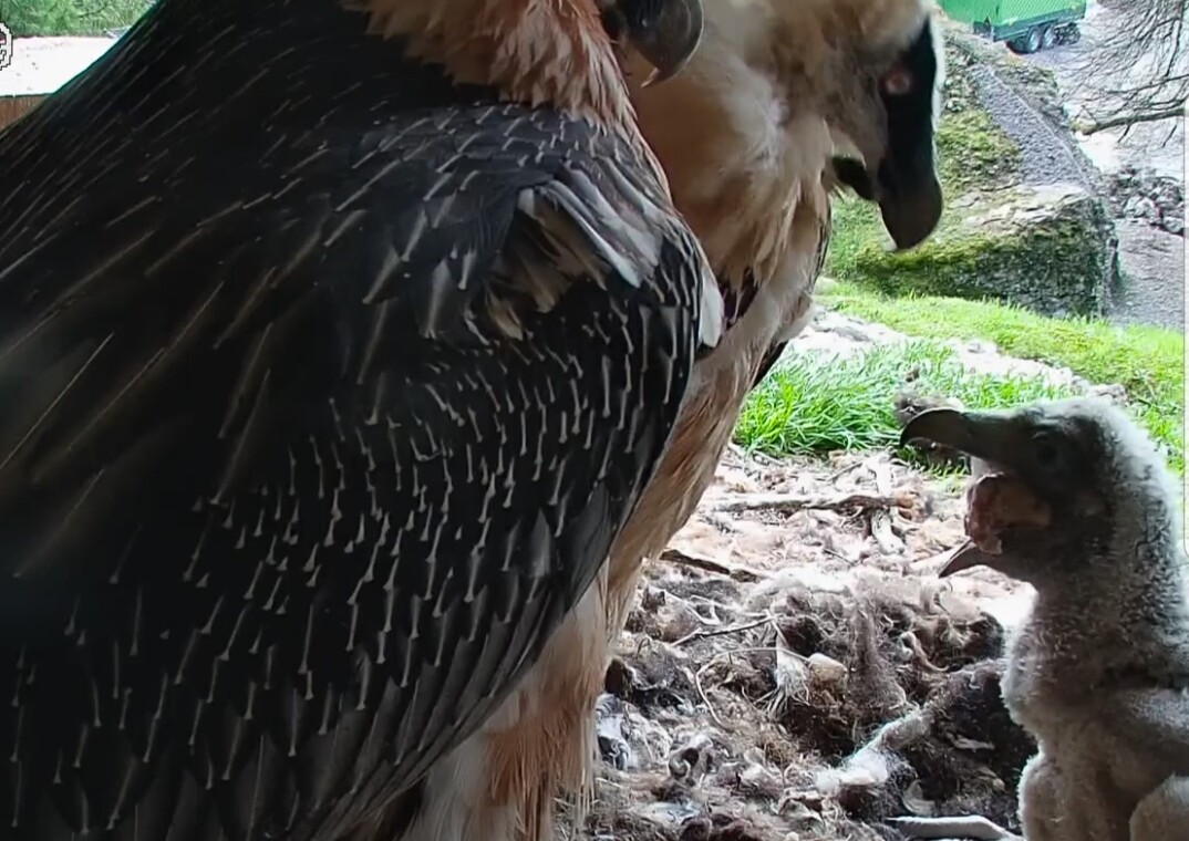 Hans bringt das Abendessen und reicht es an Bartili weiter. Der hat sich einen neuen Platz im Nest gesucht und wirkt recht zufrieden damit. ![]()