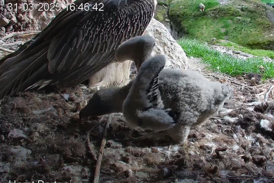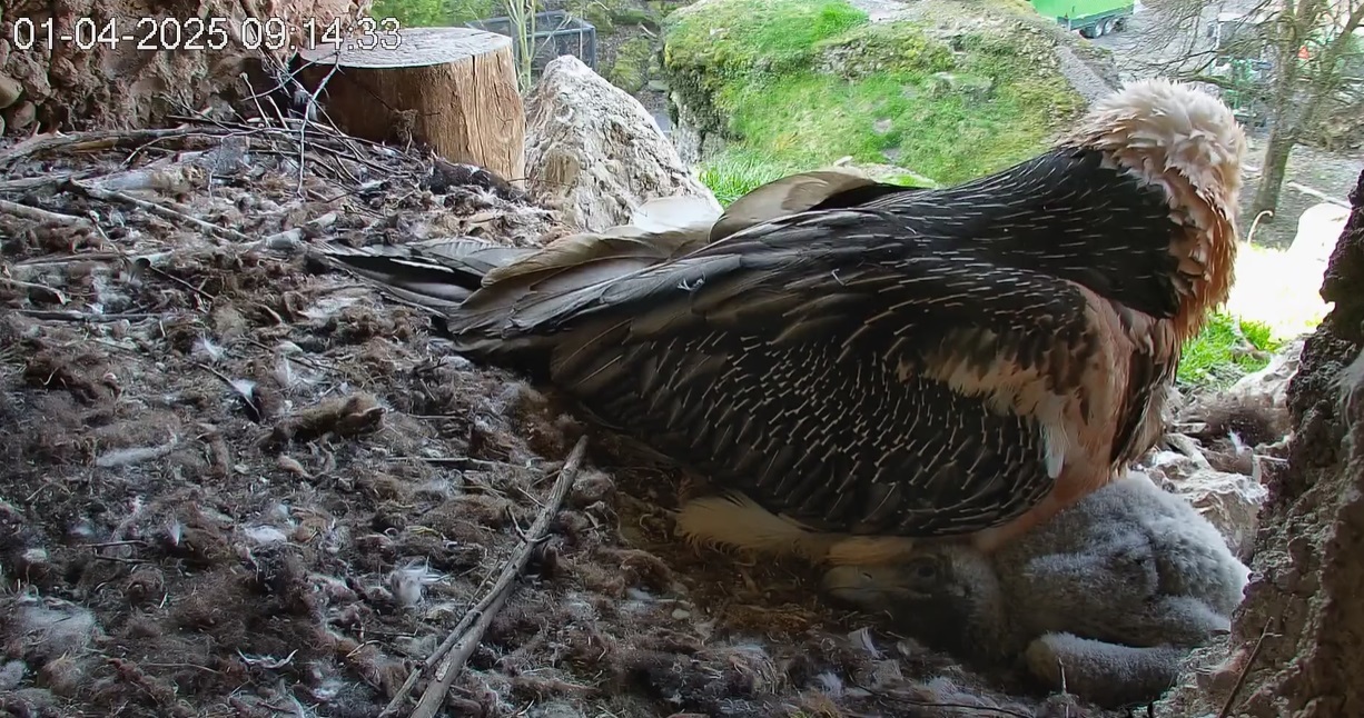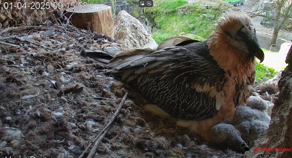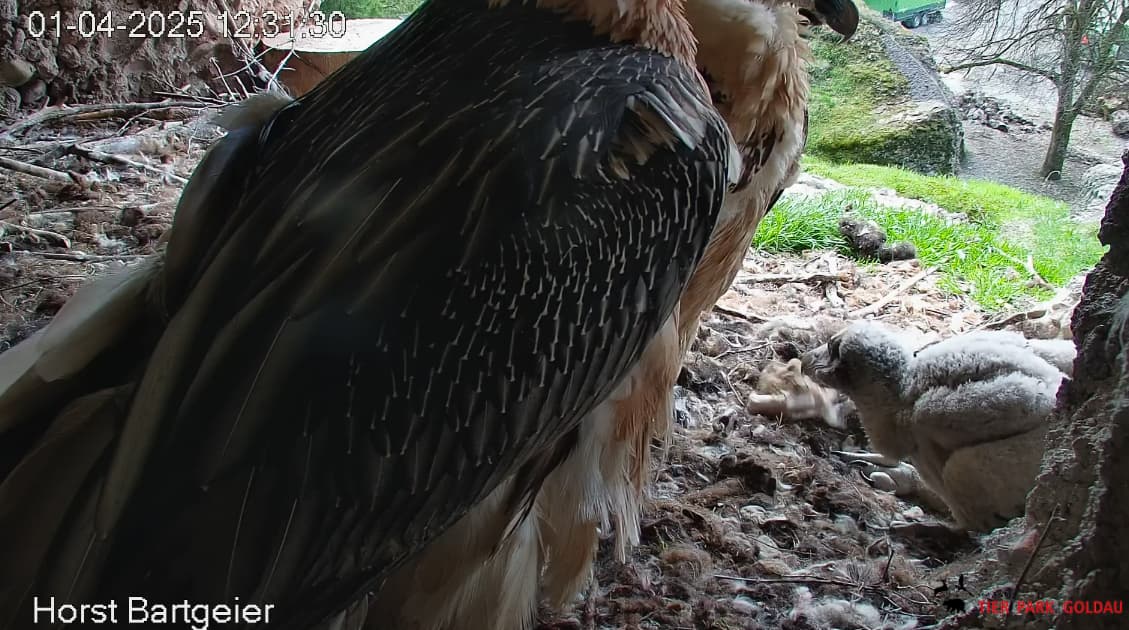 Hans bringt das Abendessen und reicht es an Bartili weiter. Der hat sich einen neuen Platz im Nest gesucht und wirkt recht zufrieden damit. ![]()