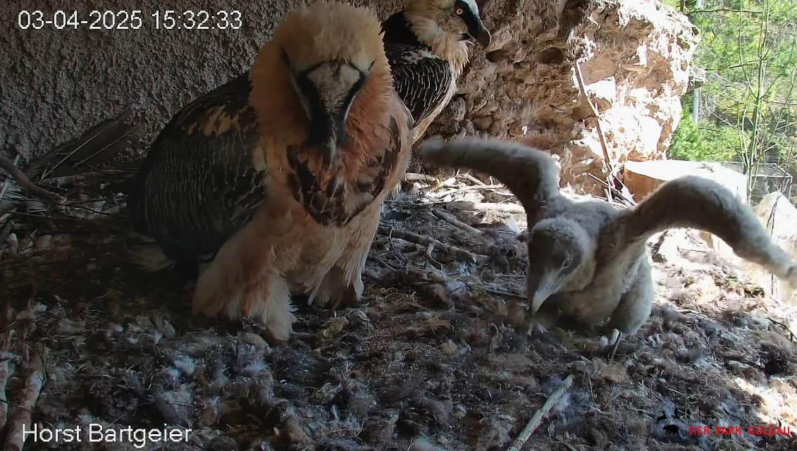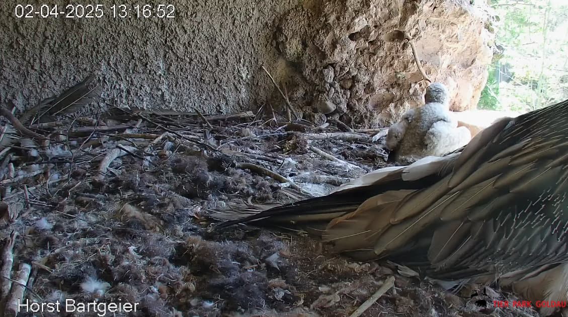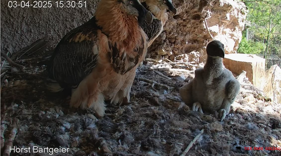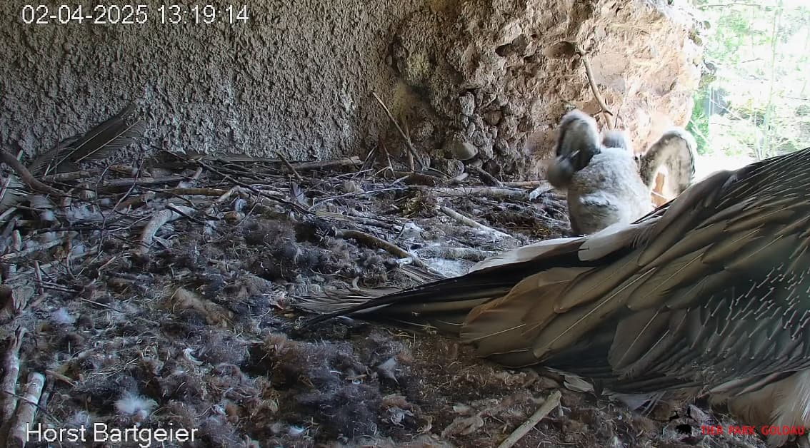 Das Bartili hat beschlossen, mal wieder das Innere des Horstes aufzusuchen, höchstwahrscheinlich um der Sonne zu entkommen, denn lt Wetterapp war es in Goldau heute schon recht warm.