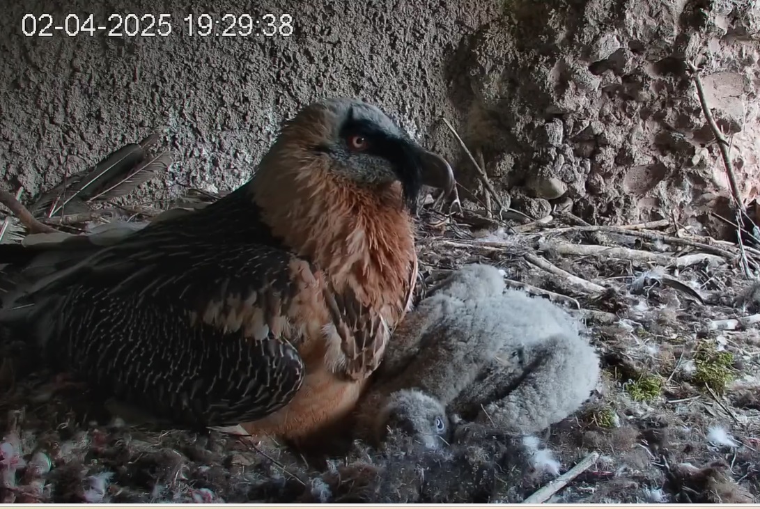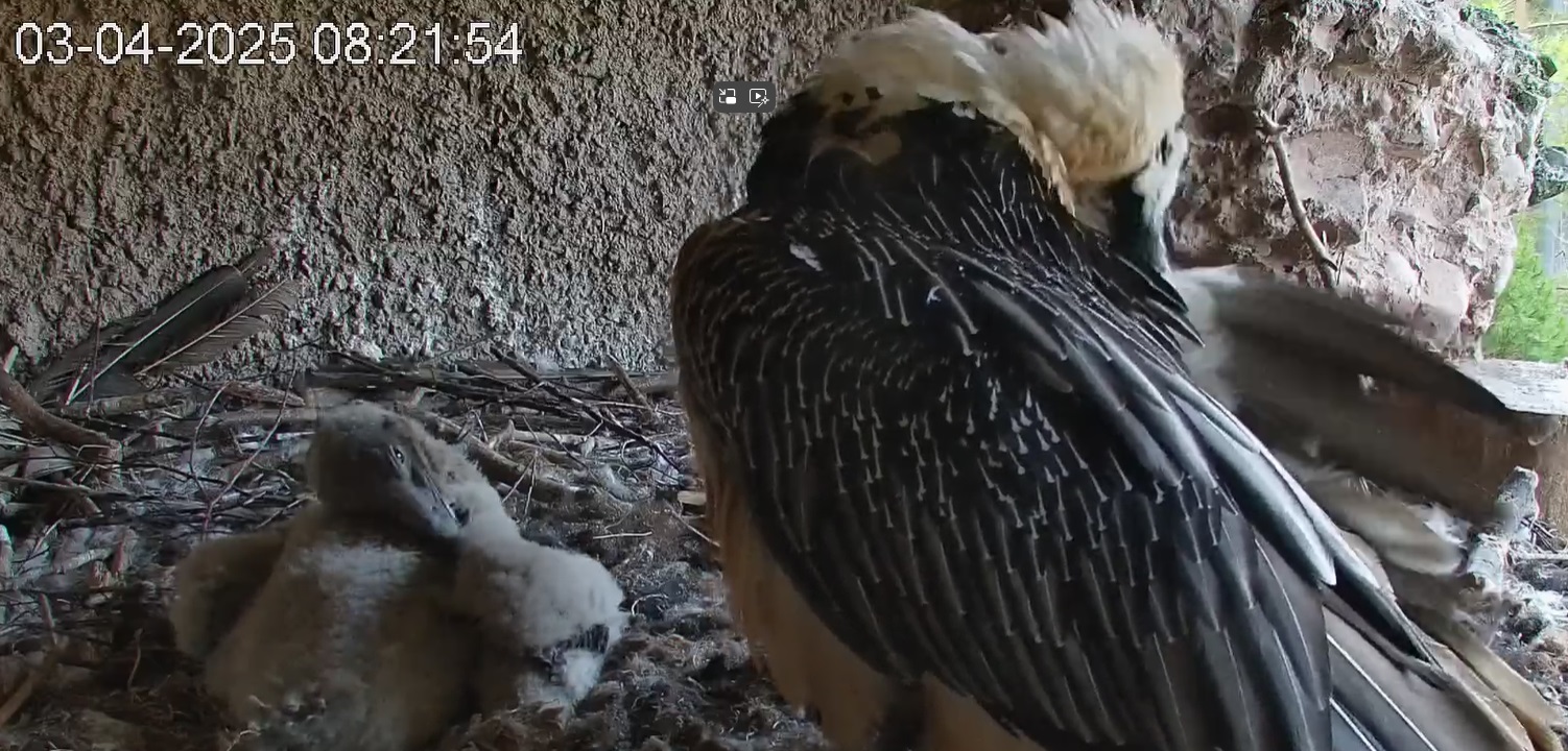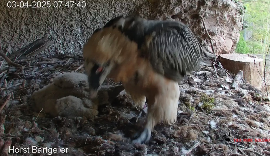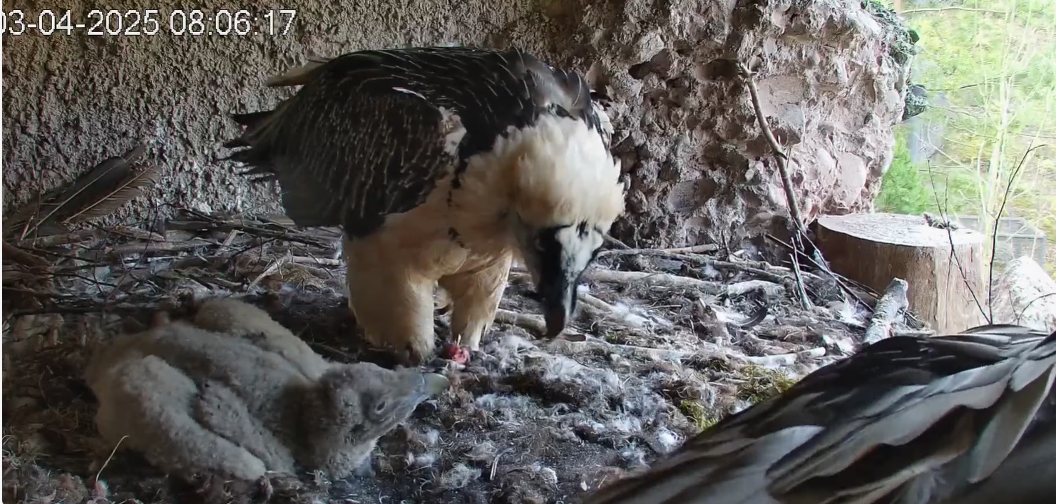 Das Bartili hat beschlossen, mal wieder das Innere des Horstes aufzusuchen, höchstwahrscheinlich um der Sonne zu entkommen, denn lt Wetterapp war es in Goldau heute schon recht warm.