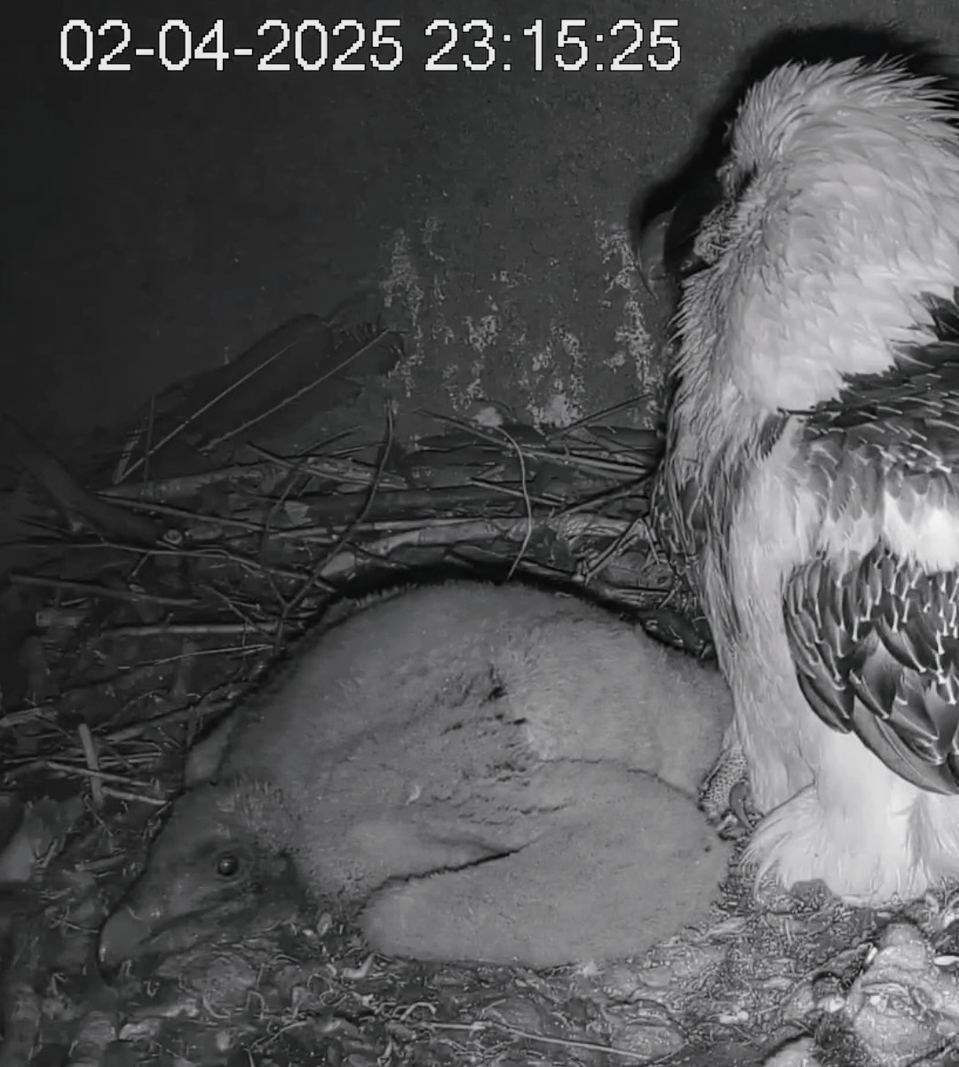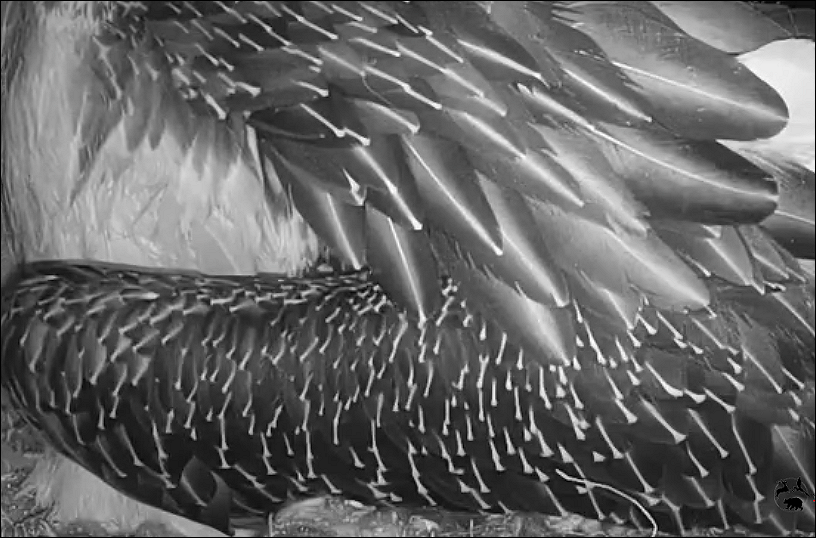 Das Kleine ist wirklich agil, denn es hatte ja schon zeitig beschlossen, die Nestkuhle zu verlassen um ein schöneres Plätzchen an der Steinwand zu finden, zu der es auch zurückrutsche nachdem es nach der Blutentnahme wieder in die Mitte des Horstes gesetzt worden war.