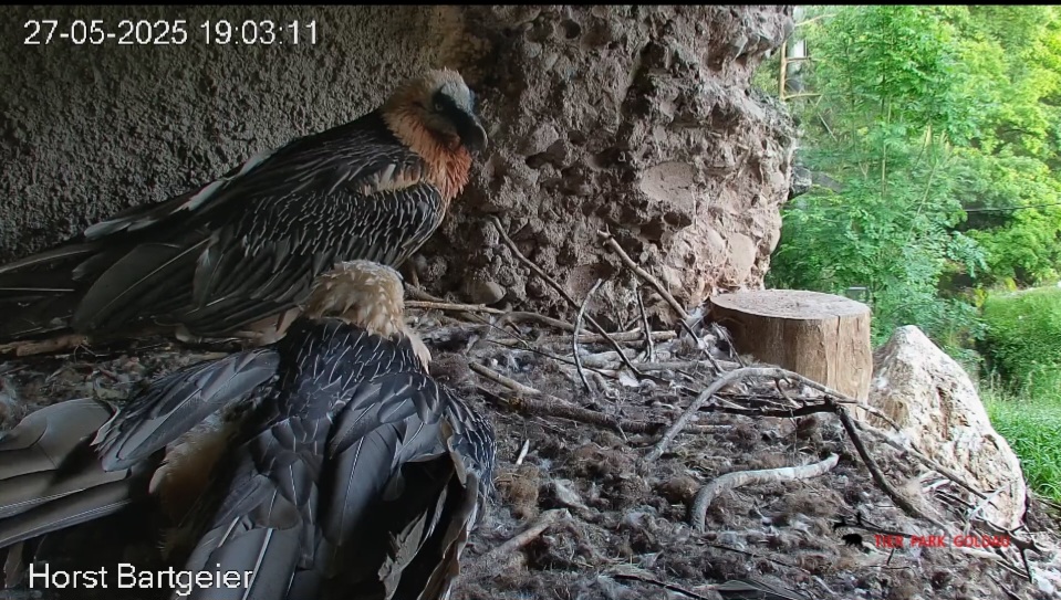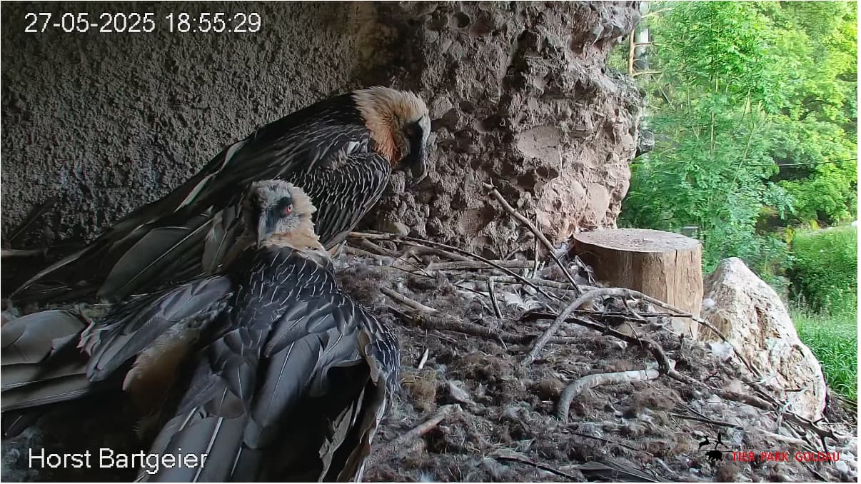 Nach Bartis Weggang herrscht Ruhe im Horst. Keine Bettellaute und keine Aufgaben für Mascha und Hans wie das Herbeischaffen von Nahrung. Für die Beiden kam das Ende sehr plötzlich und sie trauern hoffentlich nicht zu lange über ihren „Verlust“. ![]()