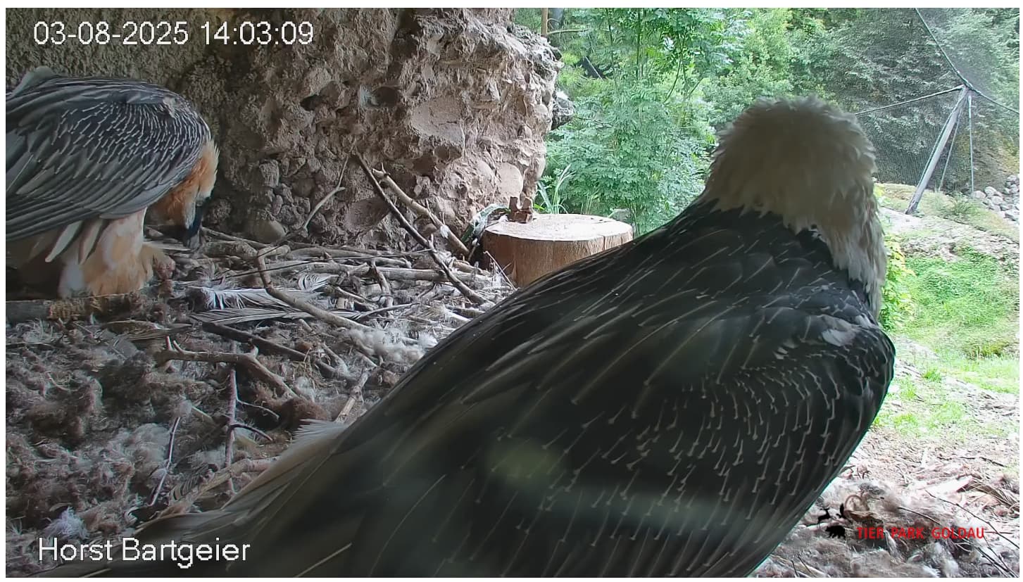 Frei, 8:30 Uhr: Hans besucht Mascha im Horst und animiert sie, mit rauszukommen.