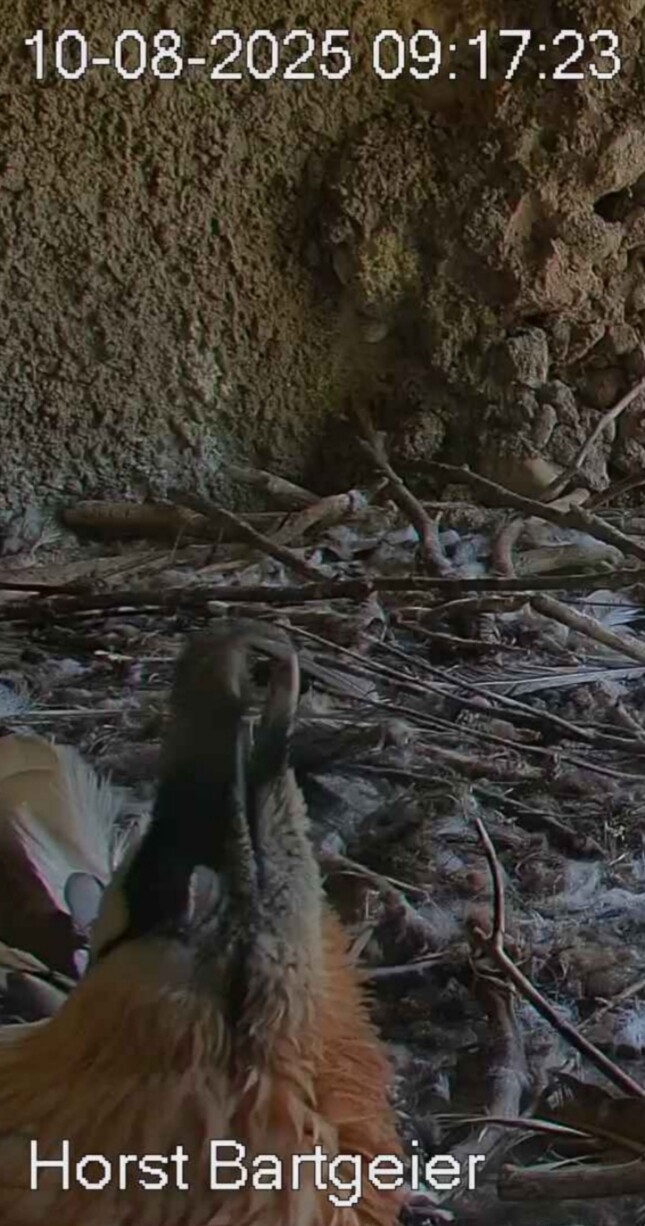 Sonntag Morgen 9:17 Uhr. Mascha scheint im Horst zu ruhen. Die Augen geschlossen reckt sie den Hals senkrecht nach oben und - schnäbelt?/ beißt in die Luft?