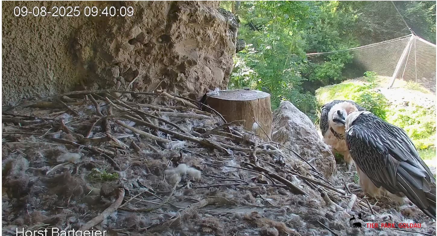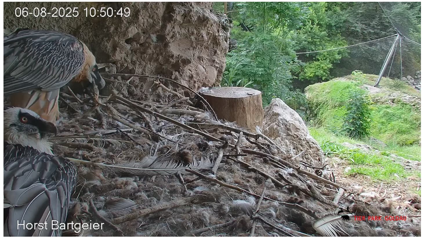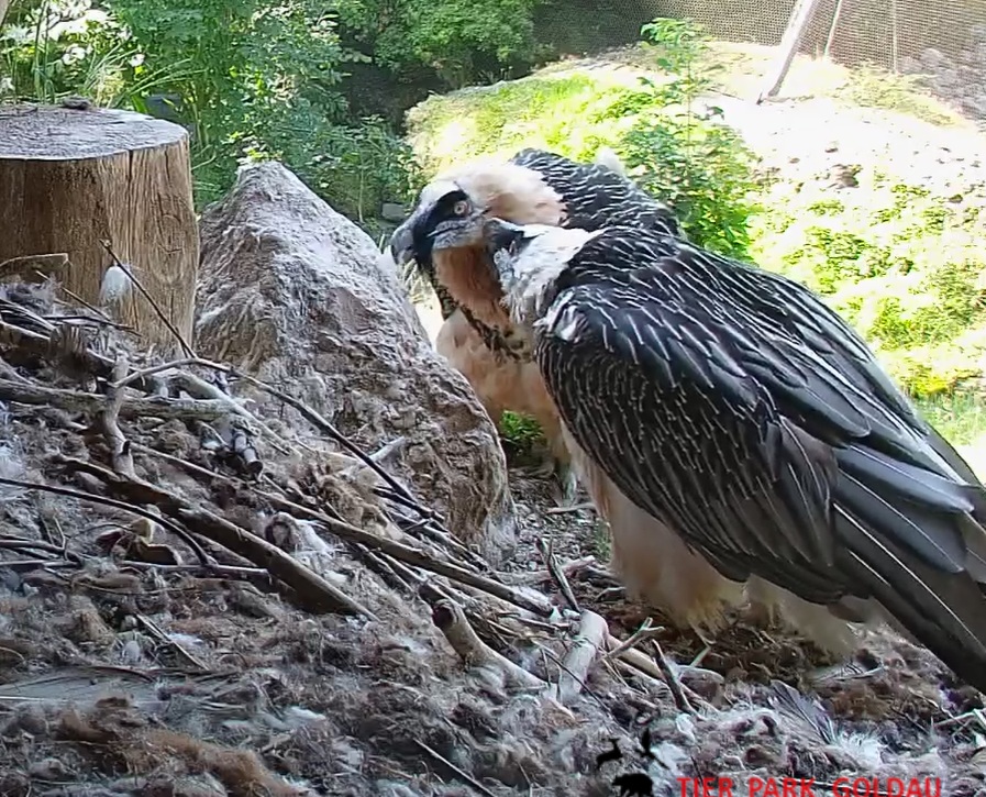 Do, 9:15 Uhr: Mascha u. Hans entspannen sich vor dem Horst. Mascha geht dabei recht zärtlich mit ihrem Partner um.