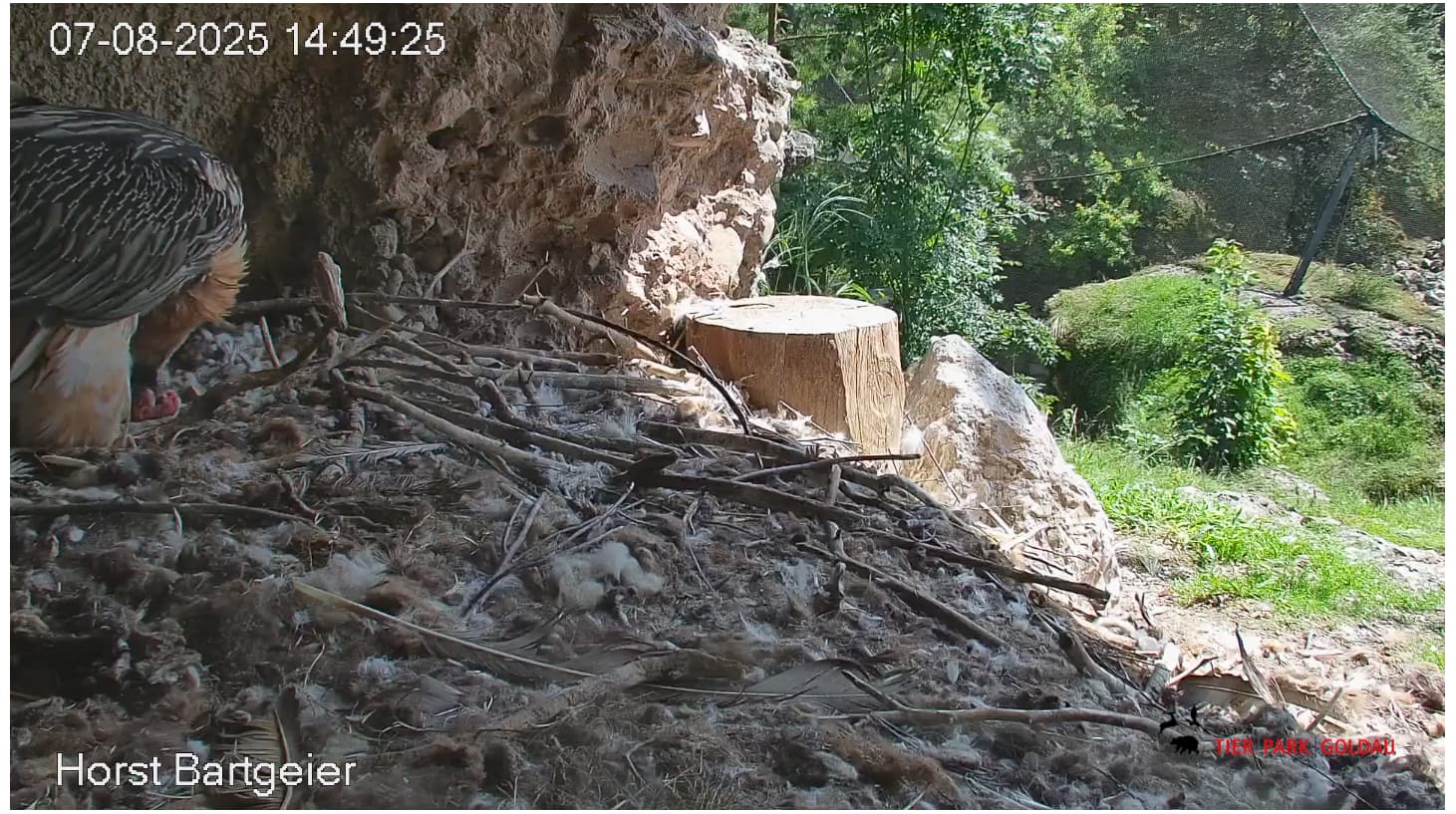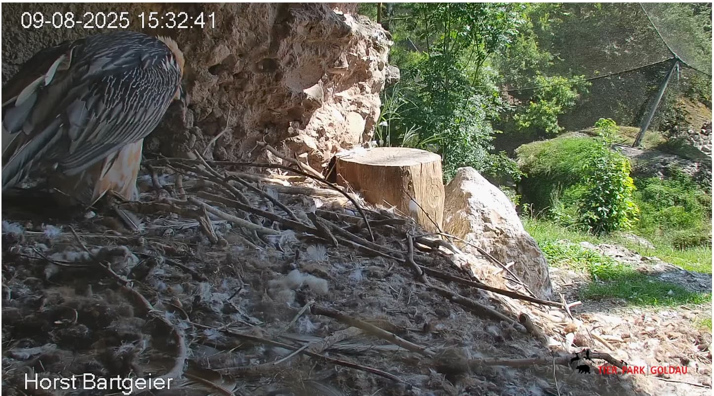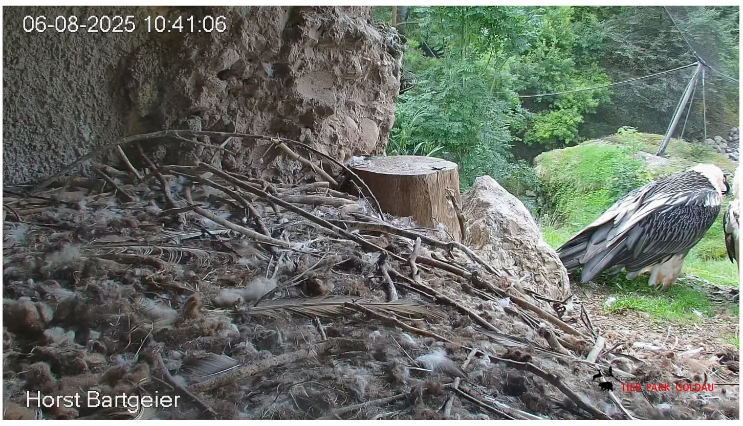 Do, 9:15 Uhr: Mascha u. Hans entspannen sich vor dem Horst. Mascha geht dabei recht zärtlich mit ihrem Partner um.