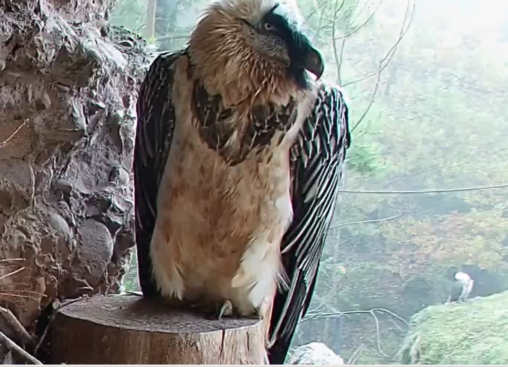 In Goldau scheint es leicht neblig zu sein. Mascha döst auf dem Ansitz mit ihrer Federfarbenpracht und Hans findet man auf dem Hügel gegenüber in ziemlicher Entfernung. Der Hintergrund wirkt etwas “milchig”.