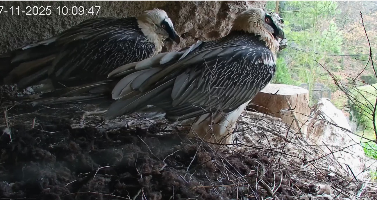 Leichter Regen in Goldau. Mascha und Hans verbringen den Morgen zusammen im Horst und schauen nach draußen.