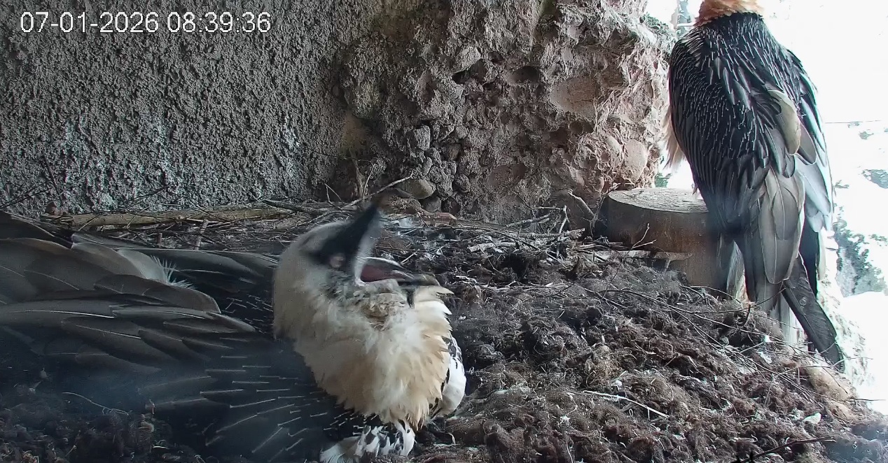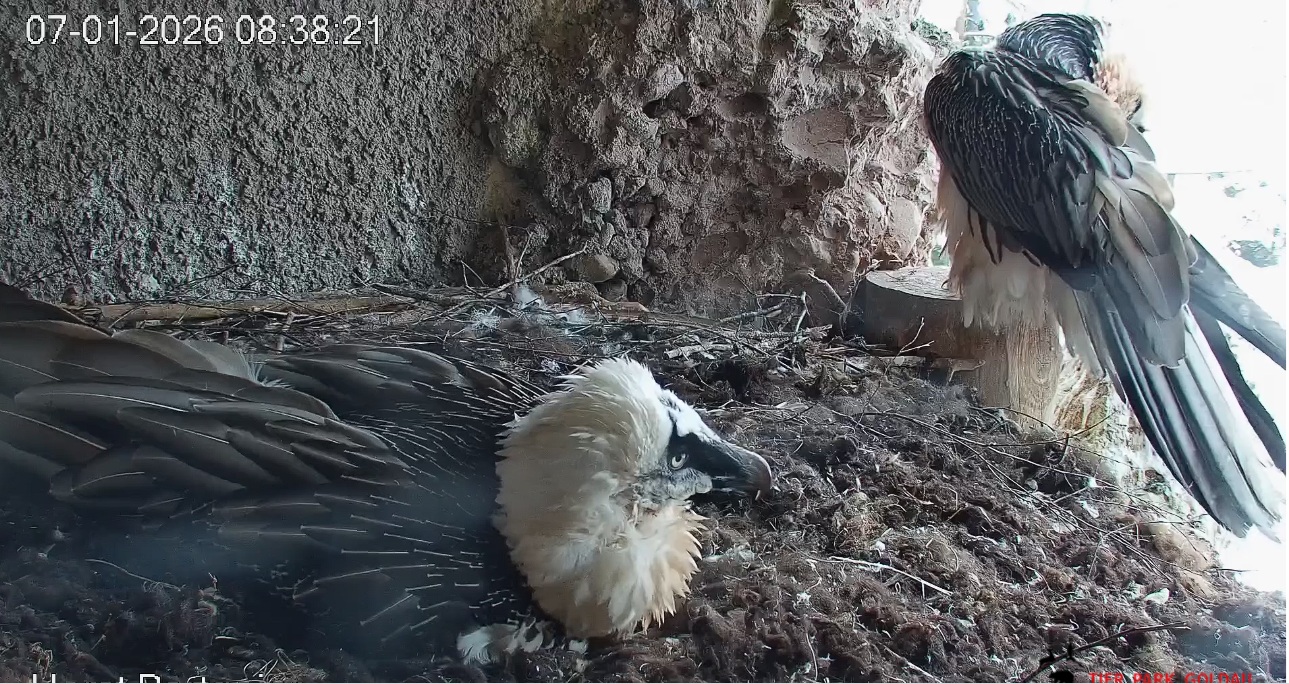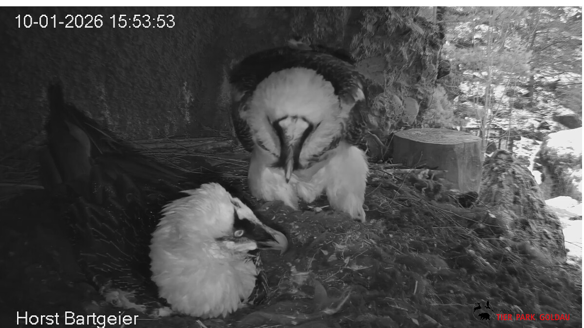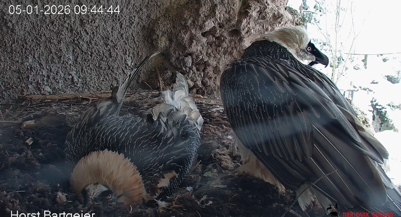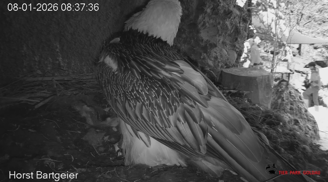 ich gehe davon aus, dass Bartgeier auch nachts relativ gut sehen. Wir hatten etwa bei den nächtlichen Besuchen vom Fuchs in unserer Nische eine deutliche Ornientierung von Sisi hin zum Störenfried, obwohl es stockfinster gewirkt hat. Auch durch GPS-Daten weiß man mittlerweile von vereinzelten Flügen bei völliger Dunkelheit, wo Bartgeier offenbar am Schlafplatz gestört wurden und abgeflogen sind. Solange also nur ein wenig Restlicht vorhanden oder starke Kontraste/Bewegungen vorherrschen, dürften BG also auch nachts ziemlich klar orientiert sein. Herzliche Grüße!