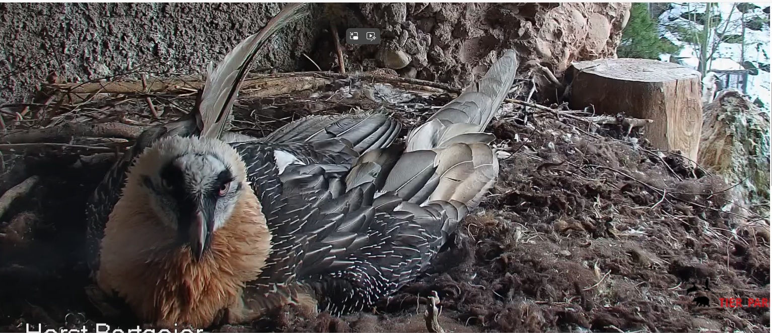 Woher wissen Bartgeier, wann es Zeit für eine Ablöse beim Brüten ist. Normalerweise stellen sie sich neben den Partner und fordern ihn somit zum Wechseln auf. Wie lange aber hat der Andere schon gebrütet, es muss ja ein Zeitgefühl bei den Vögeln bestehen. Mascha und Hans, ein eingespieltes Team, sind sich immer recht einig bei der Ablöse.
