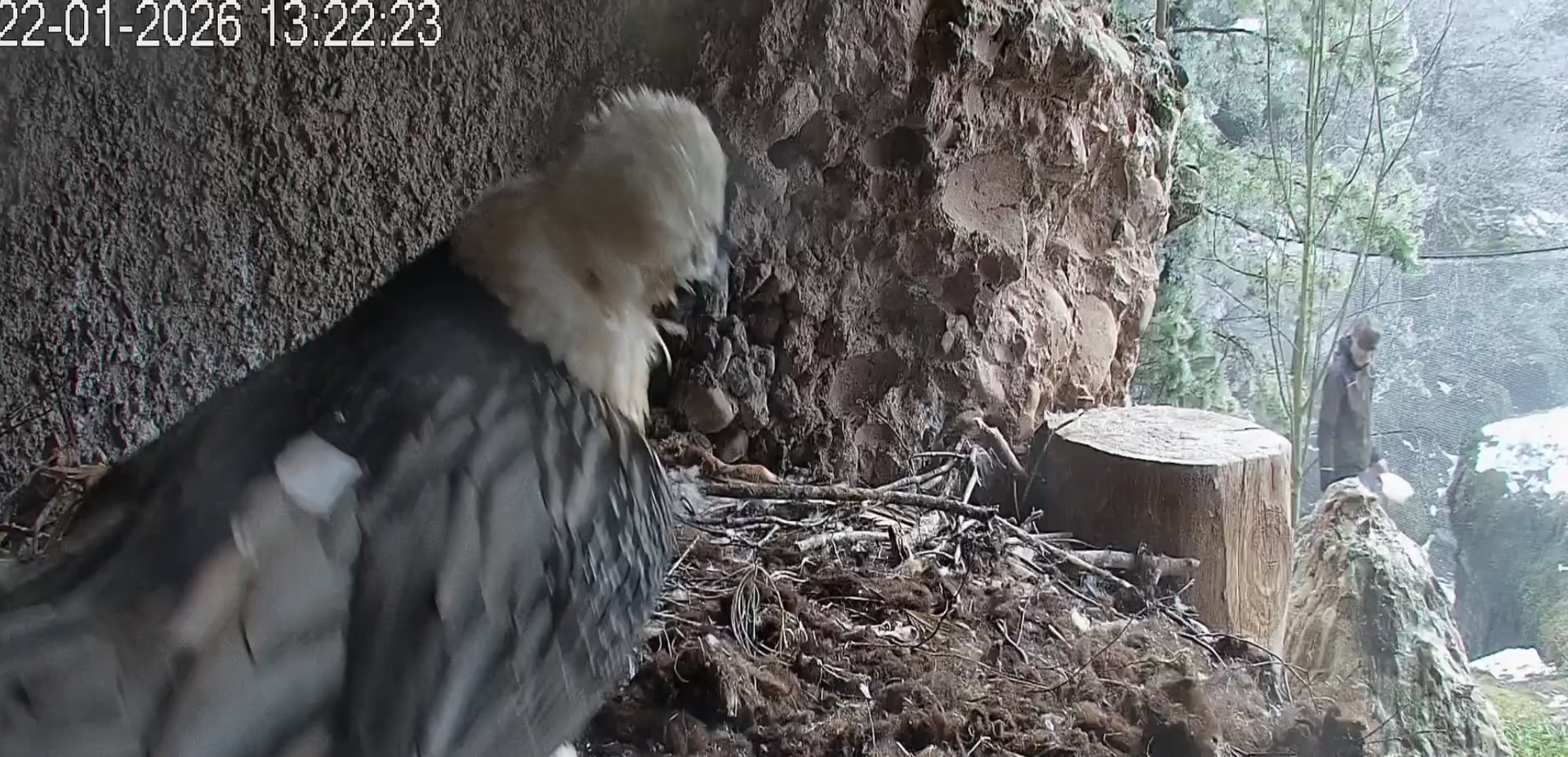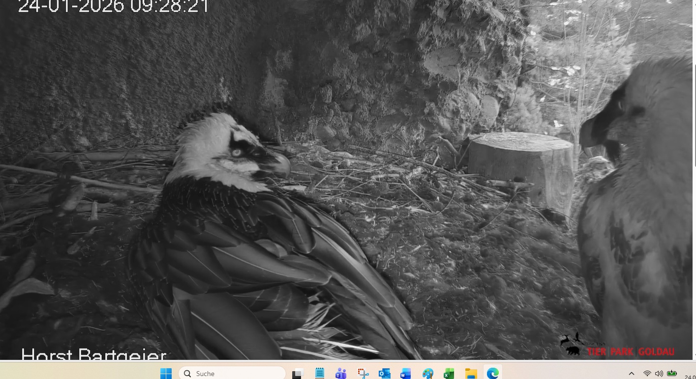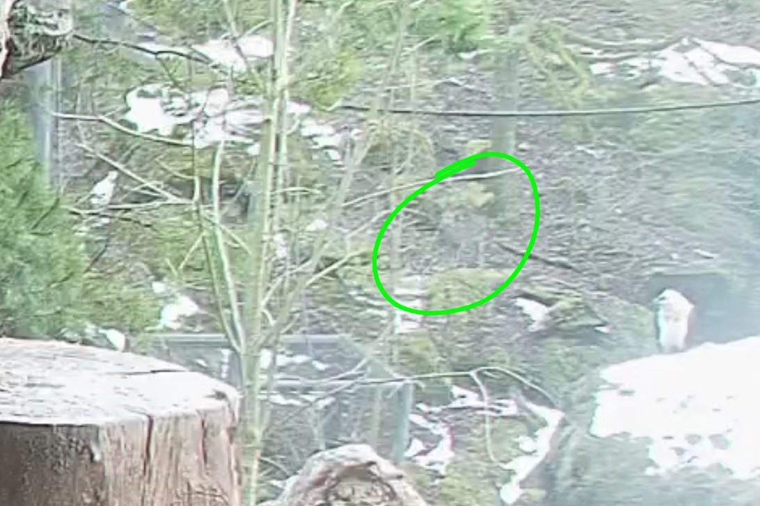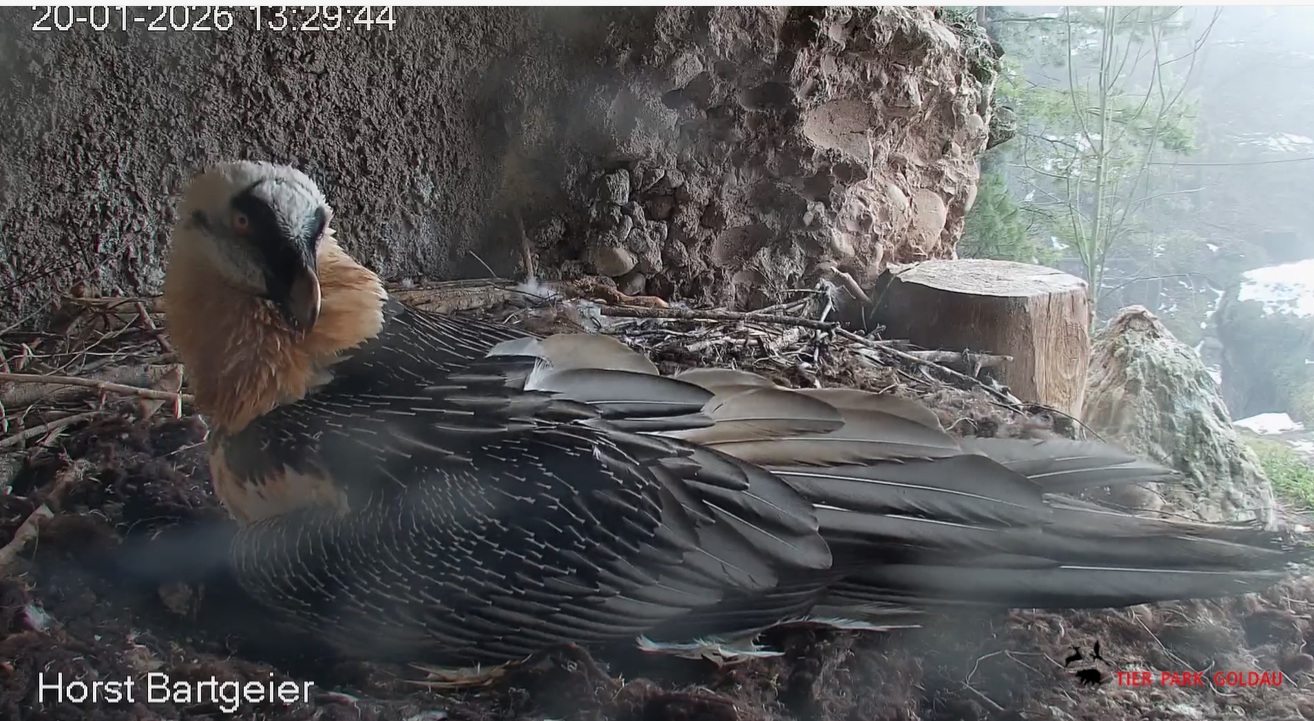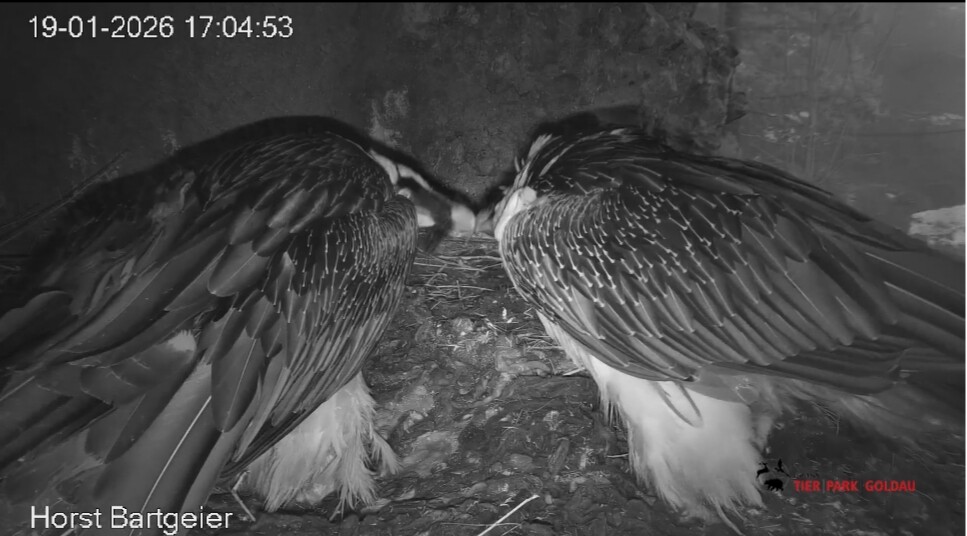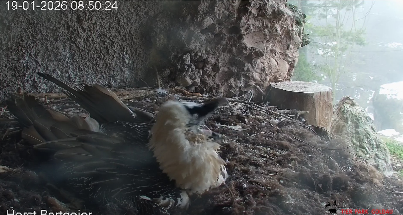 Heute Morgen wieder ein Moment erhöhter Aufmerksamkeit und Unruhe, als ein Pfleger vorbeiging. Mascha verließ dann den Ansitz, derweil Hans sich intensiv um das Ei gekümmert hat, trotz offensichtlicher Müdigkeit. ![]()