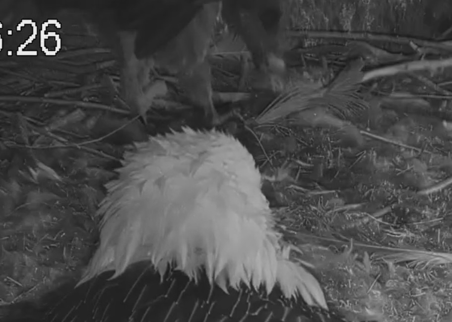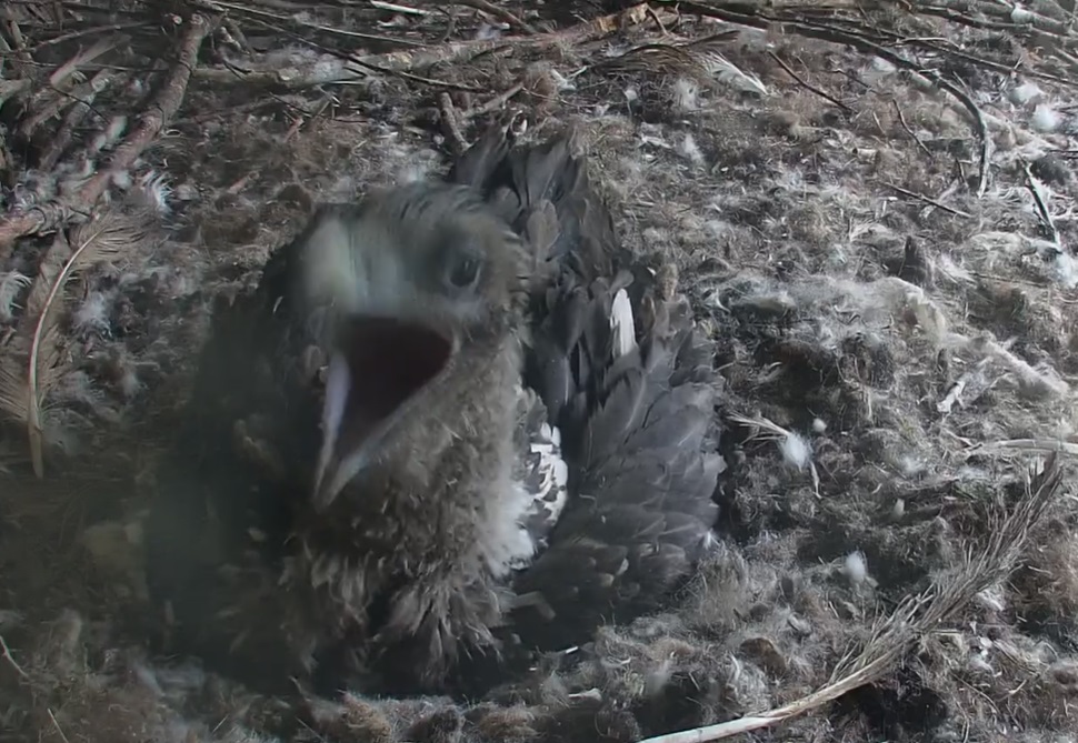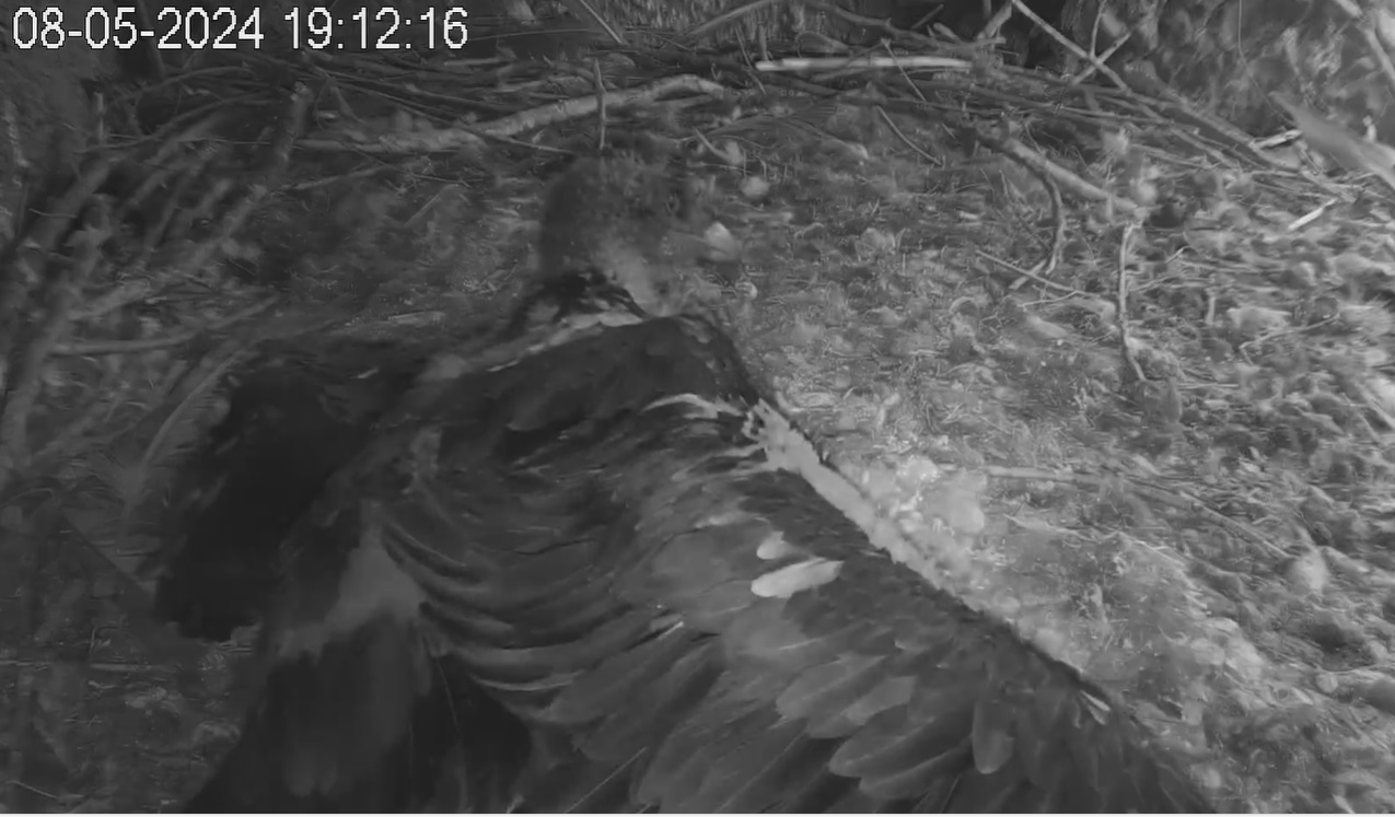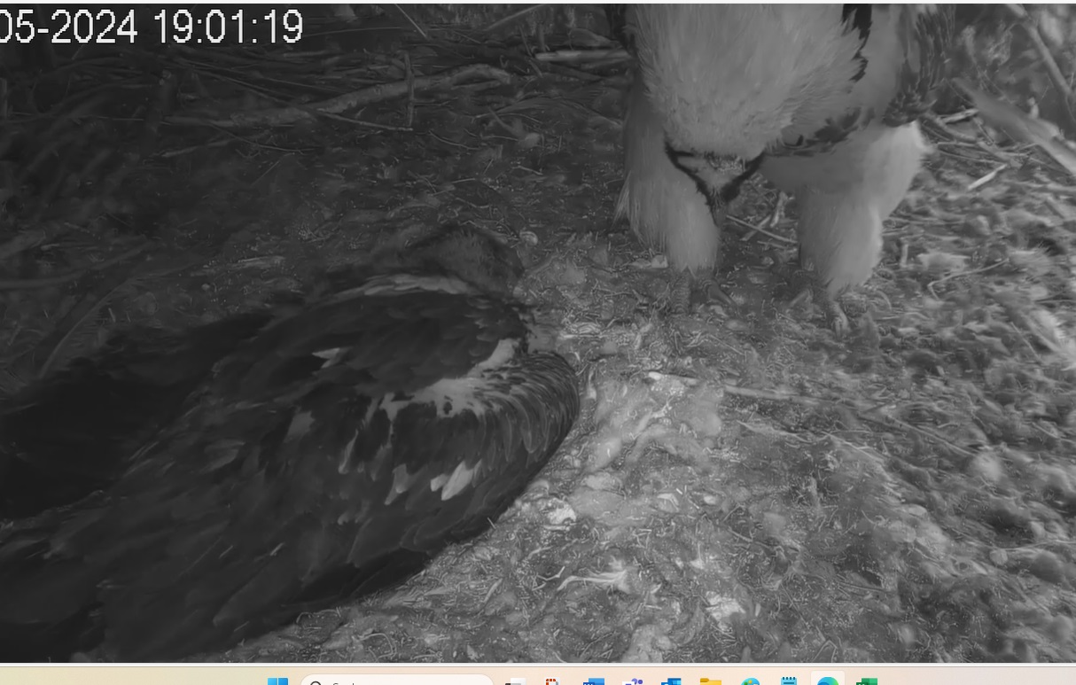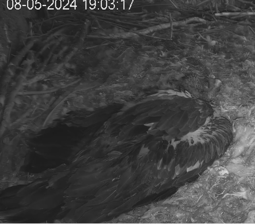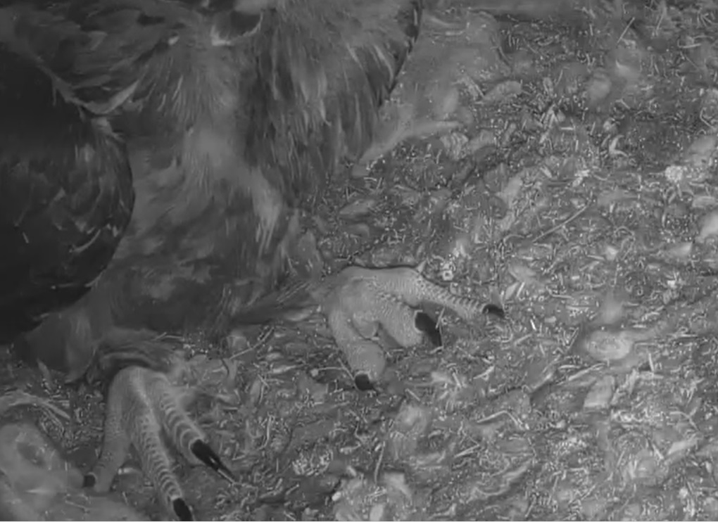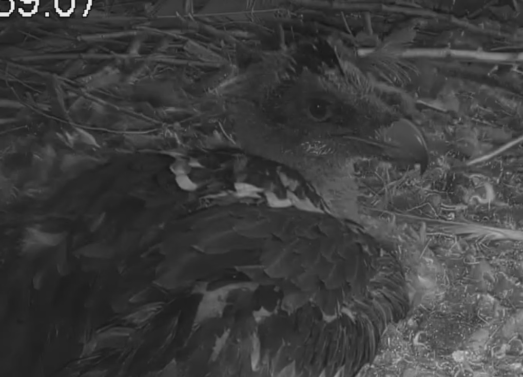 Heute morgen wird mit dem Schnabel geübt. Bartili zerlegt u.a. eine Feder unter den wachsamen Augen von Hans und marschiert Richtung Ansitz. Später räumt Hans seinen Platz und Bartili kann wieder in seine Schlafmulde, sich ausruhen.
