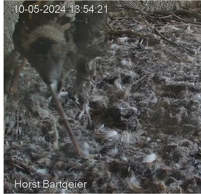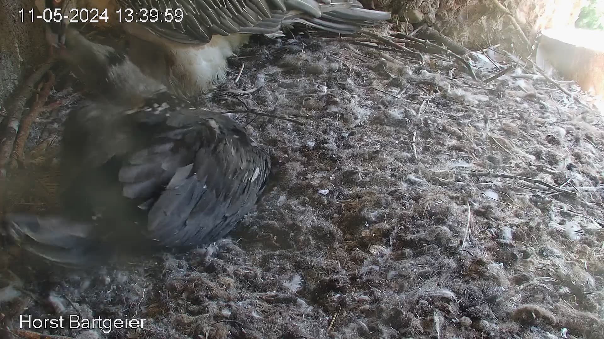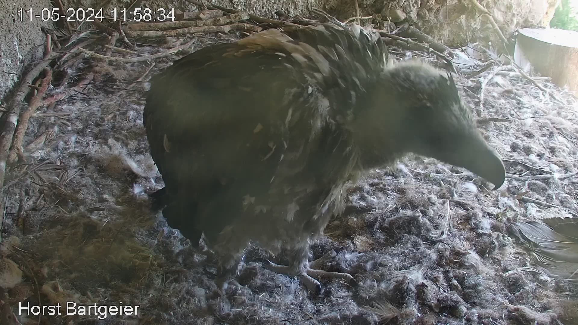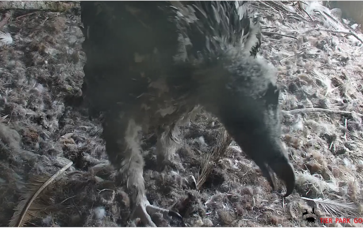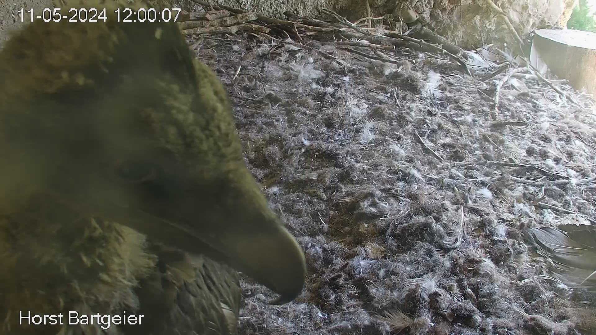 Ja der „Barti“ hat ca. 1 Std. den Horst aufgeräumt, dann gab es eine kurze Pause. Schon musste er wieder aufstehen und die Kamera begutachten. Er ist inzwischen doch sehr neugierig.