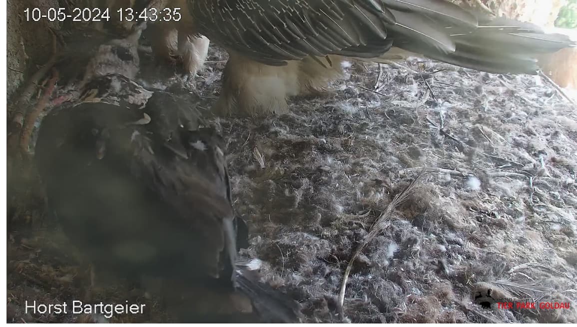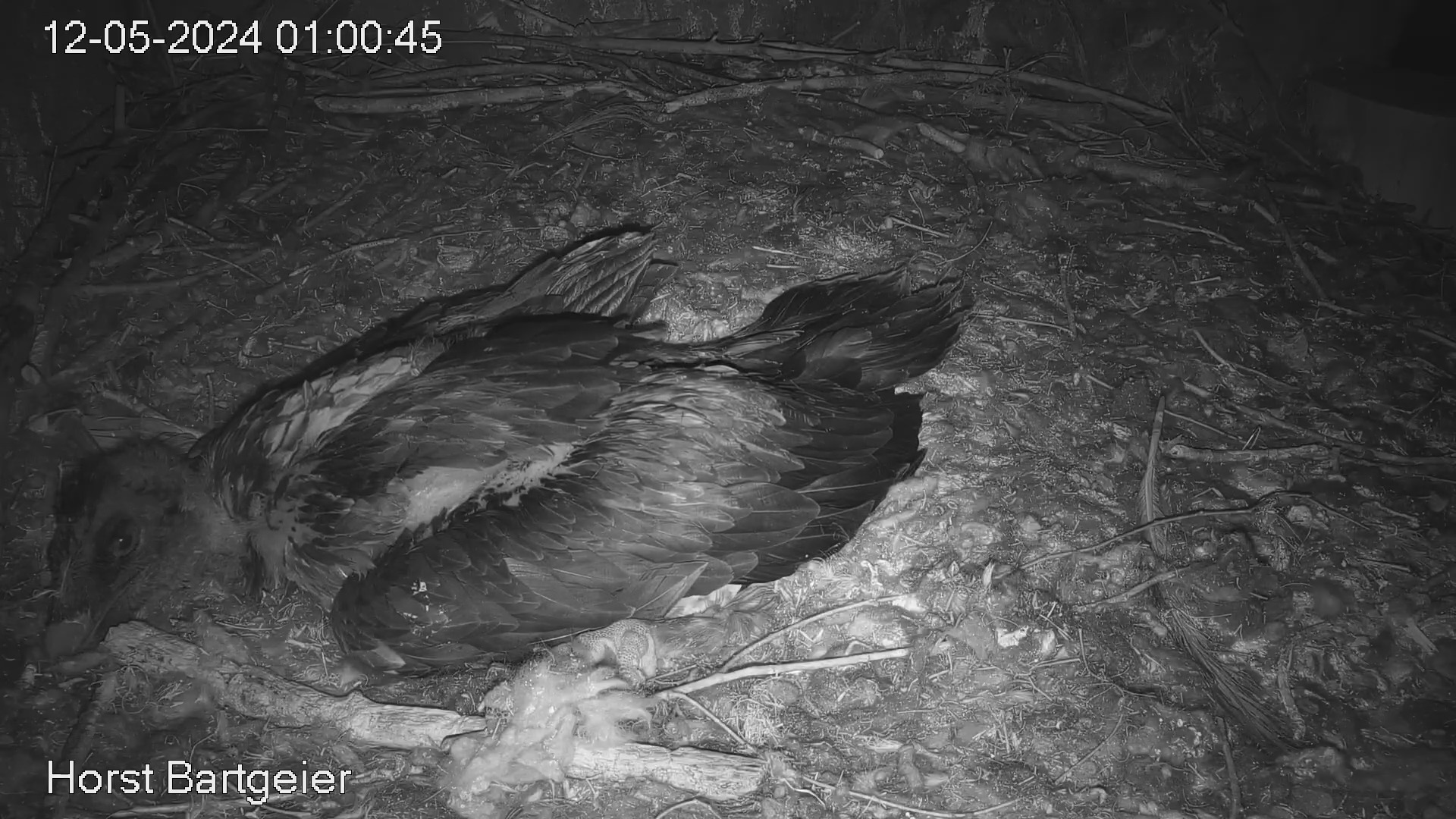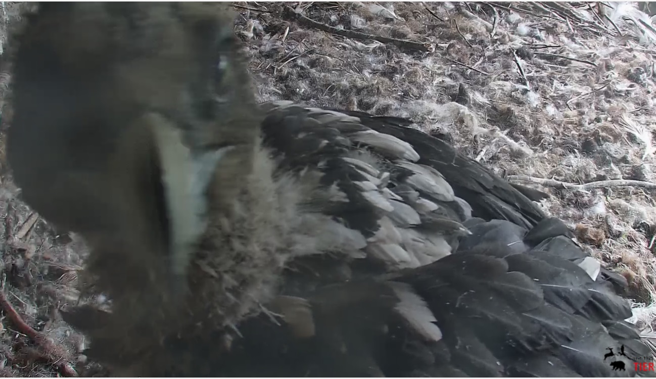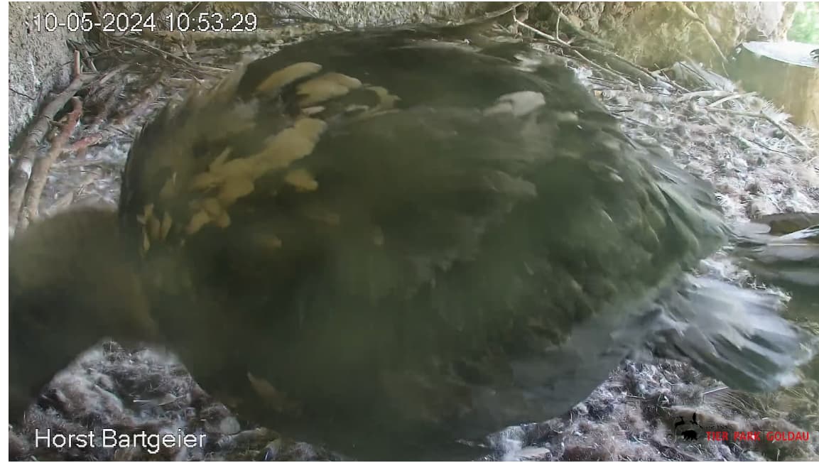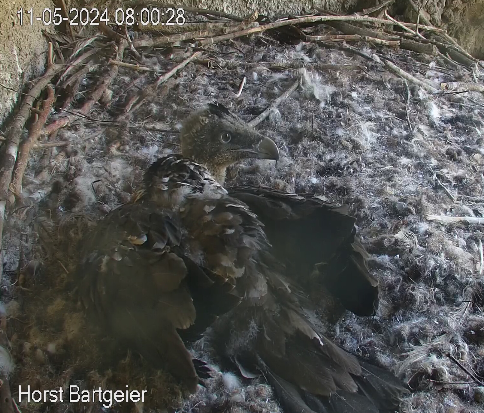 Ja der „Barti“ hat ca. 1 Std. den Horst aufgeräumt, dann gab es eine kurze Pause. Schon musste er wieder aufstehen und die Kamera begutachten. Er ist inzwischen doch sehr neugierig.