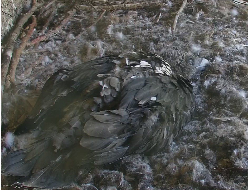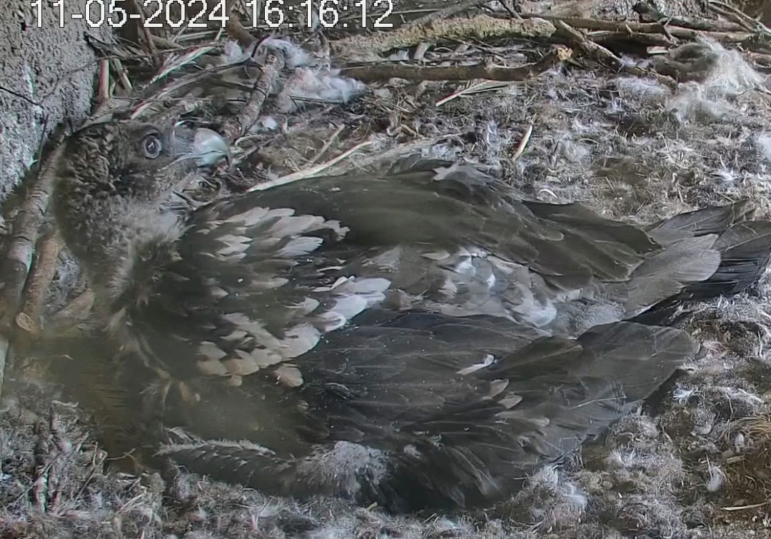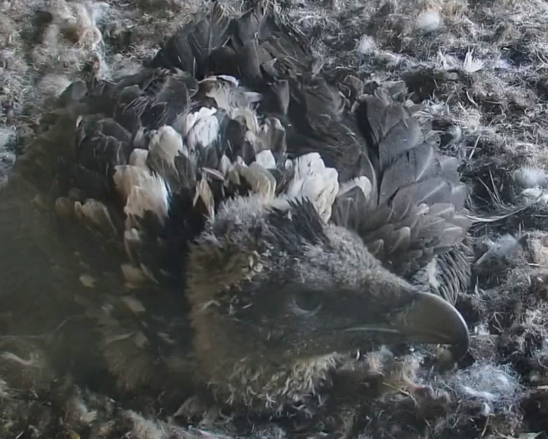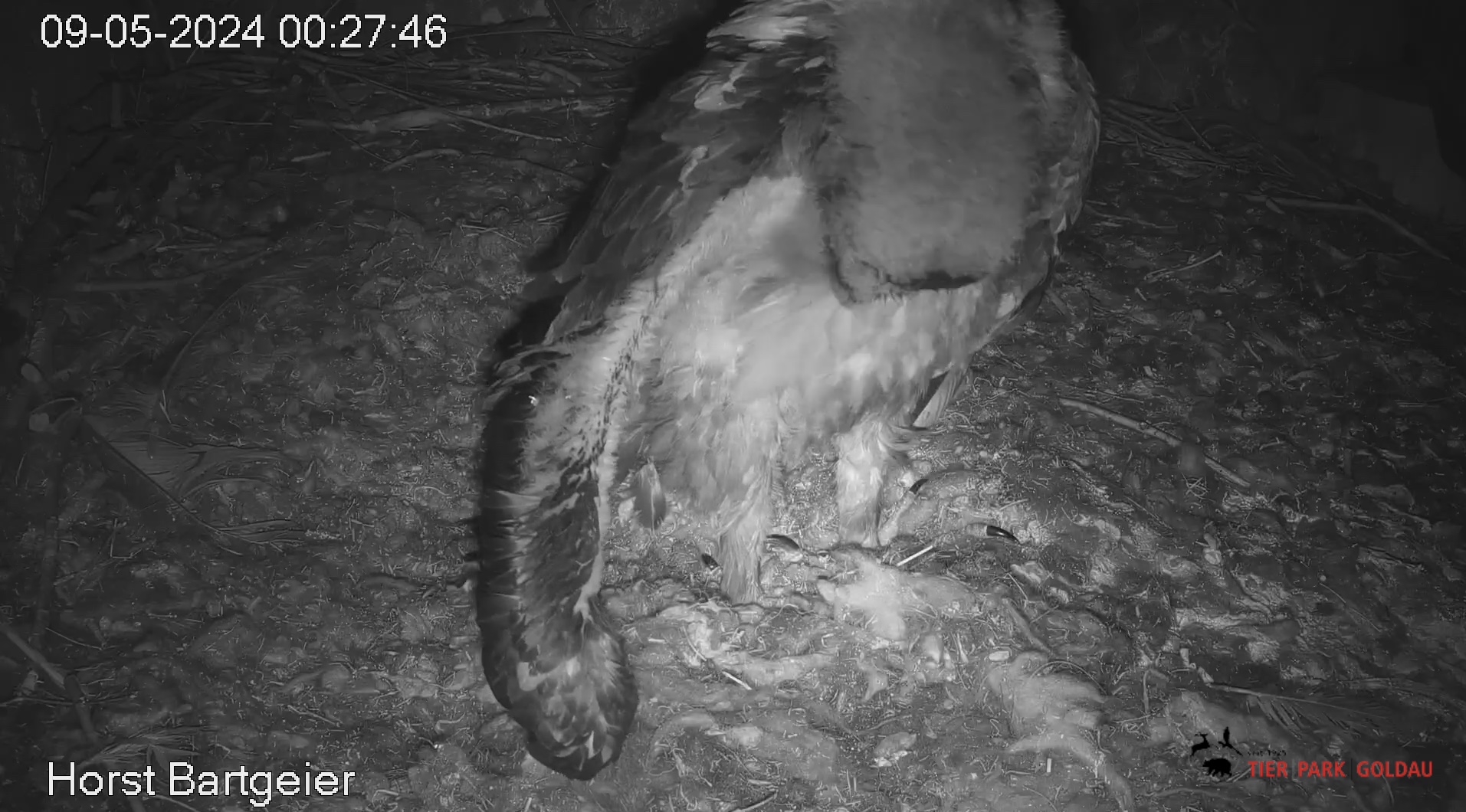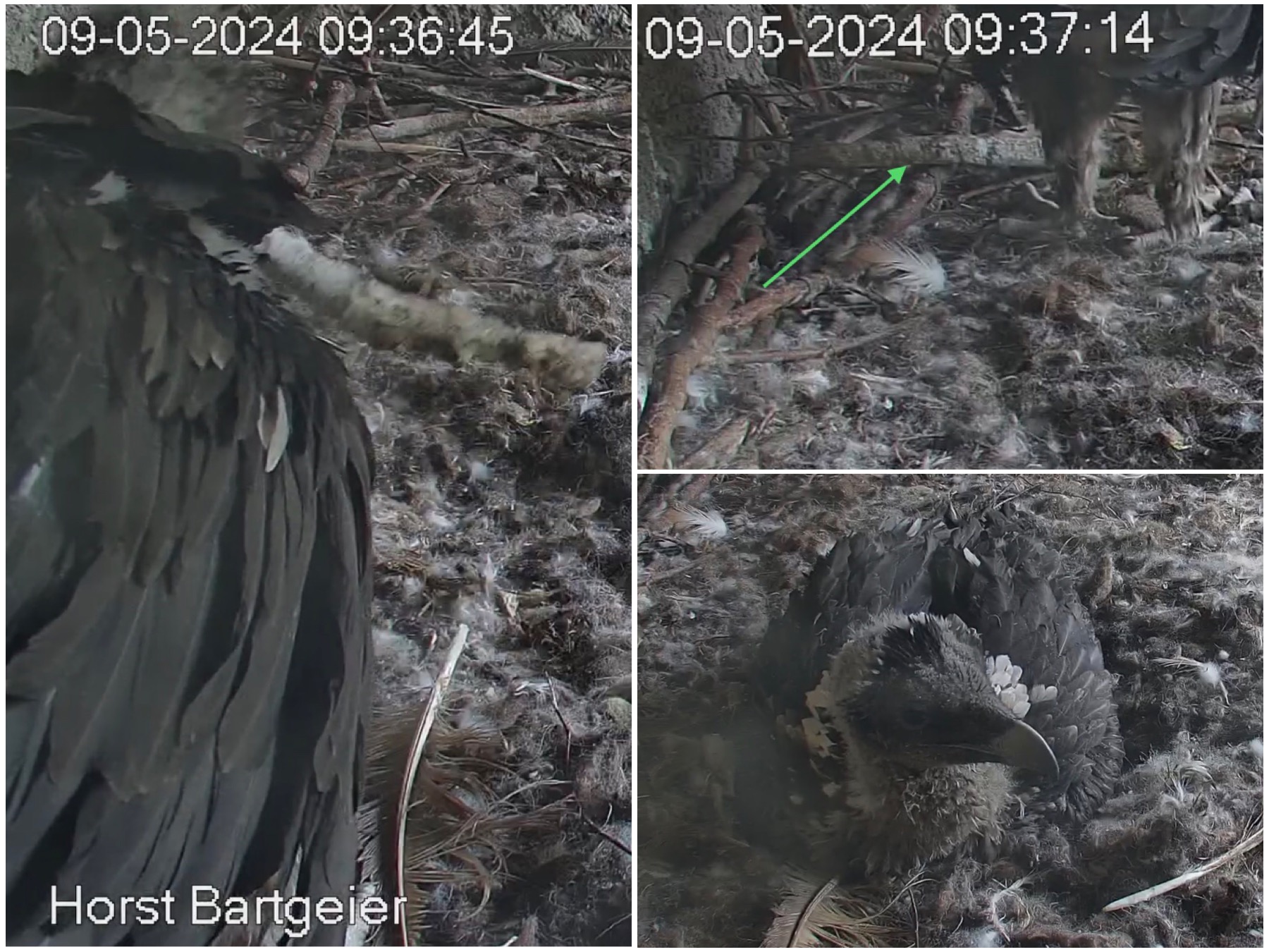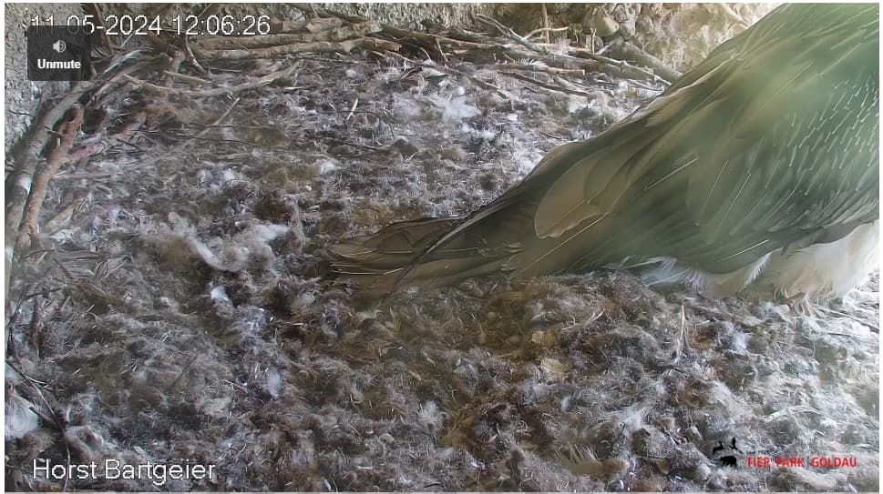 Ja der „Barti“ hat ca. 1 Std. den Horst aufgeräumt, dann gab es eine kurze Pause. Schon musste er wieder aufstehen und die Kamera begutachten. Er ist inzwischen doch sehr neugierig.