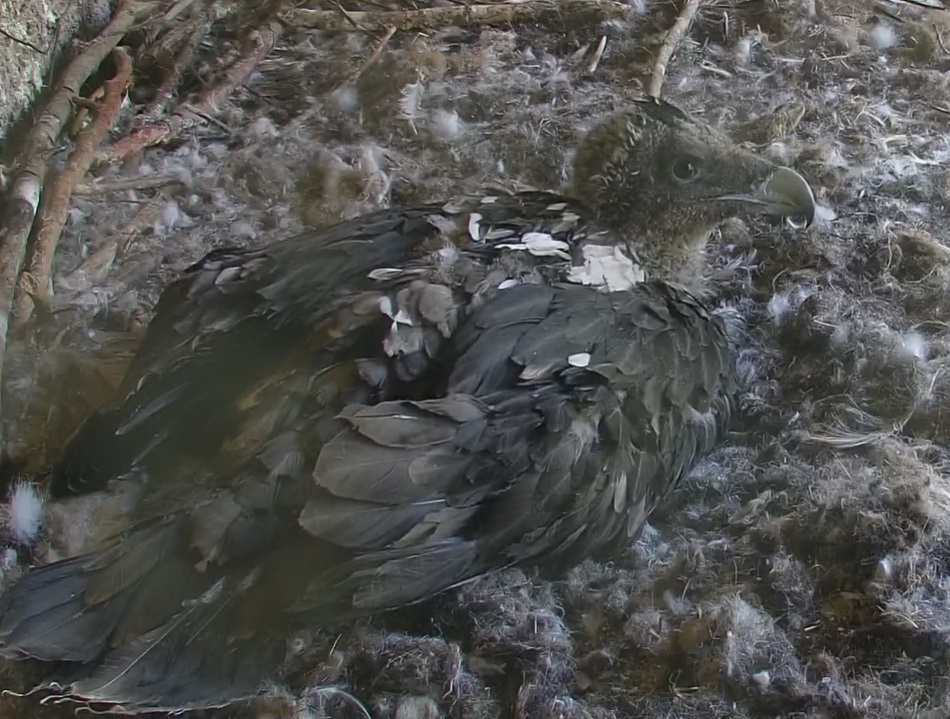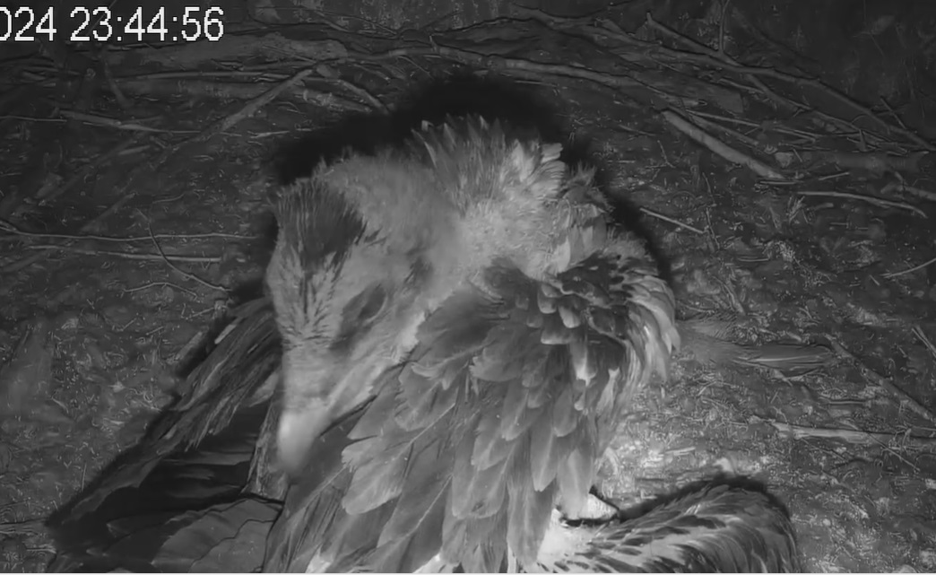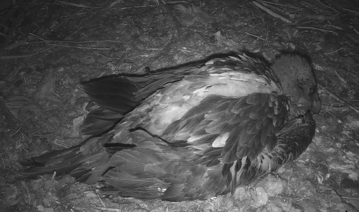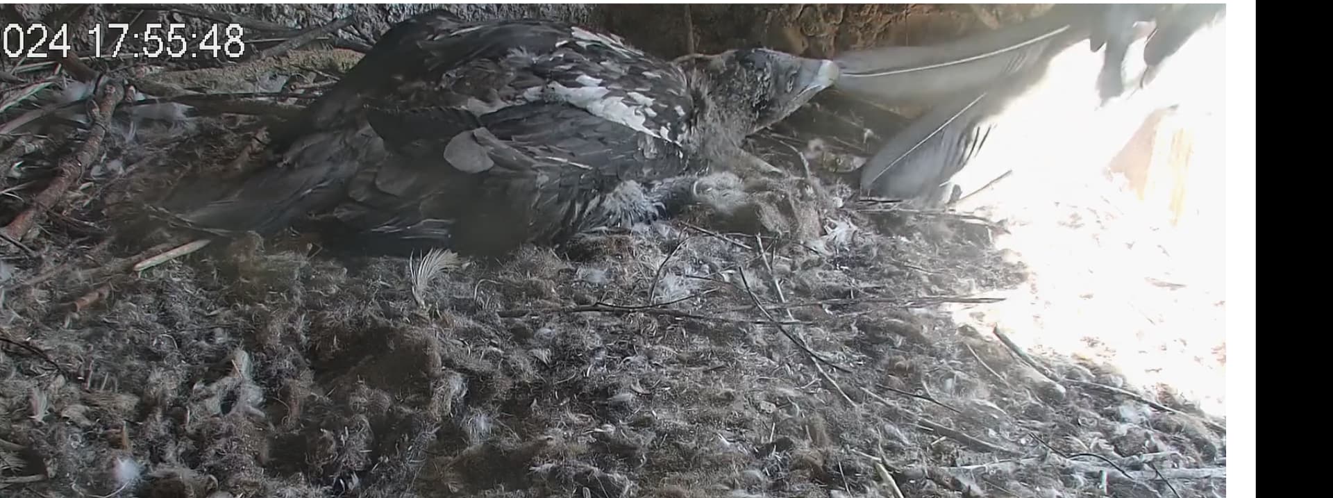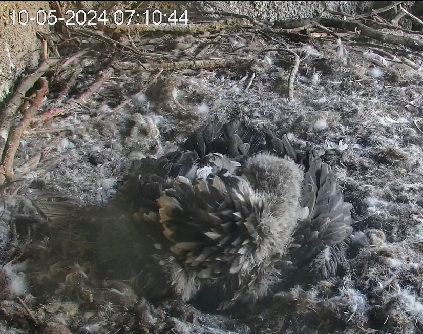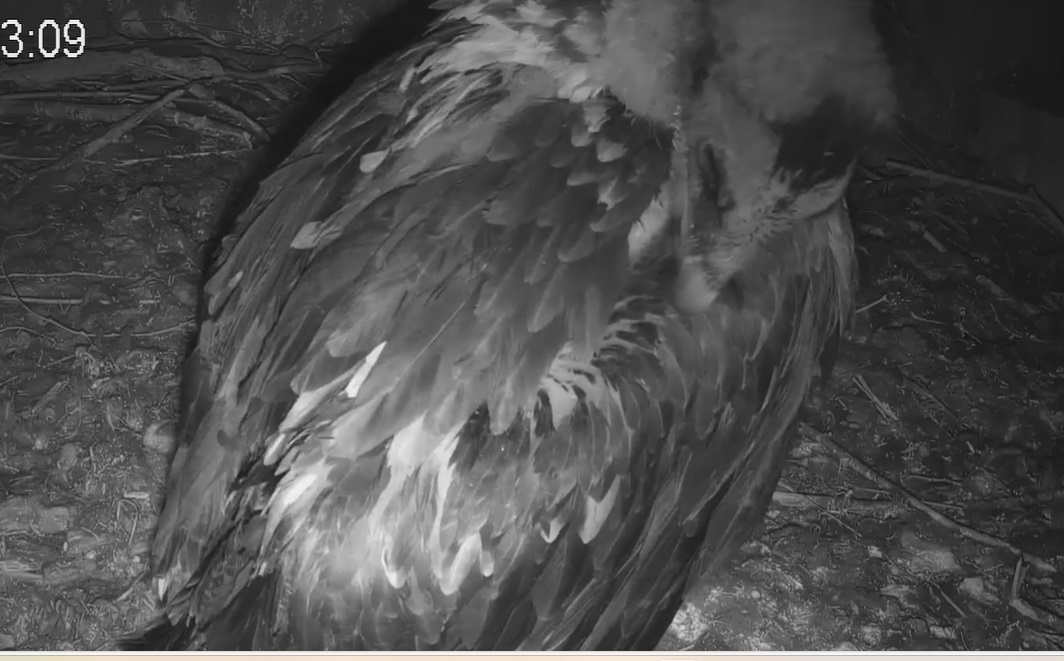 Ja der „Barti“ hat ca. 1 Std. den Horst aufgeräumt, dann gab es eine kurze Pause. Schon musste er wieder aufstehen und die Kamera begutachten. Er ist inzwischen doch sehr neugierig.