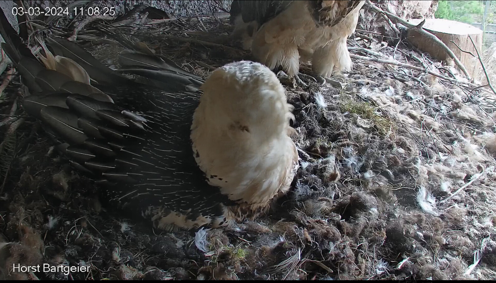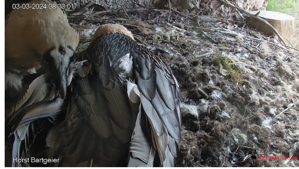 Hoffentlich stören Fix und Foxi den Jungvogel nicht.