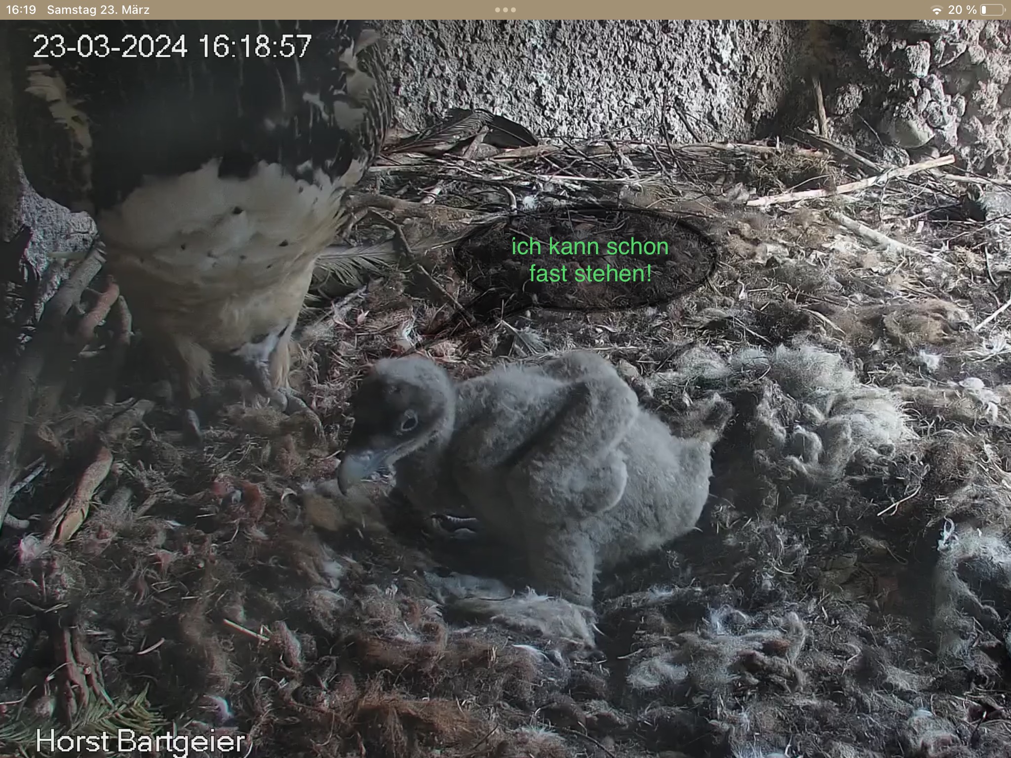 Anscheinend fangen die Federn langsam an zu jucken, denn das Kleine putzt sich ganz eifrig. Und die Mama darf sogar helfen. ![]()