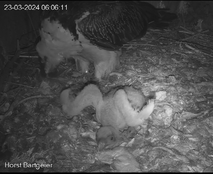 Bei der Fütterungszeit kümmert sich beide Eltern liebevoll um ihren Kleinen.