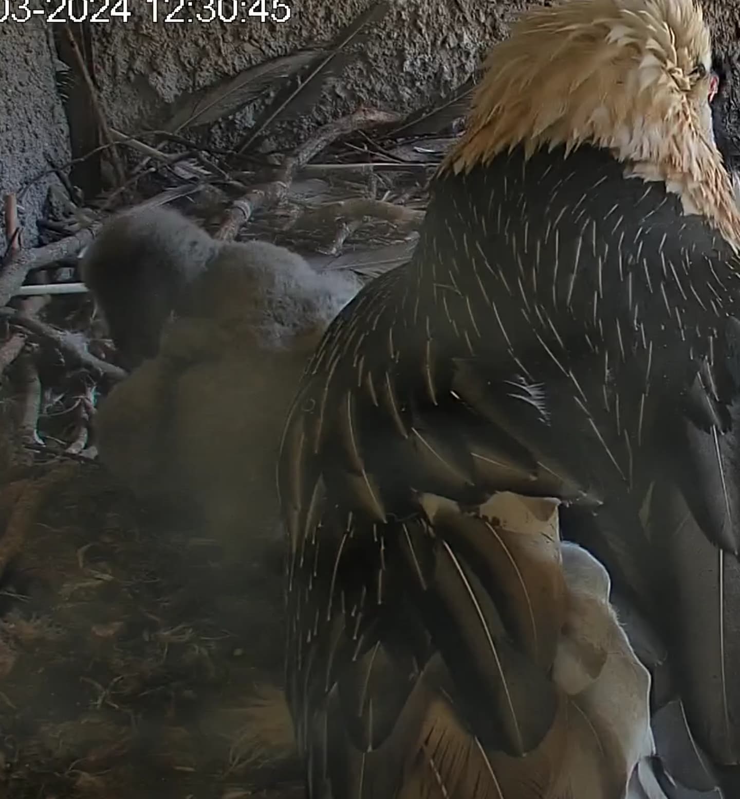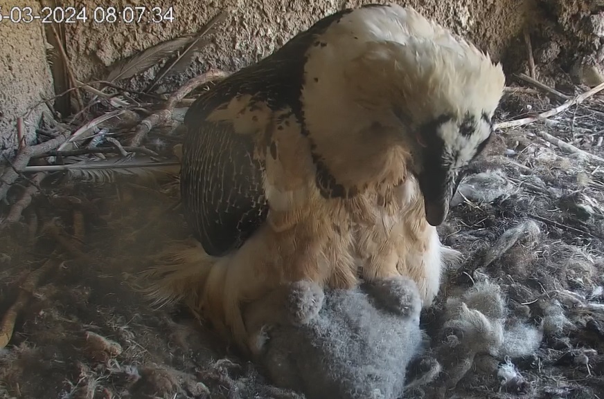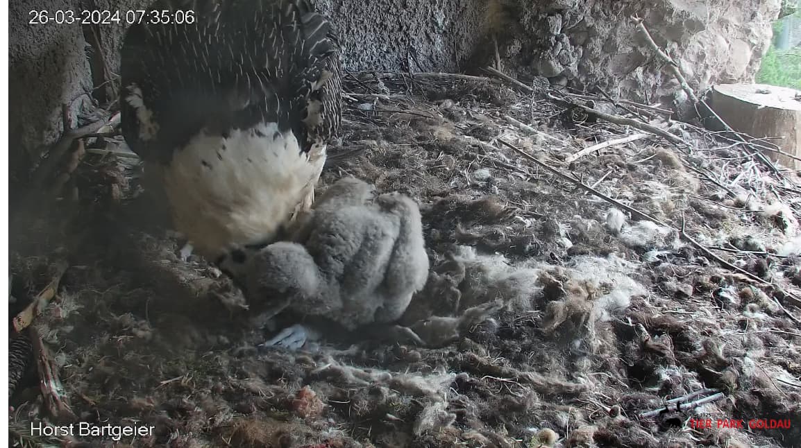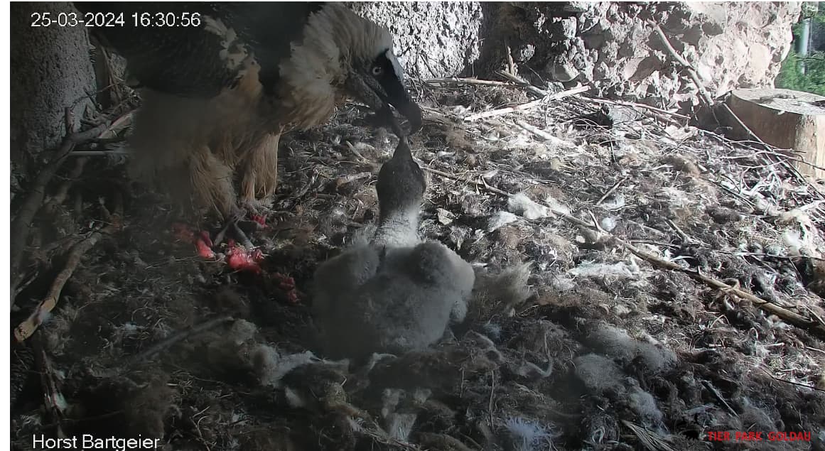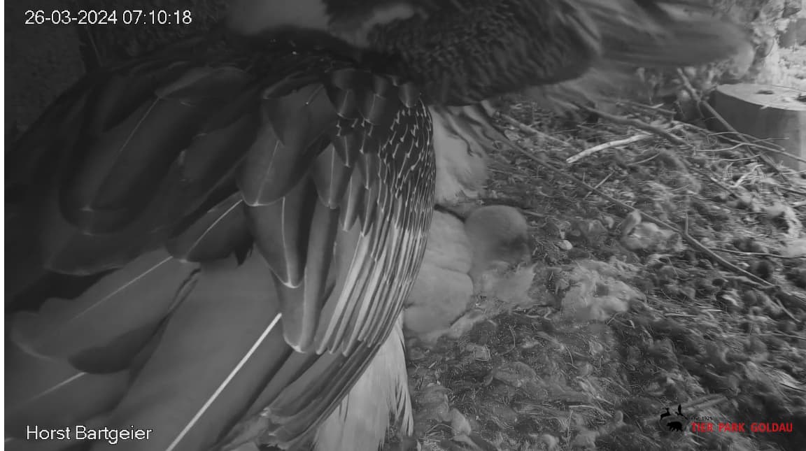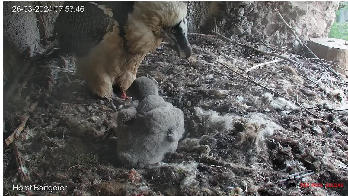 Wann sieht man bei Bartgeiern etwas von der Federbildung? Fast 4 Wochen und ich sehe nur Flaum.