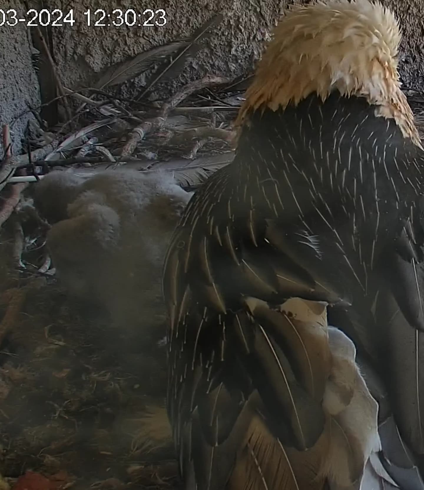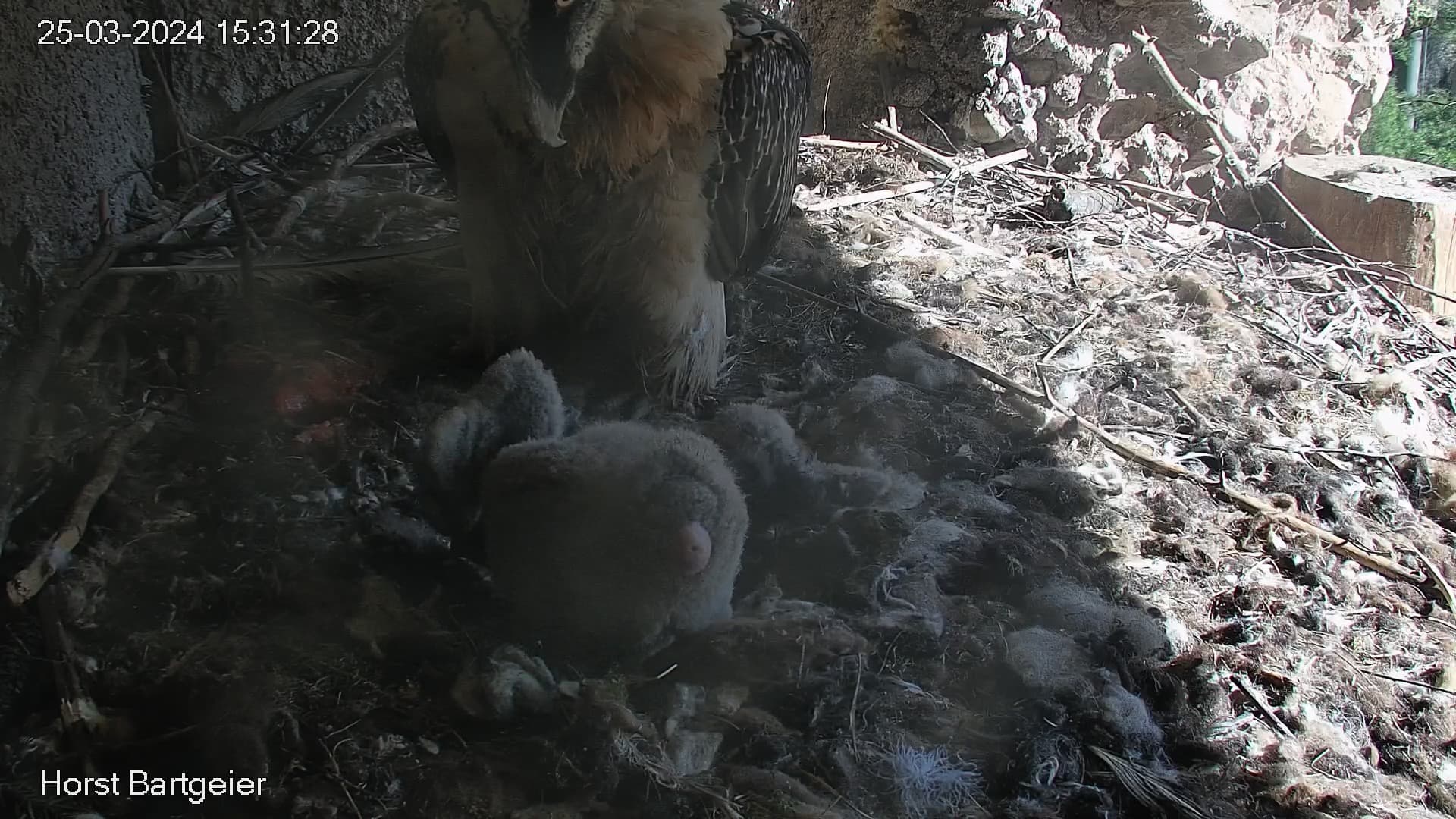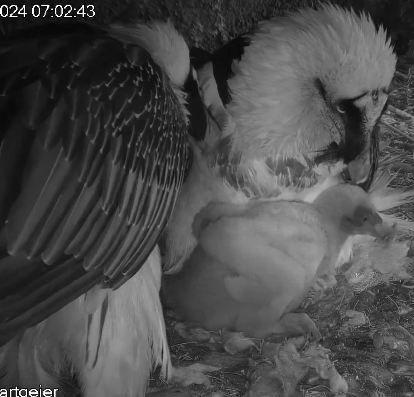 Wann sieht man bei Bartgeiern etwas von der Federbildung? Fast 4 Wochen und ich sehe nur Flaum.