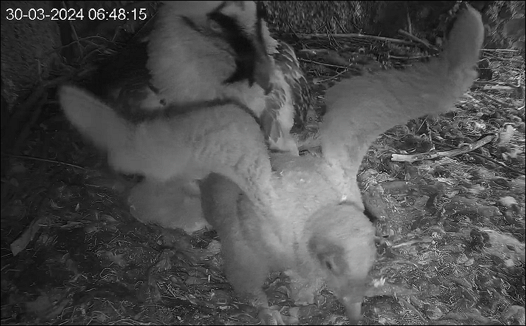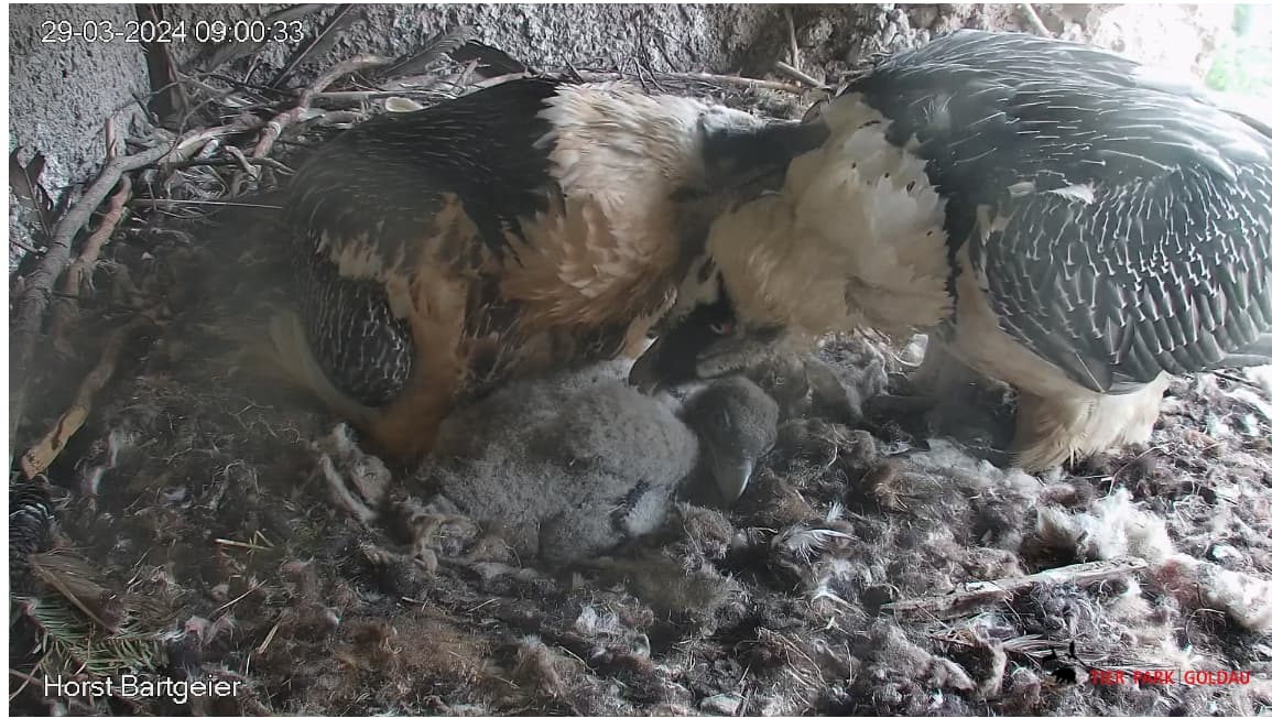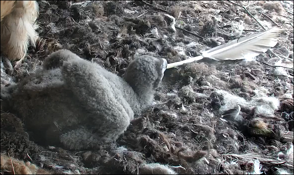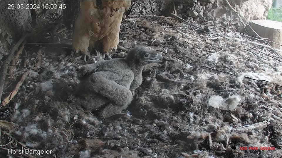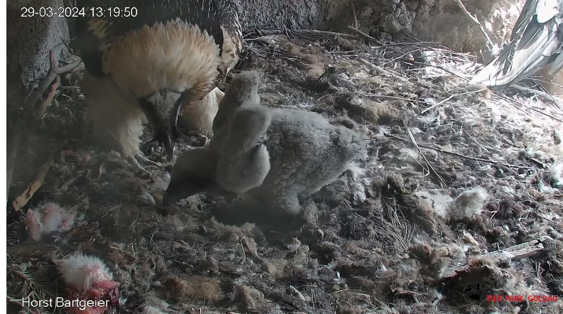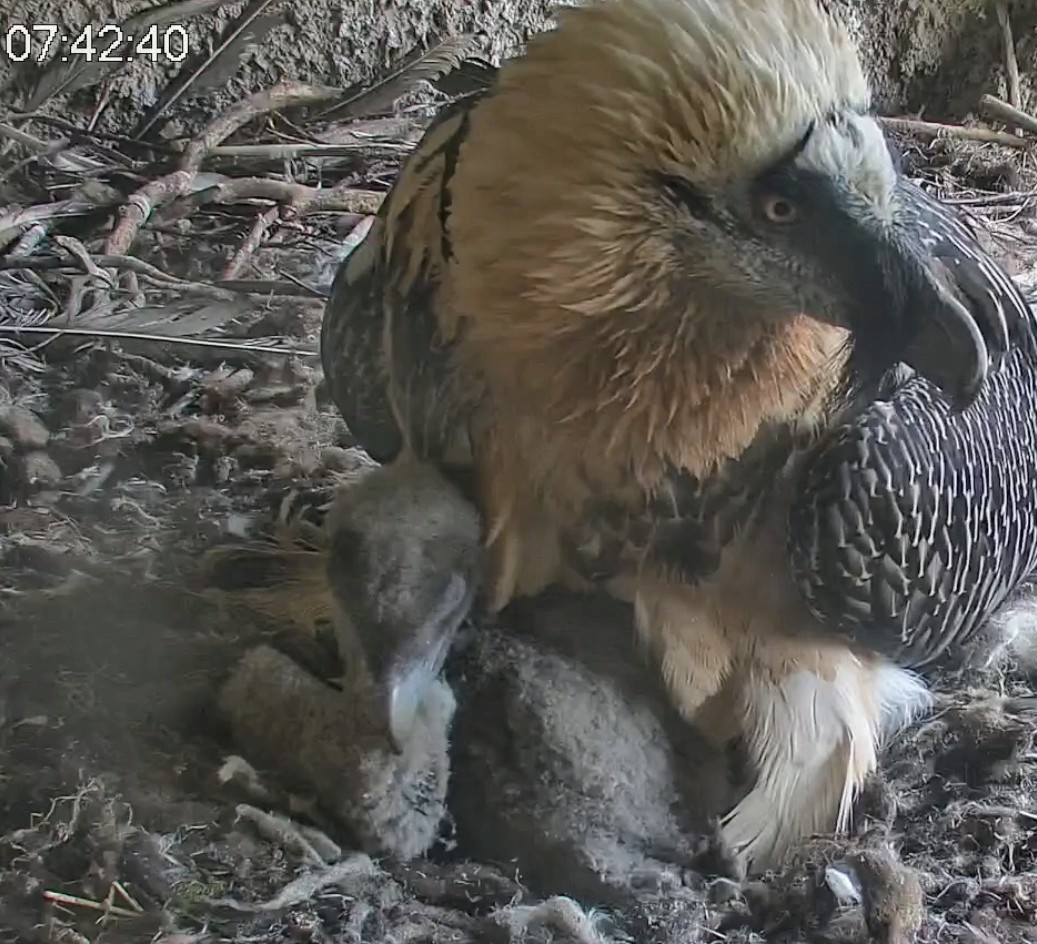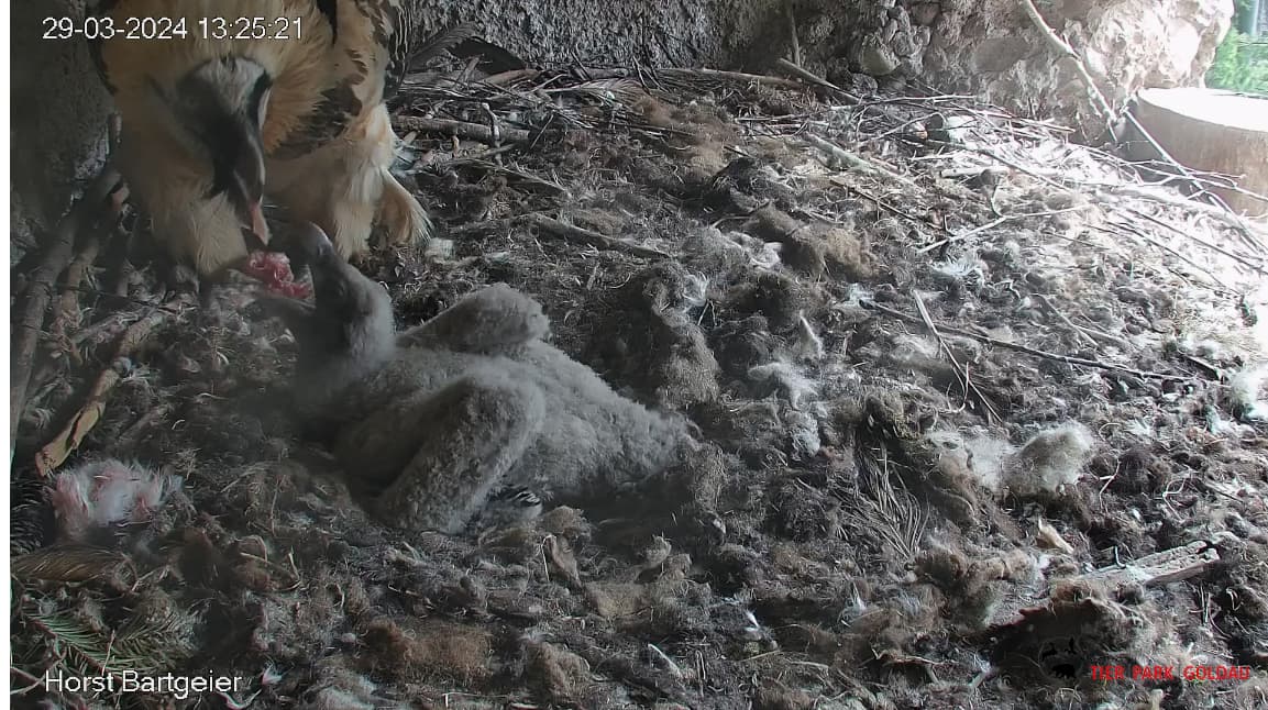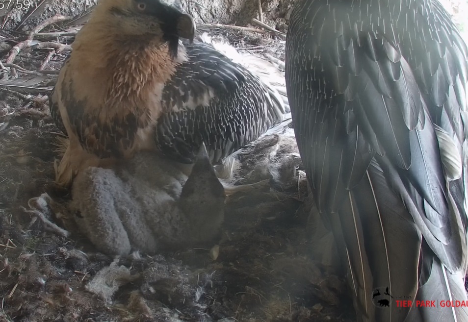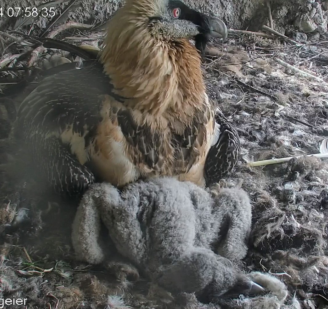 . Musste an den Adlernachwuchs denken - sie quietschen bei jedem Bissen und zwitschern, wenn sie satt sind