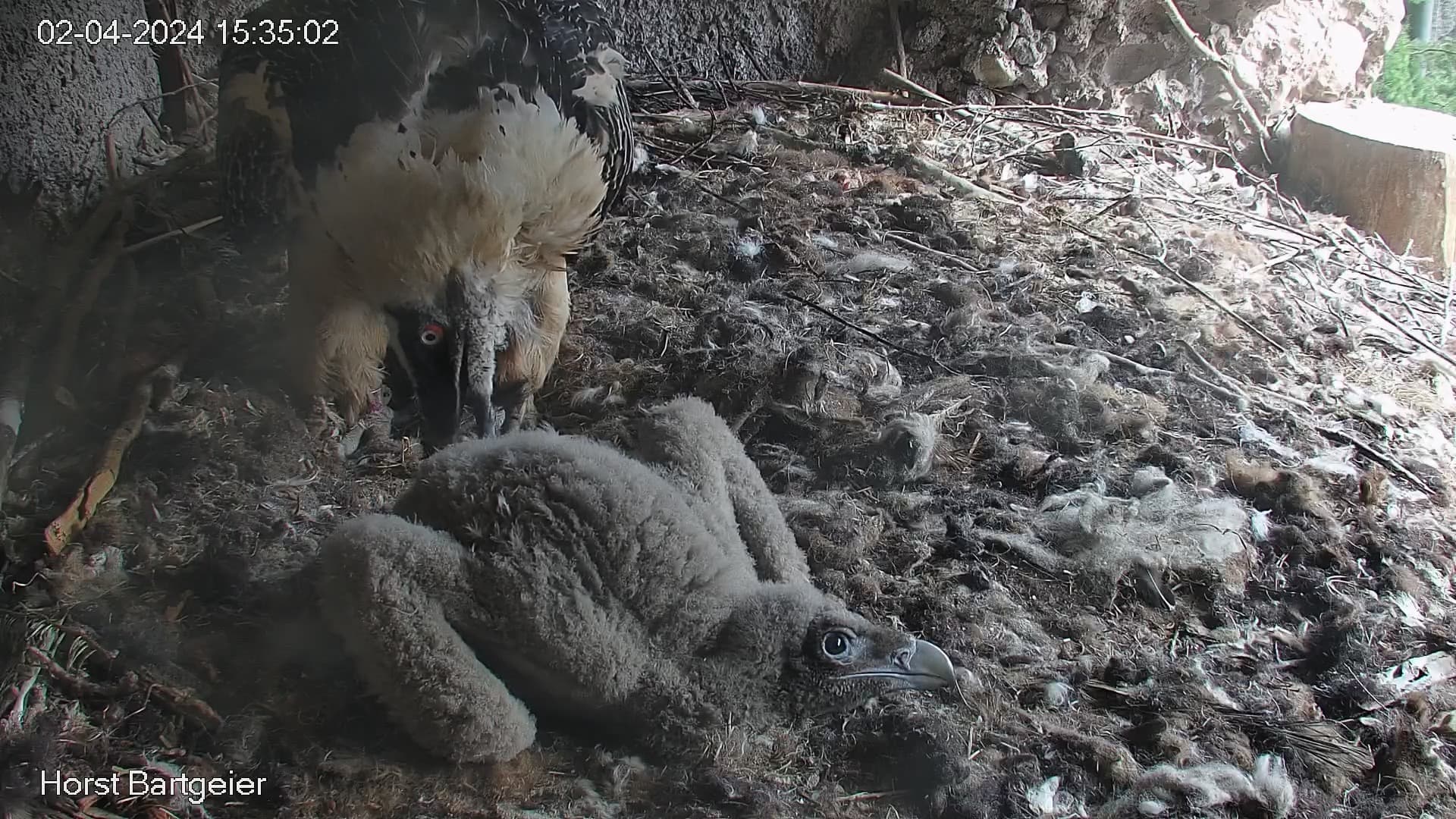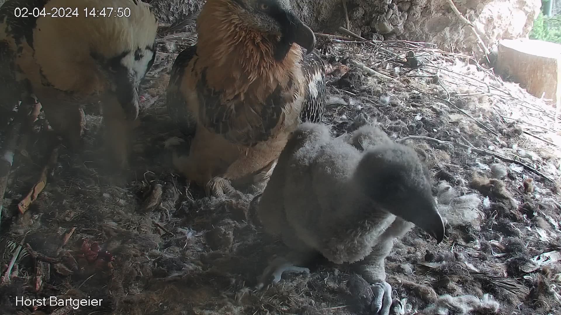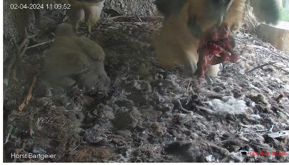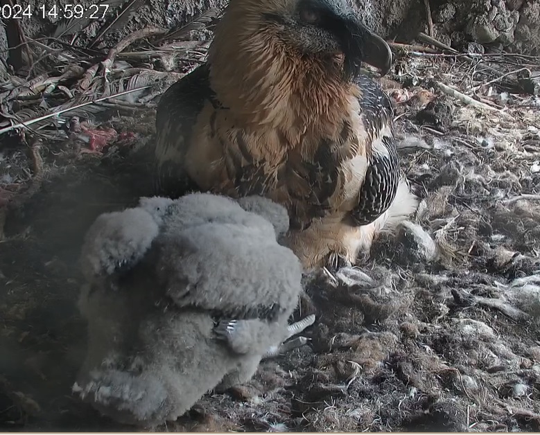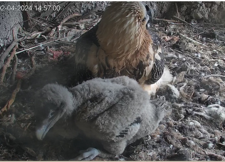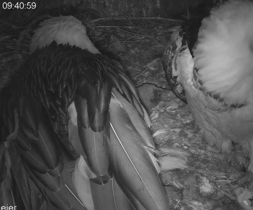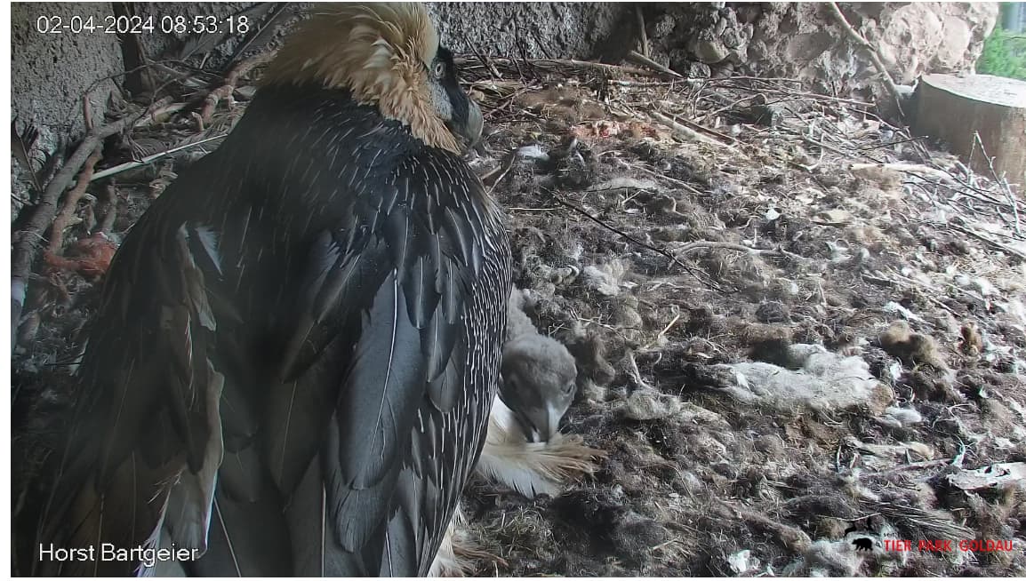 Die Bartgeiereltern halten weiterhin fest zusammen.