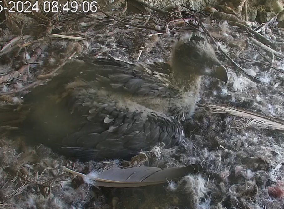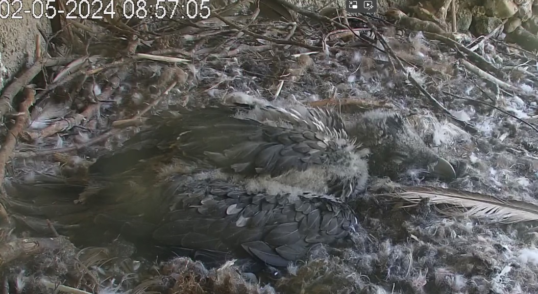Bartili ist aus seinem Morgenschlaf hochgeschreckt. Aber nach kurzer Orientierung sind die Augen wieder zugefallen. Sein Spielzeug, die große Feder, liegt in Reichweite neben ihm.