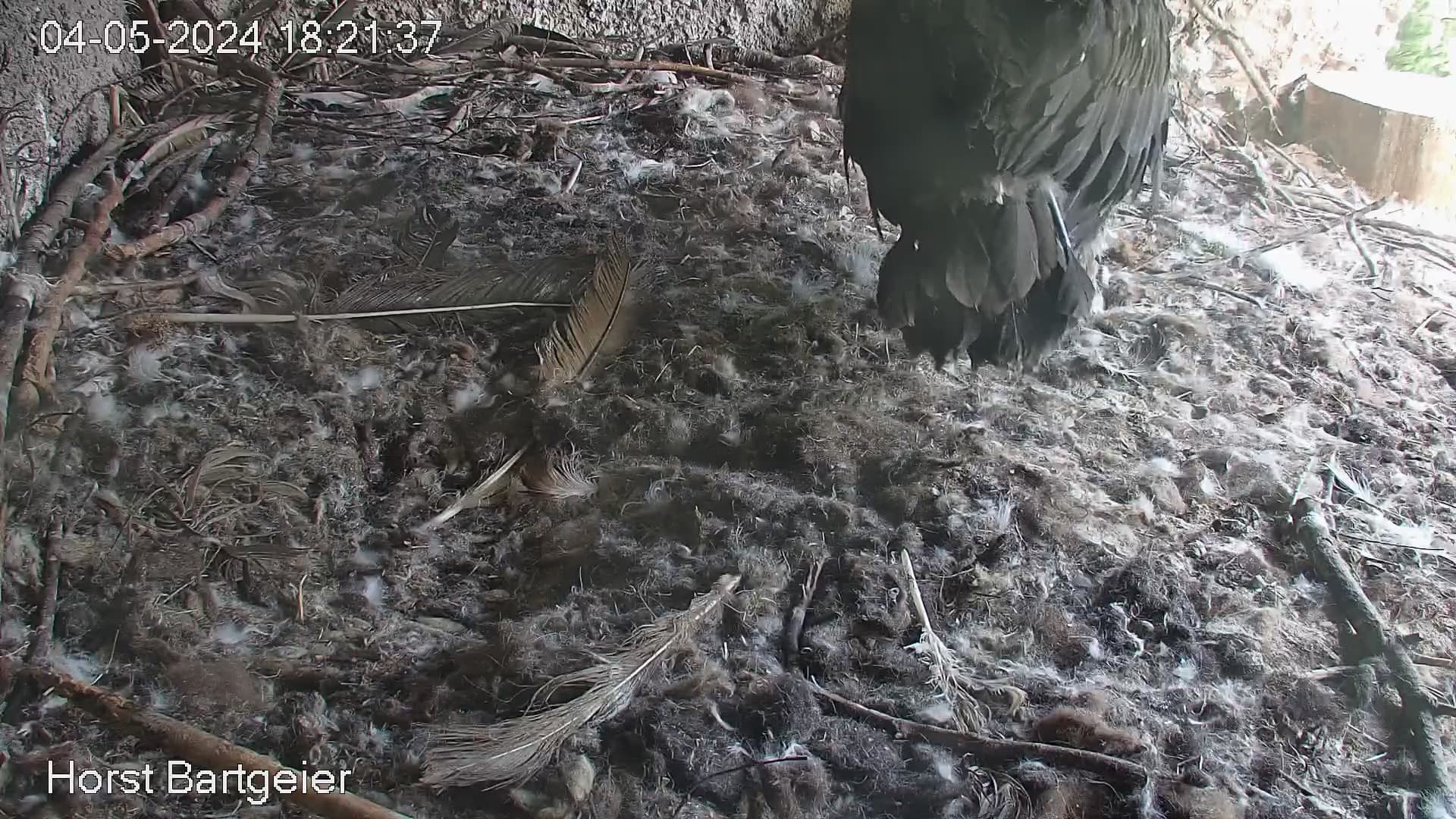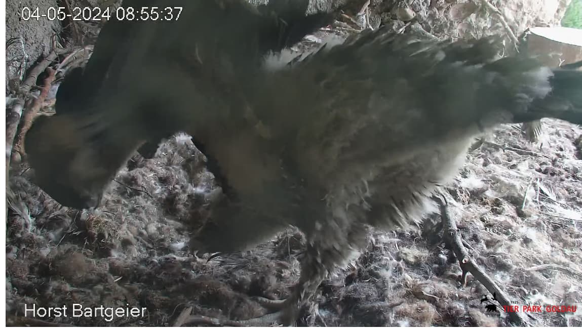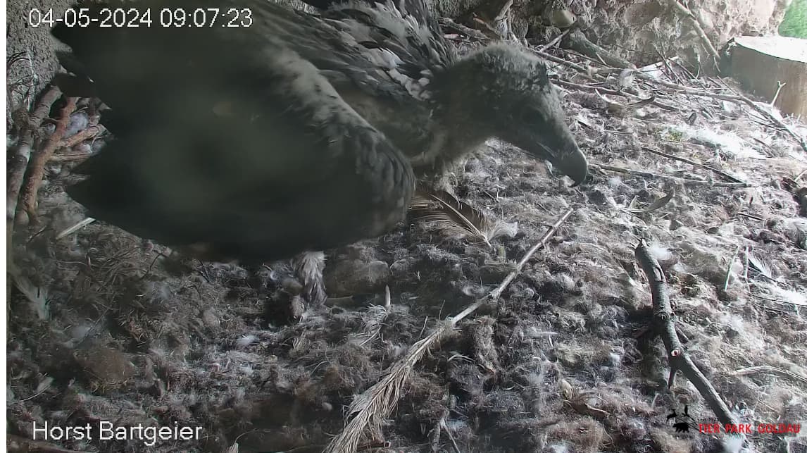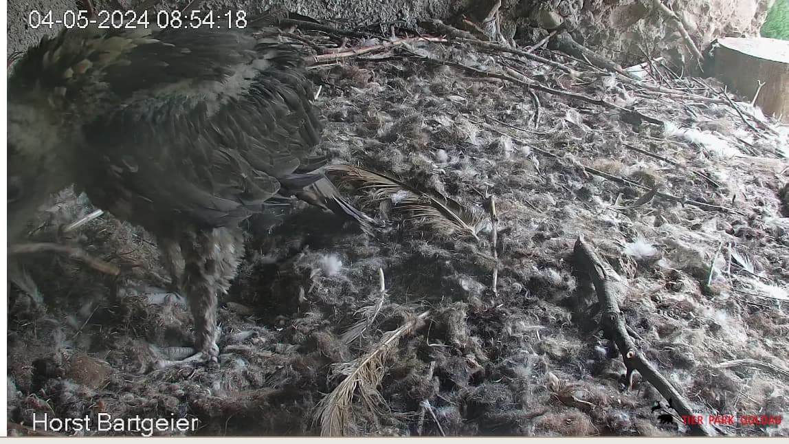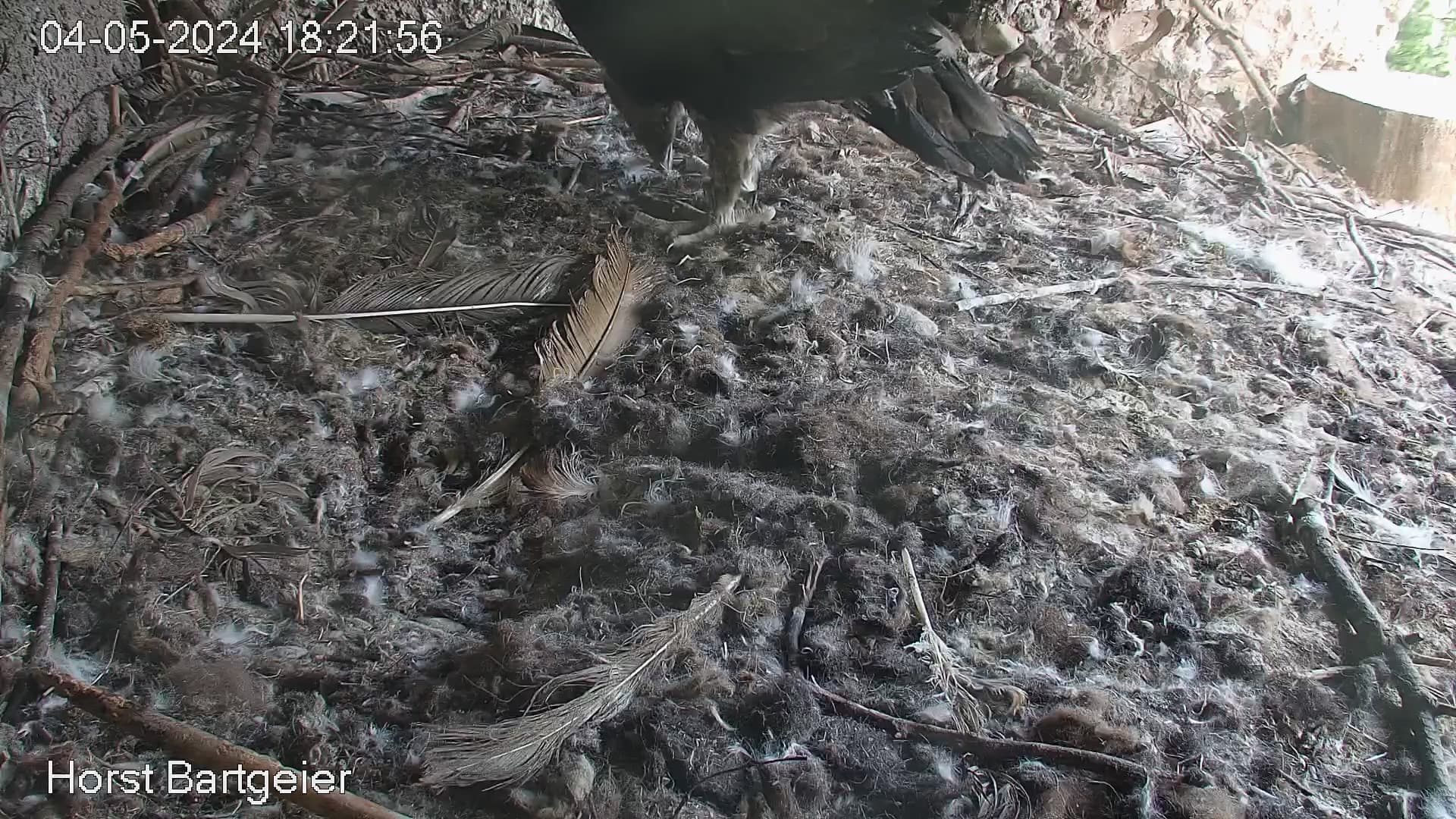 Dann gibt es aber Abendessen im Nest und Bartili macht anschließend einen Verdauungsspaziergang und räumt auf. Er steht schon ganz schön lange auf seinen Beinchen.